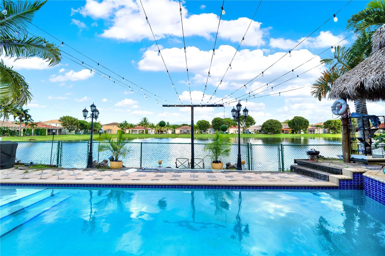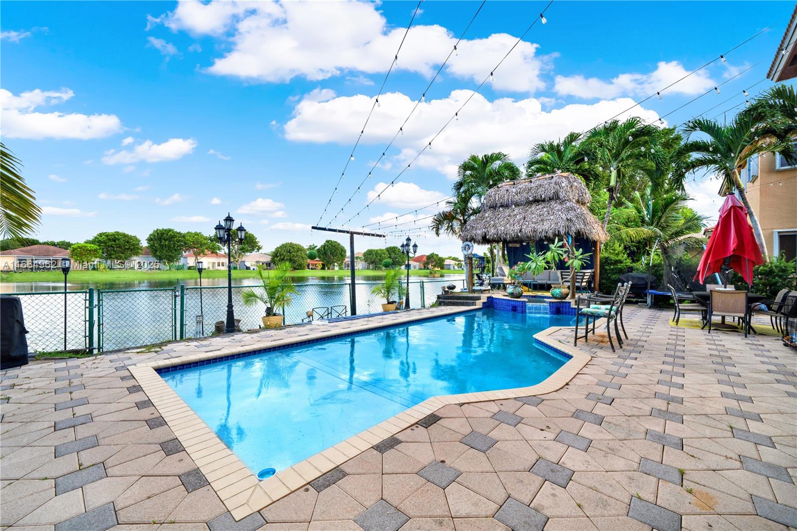 Back on the market, beautiful 5-bed, 3.5-bath pool home with stunning lake views in a quiet, gated community with 24-hour security. it features two master suites—one upstairs and one downstairs—which are perfect for flexible living. meticulously maintained by the original owner with recent updates, including a new roof, a/c, water heater, freshly painted, pool, spa, tiki hut, and circular driveway. east-facing exposure offers beautiful sunrises. it is conveniently located right off the turnpike for easy access to the rest of the city. excellent schools, with several charter school options nearby. the family-friendly neighborhood also offers proximity to a country club for golf enthusiasts., this move-in ready home is perfect for families and anyone looking for a secure lifestyle.1811 SE 16TH AVE, HOMESTEAD, FL 33035