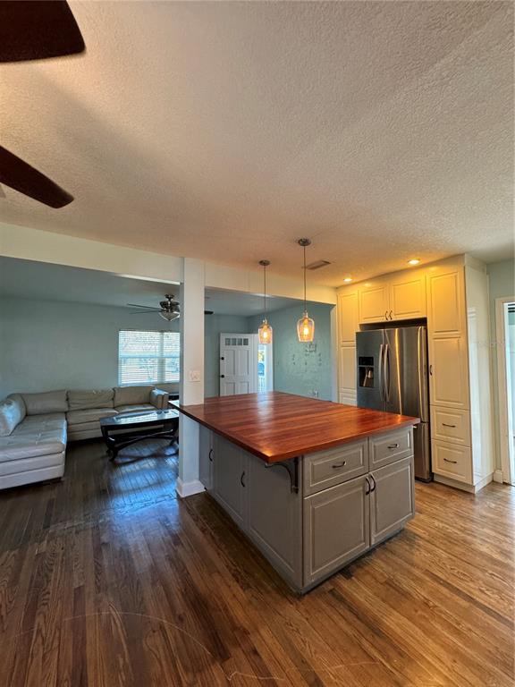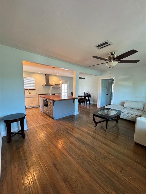 The heart is where the home is. that is the sentiment for this charming ranch home on a brick street in a quaint corner of dunedin. this block home has two large bedrooms and one bathroom. the house is open concept with a large kitchen/dining/living room. the kitchen has been remodeled with granite counters, soft close cabinets, and a massive butcher-block style island. the kitchen is bright with lots of recessed lighting, and pendants over the island. the bathroom has been remodeled with a beautiful walk-in shower and easy to clean surfaces. the breezeway just off the kitchen has pantry shelving and plenty of extra storage, there is also a large, sturdy shed in the back yard. the home has solid hardwood floors, and abundant natural light. this house is situated next to the pinellas bike trail, with one mile north to get to the beach/publix, and one mile south to get to the heart of downtown. golf, playgrounds, the city pool and rec center are a short walk away. the area boasts fantastic restaurants and has year-round entertainment. this house is in an ae flood zone, but it was not damaged in the recent storms.1820 PASADENA, DUNEDIN, FL 34698