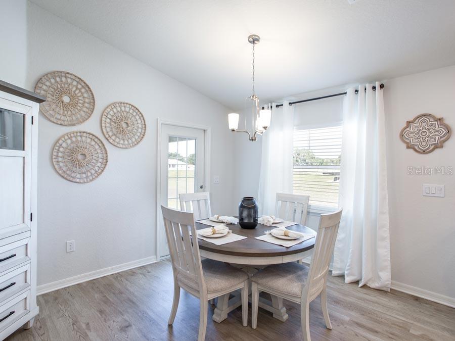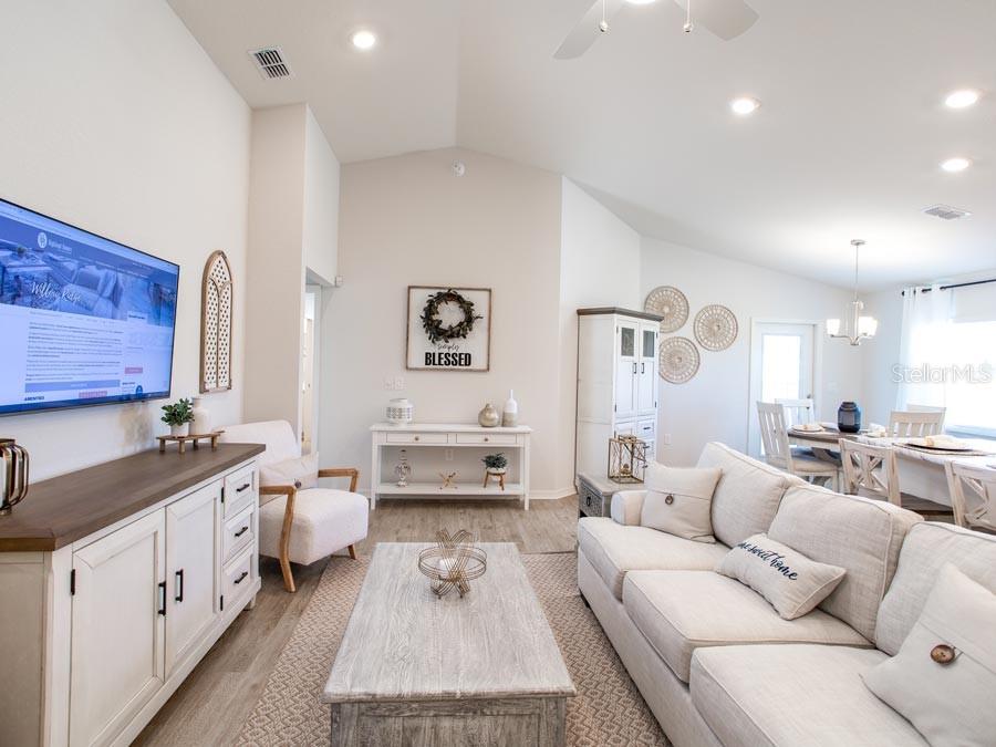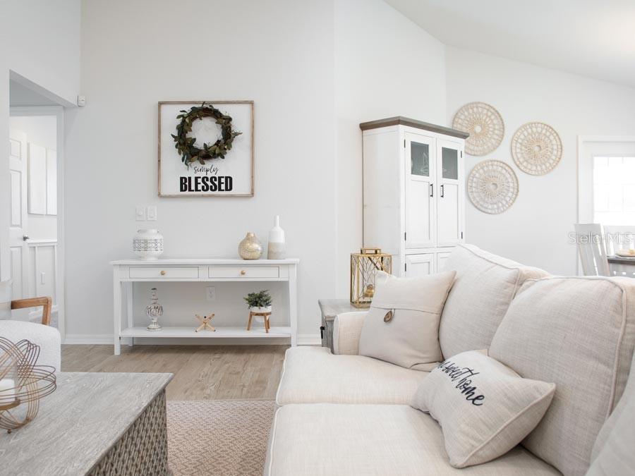 New construction home with 1597 square feet on one-story including 4 bedrooms, 2 baths, and an open living area. enjoy an open kitchen with quartz countertops, samsung stainless steel appliances, a walk-in pantry, and a spacious island, fully open to the dining café and gathering room. the living area, laundry room, and baths include luxury wood vinyl plank flooring, with stain-resistant carpet in the bedrooms. your owner's suite is complete with a walk-in wardrobe and a private en-suite bath with dual vanities, a tiled shower, and a closeted toilet. plus, enjoy a covered lanai, 2-car garage, custom-fit window blinds, architectural shingles, energy-efficient insulation and windows, and a full builder warranty ***please note - virtual tour/photos showcases the home layout; colors and design options in actual home for sale may differ. furnishings and décor do not convey!1830 DAYSTAR, HAINES CITY, FL 33844