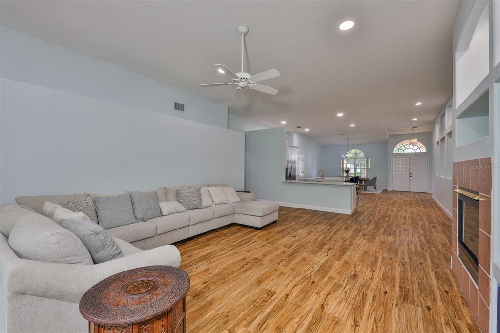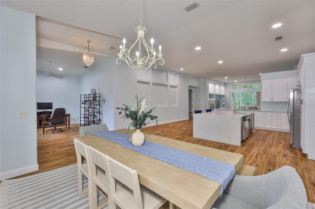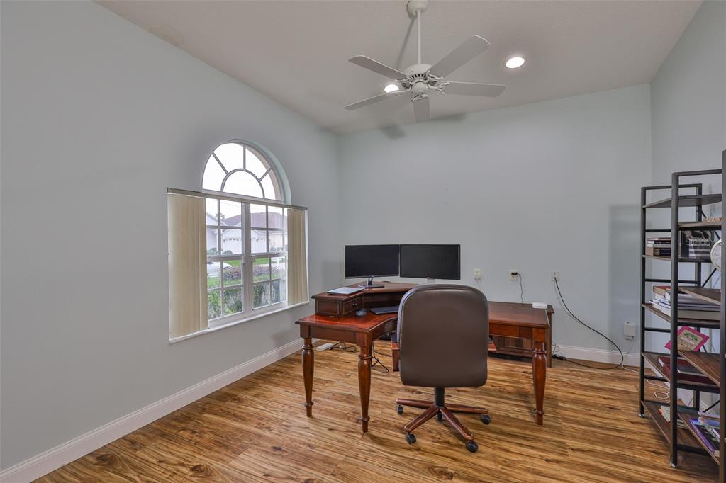 Beautifully updated 3-bedroom + office, 2-bath home with a 3-car garage in the gated community of covington estates, priced to sell. this open-concept, single-story layout features soaring ceilings, a formal dining room, and a fully renovated kitchen with a waterfall quartz island, stainless steel appliances, modern cabinetry, and breakfast bar, perfect for entertaining or everyday living. the spacious living room includes custom built-ins, a gas fireplace, and art niches for added charm. all bedrooms are oversized and include large walk-in closets. the private office/den offers the ideal work-from-home setup or flex space. the owner’s suite features dual walk-in closets, double vanities, a soaking tub, and a separate walk-in shower. enjoy outdoor living on the screened lanai overlooking a fully fenced, oversized backyard with lush landscaping, a peaceful garden-style retreat with plenty of space to add a pool or outdoor kitchen. located across from pride elementary and close to benito middle, new tampa library, flatwoods trails, the shops at wiregrass, tampa premium outlets, and i-75 for easy commuting.18444 EASTWYCK DR, TAMPA, FL 33647