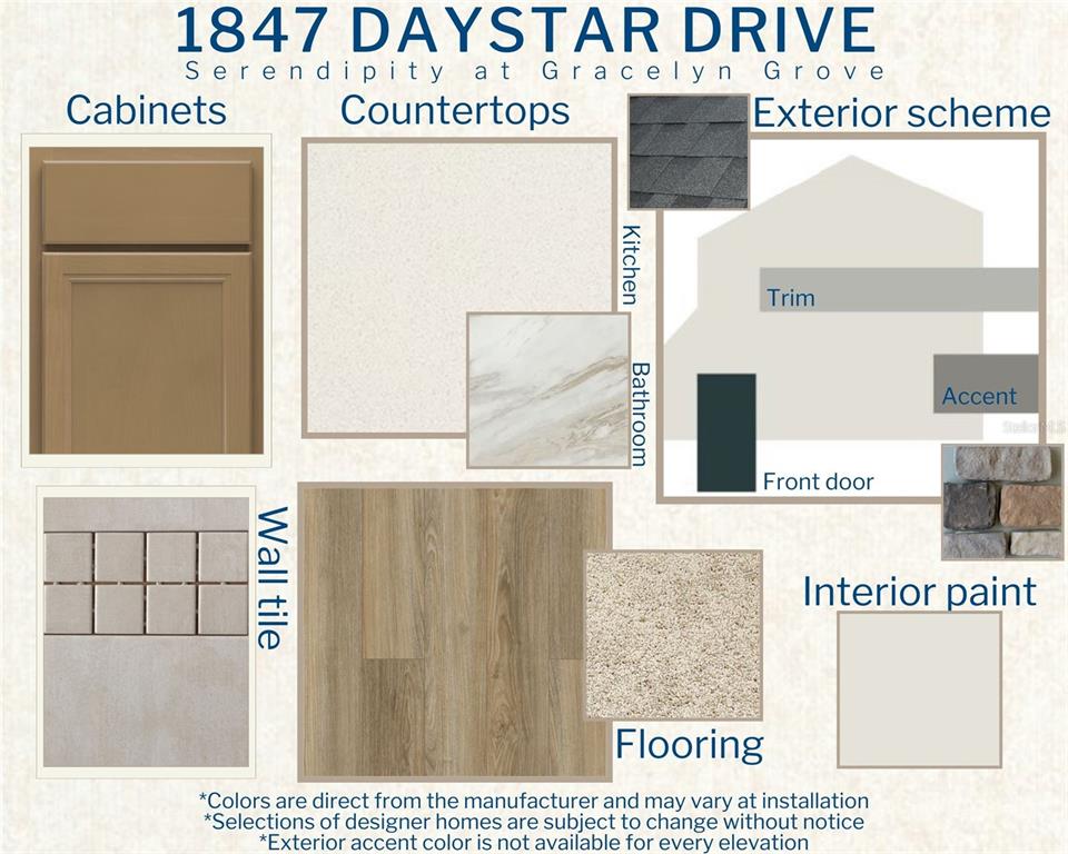 Under construction. new construction home with 2005 square feet on one-story including 4 bedrooms, 2 baths, and an open living area. enjoy an open kitchen with quartz countertops, samsung stainless steel appliances, a walk-in pantry, and a spacious island, fully open to the dining café and gathering room. the living area, laundry room, and baths include luxury wood vinyl plank flooring, with stain-resistant carpet in the bedrooms. your owner's suite is complete with a walk-in wardrobe and a private en-suite bath with dual vanities, a tiled shower, and a closeted toilet. plus, enjoy a covered lanai, 2-car garage, custom-fit window blinds, architectural shingles, energy-efficient insulation and windows, and a full builder warranty. ***please note - virtual tour/photos showcases the home layout; colors and design options in actual home for sale may differ. furnishings and décor do not convey!1847 DAYSTAR, HAINES CITY, FL 33844
