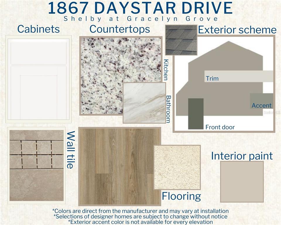 New construction home with 2029 square feet one-story including 4 bedrooms, 2.5 baths, and an open living area. enjoy an open kitchen with granite countertops, samsung stainless steel appliances, pantry, and a spacious counter height island, fully open to the dining café and gathering room. the living area, laundry room, and baths include luxury wood vinyl plank flooring, with stain-resistant carpet in the bedrooms. your owner's suite is complete with a walk-in wardrobe and a private en-suite bath with dual vanities, a tiled shower, and a closeted toilet. jack-and-jill hall bath with an enclosed tub and toilet, accessed from bedrooms 3 and 4. plus, enjoy a covered lanai, 2-car garage, custom-fit window blinds, architectural shingles, energy-efficient insulation and windows, and a full builder warranty. please note, virtual tour/photos showcases the home layout; colors and design options in actual home for sale may differ. furnishings and décor do not convey.1867 DAYSTAR, HAINES CITY, FL 33844