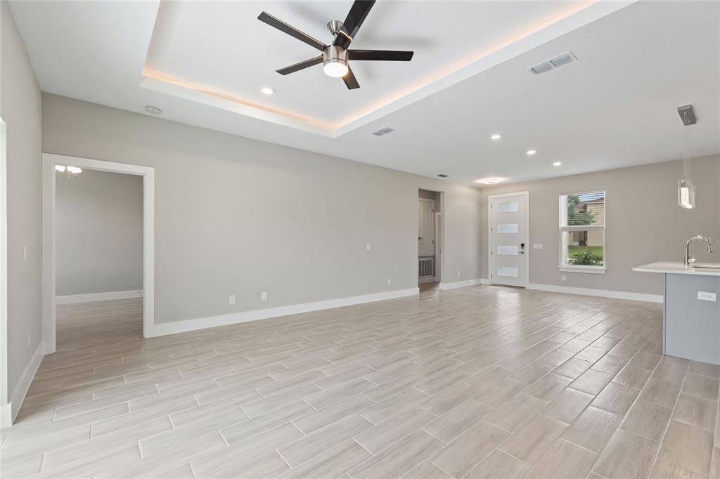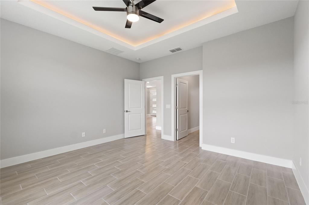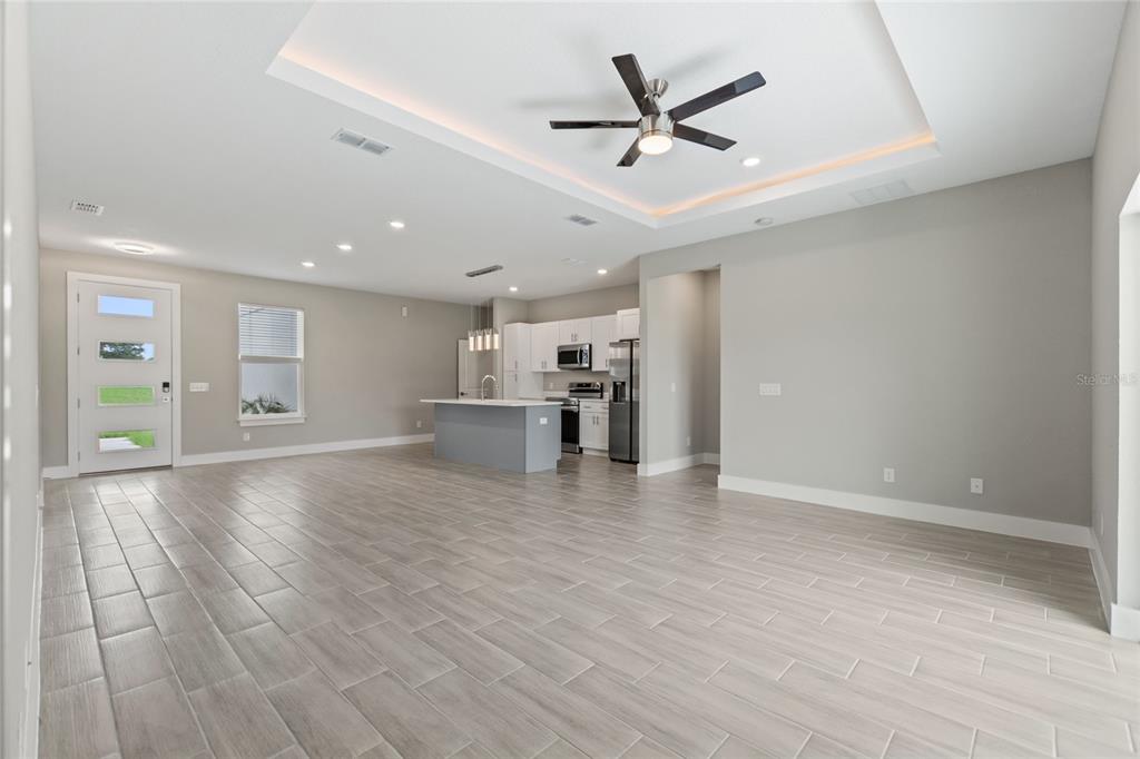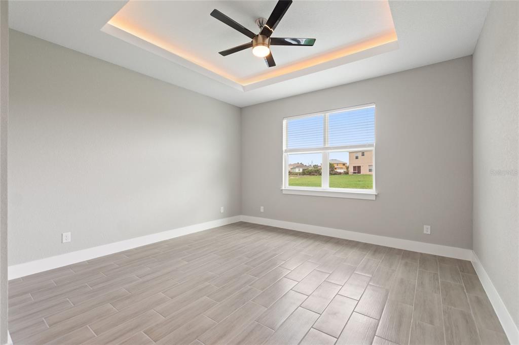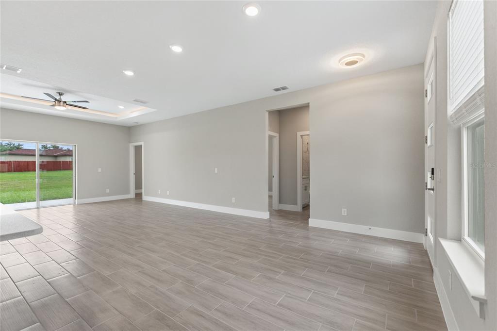 Split Bedroom Walk-In Closet(s)Ceiling Fan(s) High Ceilings Stone Counters Thermostat Open Floorplan Window Treatments Solid Wood Cabinets Kitchen/Family Room Combo Tray Ceiling(s)Exterior Features: