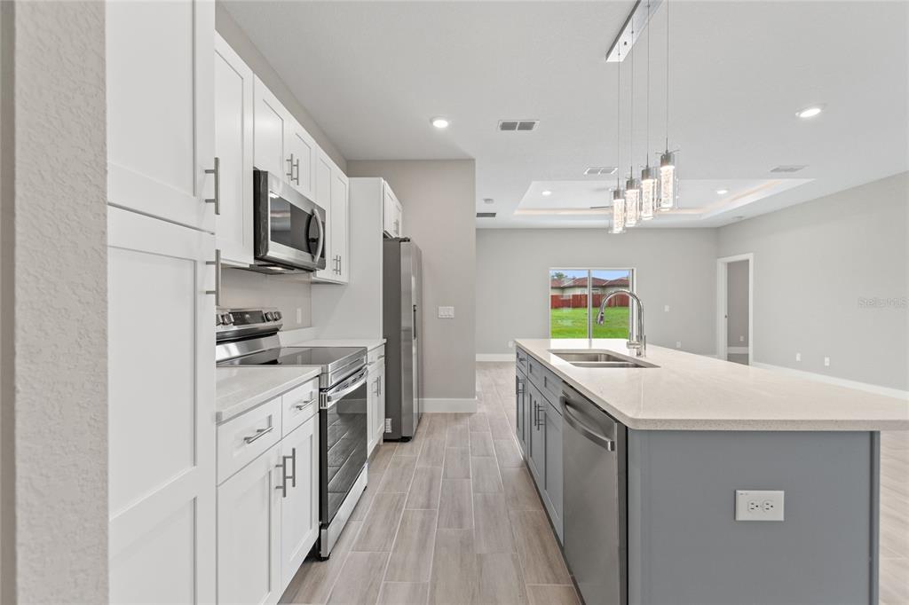 Under construction. **builder offers 4.25% interest rates** welcome to the epitome of modern living in our stunning 1670 model! this exceptional home is move-in ready, inviting you to experience unparalleled sophistication from the moment you step through the impressive 8 ft front door. revel in the seamless flow of this open-concept, split bedroom floor plan. indulge your culinary senses in the kitchen, where quartz countertops grace solid wood cabinets with soft-close doors and drawers. the expansive, two-toned gray island steals the spotlight, complemented by designer led pendant lights that add an extra layer of sophistication. a full stainless steel appliance package and ample counter space make this kitchen a haven for culinary enthusiasts. get ready to be captivated by the master suite, featuring a spacious bedroom with an inviting led-illuminated tray ceiling, a walk-in shower, and a double vanity with quartz countertops. every detail in this home exudes luxury, with all the extras already included. no need to worry about upgrades – they're all here, sparing you the hassle and cost. showings are available by appointment only, ensuring a personalized experience. contact our call center today to schedule your private tour. please note that the photos provided are for illustrative purposes, offering a glimpse into the exemplary finishes and floor plan of this remarkable home. your dream home awaits – make it yours! (photos may not be exact - only an example of finishes and floor plan)1877 SNAPPER, KISSIMMEE, FL 34759