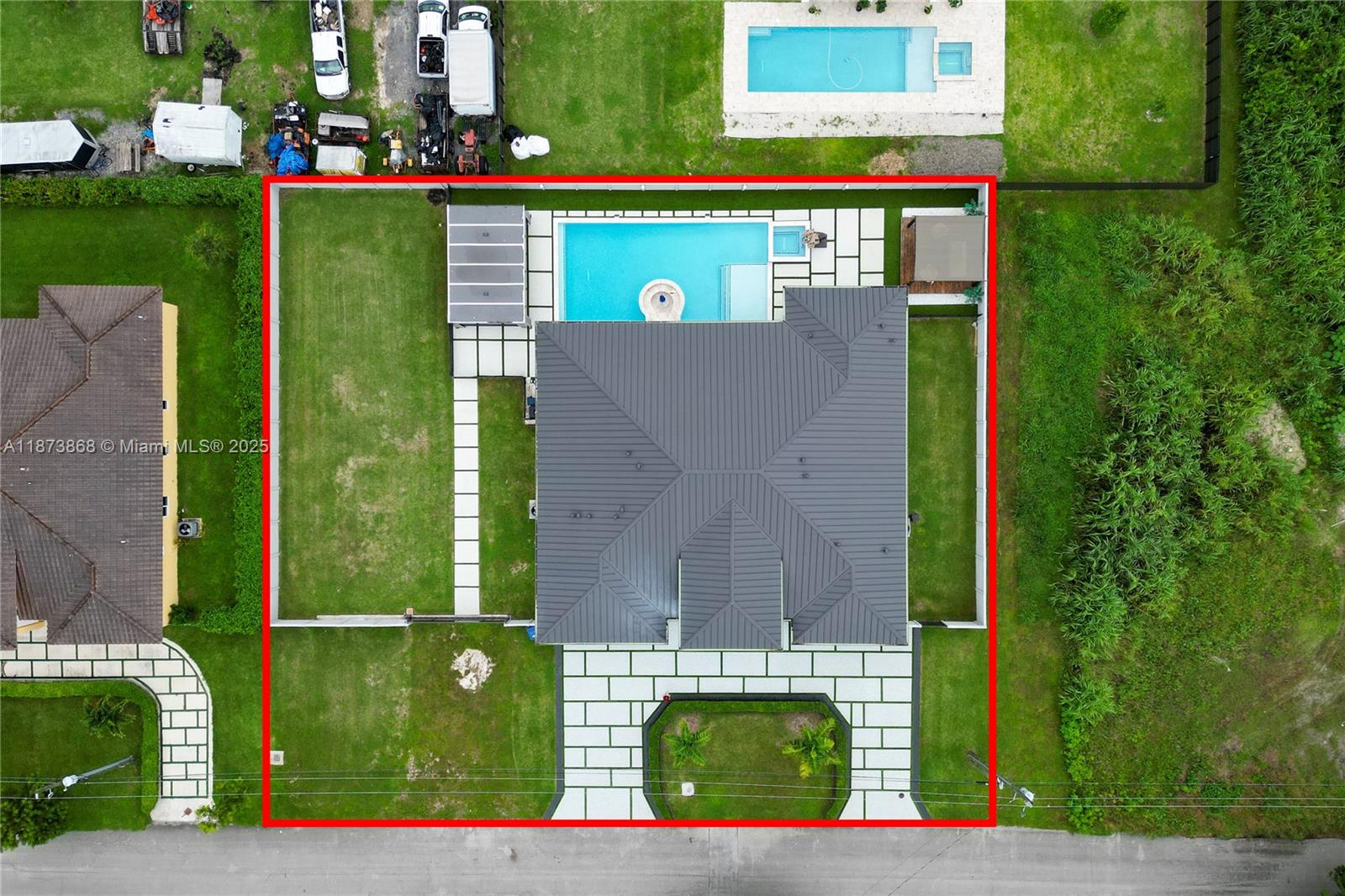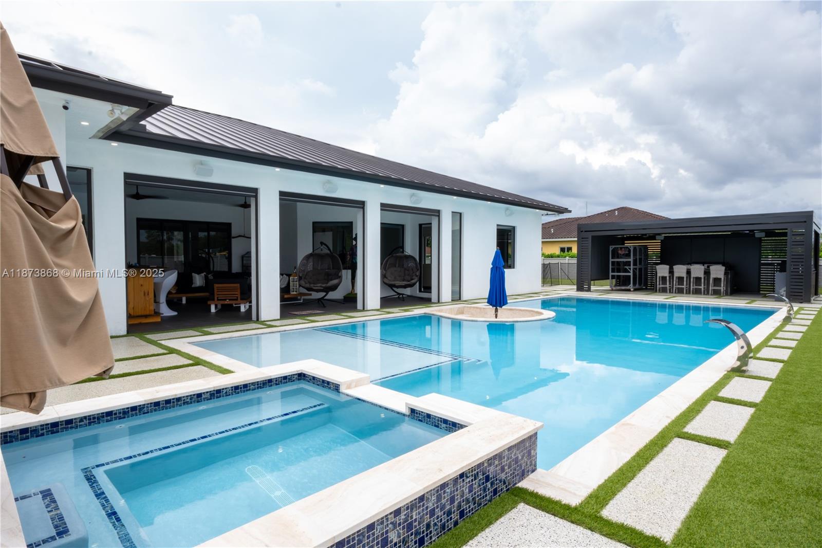 Experience luxury living in this stunning 5-bedrooms, 3-full bath & 1 half bath. newly built in 2023 with 3250 sq ft under 2 ac units. metal roof, 10 foot ceilings with a gorgeous front door entrance. this upgraded property features custom walk-in closets, impact windows/doors, alarm/security system, perfect lighting indoor/outdoor, and 2-car garage. step outside to your private oasis, complete with a heated pool, outdoor kitchen and bar ideal for year-round enjoyment. plus, a convenient poolside full bathroom makes this backyard the ultimate retreat. this lot has additional space for boat, rv, and more with a 17,633 sq ft lot! this home will undoubtedly check off every box! no hoa, no cdd. move-in ready! call us today and schedule your private showing!18785 SW 355TH TER, HOMESTEAD, FL 33034