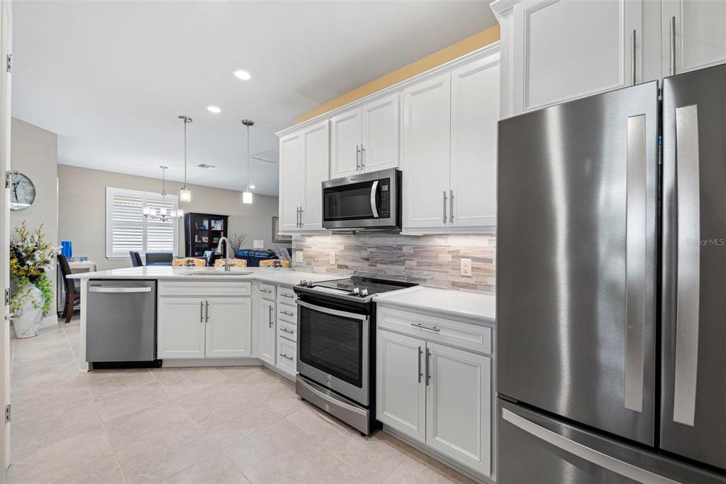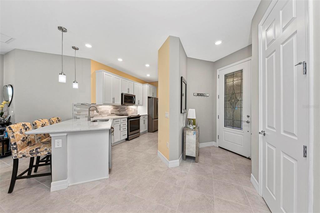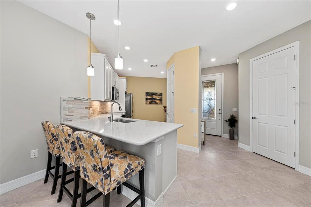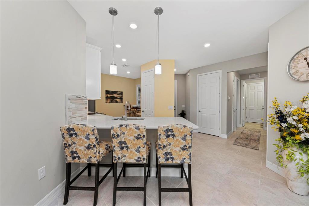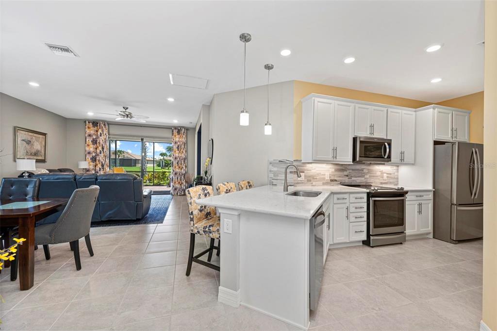 Price reduction - motivated sellers! stunning cascadia attached villa on the water! this lightly lived-in villa is spacious and open, featuring 2 bedrooms + den (currently used as a 3rd bedroom with french doors), 2 bathrooms, and a 2-car attached garage. enjoy serene water views from the extended lanai with oversized brick pavers, creating a beautiful outdoor space perfect for relaxation or entertaining. the gourmet kitchen includes stainless steel appliances, custom marble backsplash, quartz countertops, and convenient pull-out cabinet drawers. there’s both a cozy eat-in kitchen area and a breakfast bar on the island. the split floor plan offers privacy, with the guest bedroom and bathroom at the front of the home and the master suite at the back. the spacious master suite features a luxurious bath with a walk-in shower, frameless glass enclosure, dual rectangular sinks, and upgraded countertops. the bright den is ideal as an office or additional guest space. additional upgrades include: glass front door, upgraded landscaping, plantation shutters, tile throughout main living area, upgraded lighting, recessed lighting, 8' doorways, 5" baseboards and sold french doors to the den. islandwalk is one of venice's most social communities with a full time activities director, countless events and clubs and activities, two community clubhouses, an event center, two resort style pools, a lap pool, 12 pickle ball courts, 8 har tru tennis courts, dog park, playground, basketball court, community garden- the list goes on! the entire community is surrounded by miles and miles of golf cart trails, walking and biking trails, venetian bridges and water! the atlanta braves stadium is a short bike ride away- enjoy year-round events and activities. the new marketplace is now complete with publix, restaurants, shopping, gas station, etc! downtown wellen park features an 80-acre lake, retail shops, restaurant waterfront dining and rooftop decks, pedestrian-friendly streets, a splash pad, a playground and a public town hall gathering place that hosts live theater and music events. coming soon to downtown wellen park- a hammock grove and a permanent food truck area islandwalk hoa includes grounds maintenance, cable, wifi, amenities, and 24 hour guard.Villa 2 bedrooms - ISLANDWALK/THE WEST VLGS PH 5 for Sale