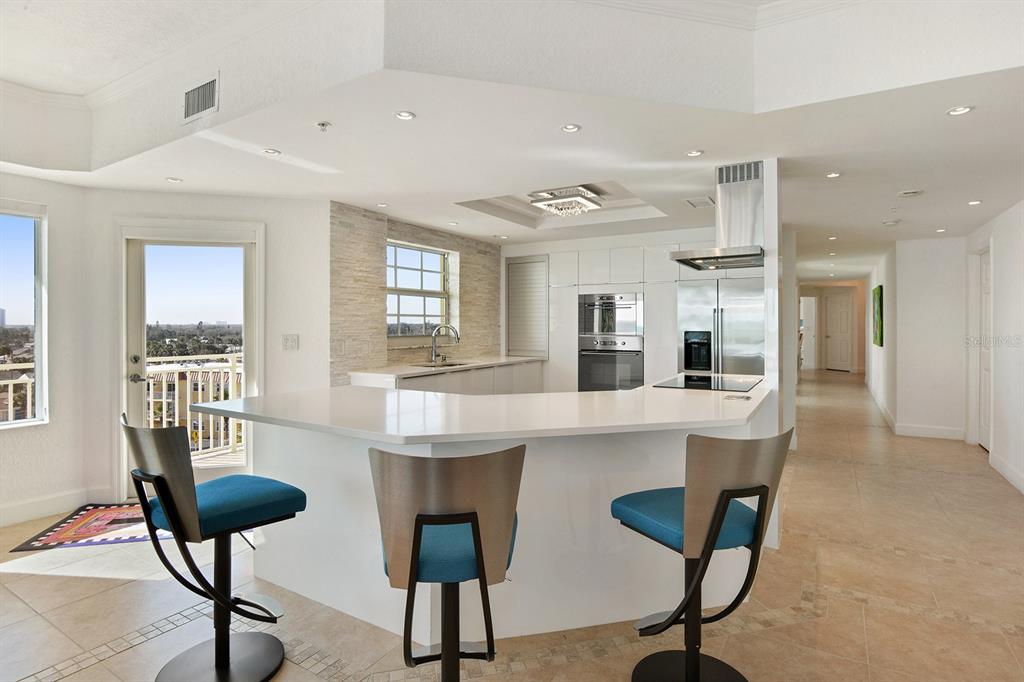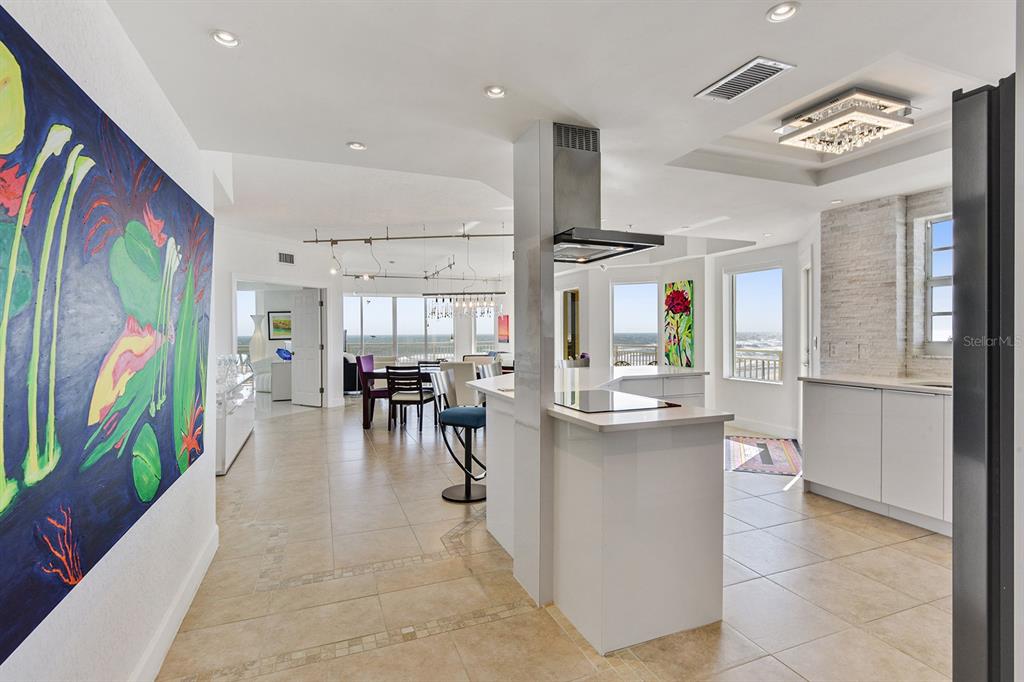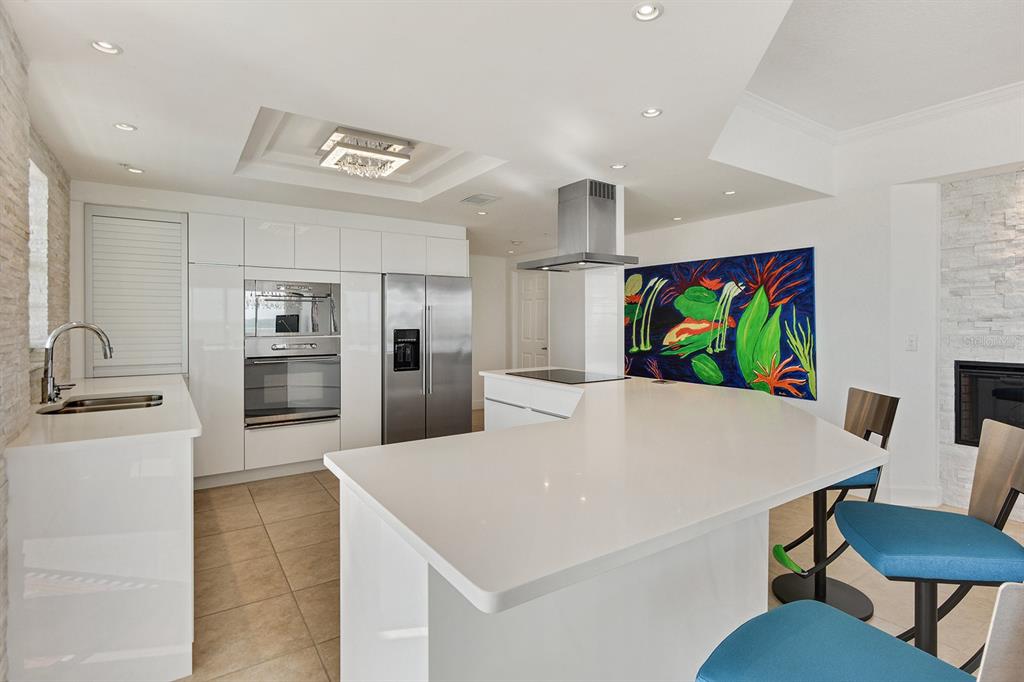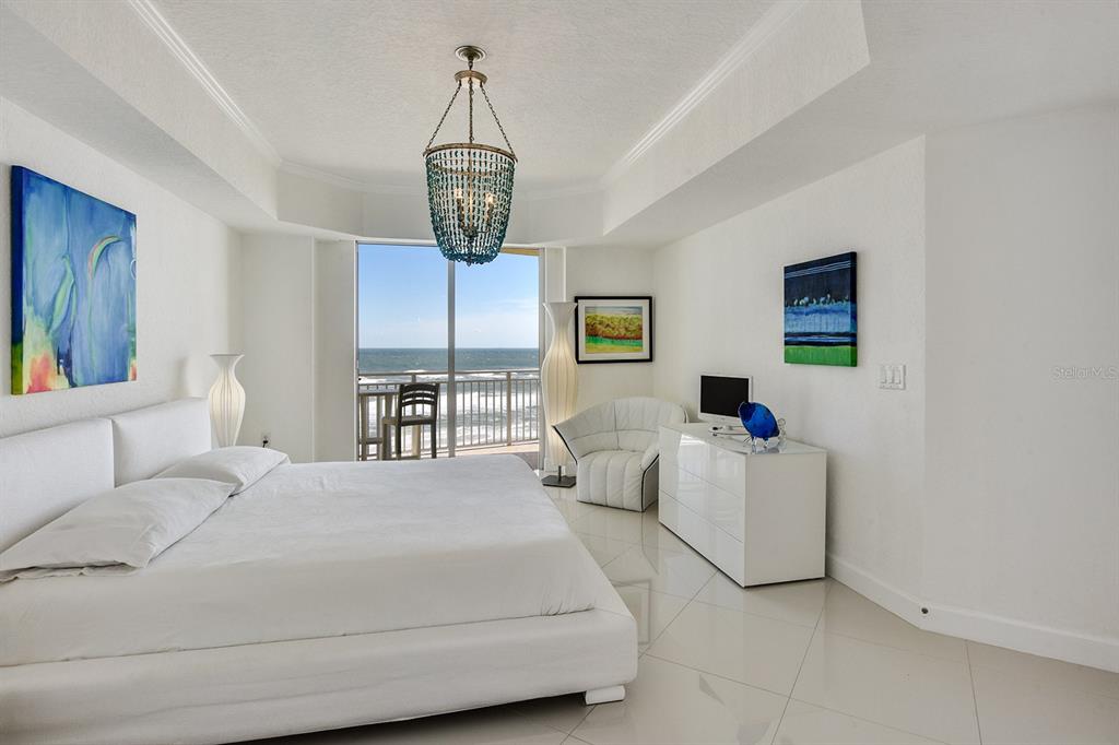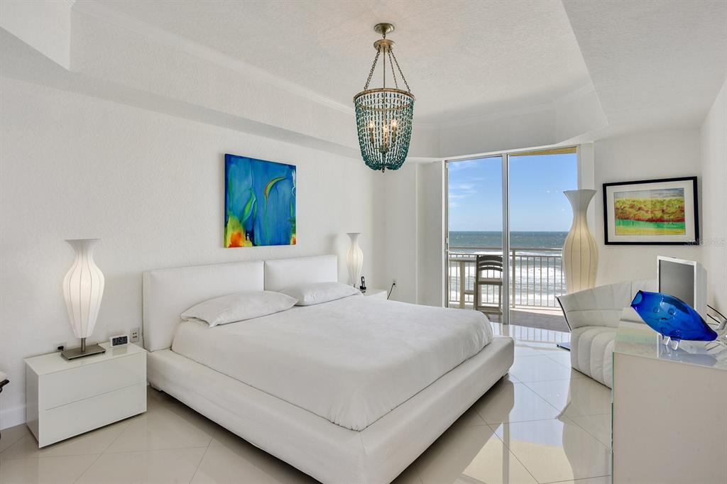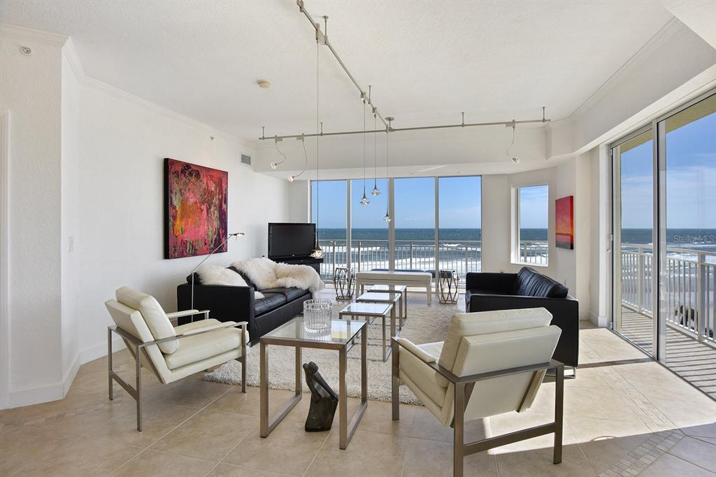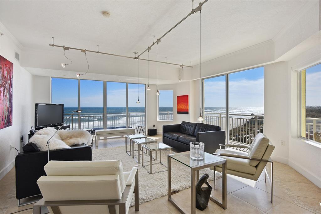 A daytona beach treasure #504 offers an extraordinary quintessential florida living experience, blending modern vibrance with coastal charm. this contemporary home integrates tropical island views with carefully curated craftsmanship. from the moment you arrive, this condominium home's airy open-plan layout draws you in. walls of glass allow natural light to stream in, highlighting sleek finishes and rich textures throughout. a combination of polished and matte porcelain flooring, a built-in fireplace and semi-flush modern, linear lighting create a breezy atmosphere, making it feel like the featured home in a design magazine. the gourmet kitchen is primed for both intimate gatherings and grand celebrations. european style white cabinetry and striking calcutta countertops all elevate the space to the highest level of style and function. the primary suite opens to the wrap around balcony overlooking the atlantic ocean, while the ensuite bath boasts a floating dual sink vanity, spacious shower for 2 and the walk-in closets with built-in storage adds an extra layer of luxury. adding to its iconic status the building offers indoor/outdoor swimming pools, a fitness center with all new equipment, saunas, an oceanfront social room and a beautiful lobby that welcomes you with a waterfall feature wall. located mere minutes from shops, restaurants and cafes of a1a as well as granada ave. with 270 degree views, every element has been designed to celebrate and embrace the best of east coast living. the private beach access and the area's most beloved attractions, designed to be hassle-free in every way, this is a modern take on a luxury beachfront condominium.1900 N ATLANTIC #504, DAYTONA BEACH, FL 32118