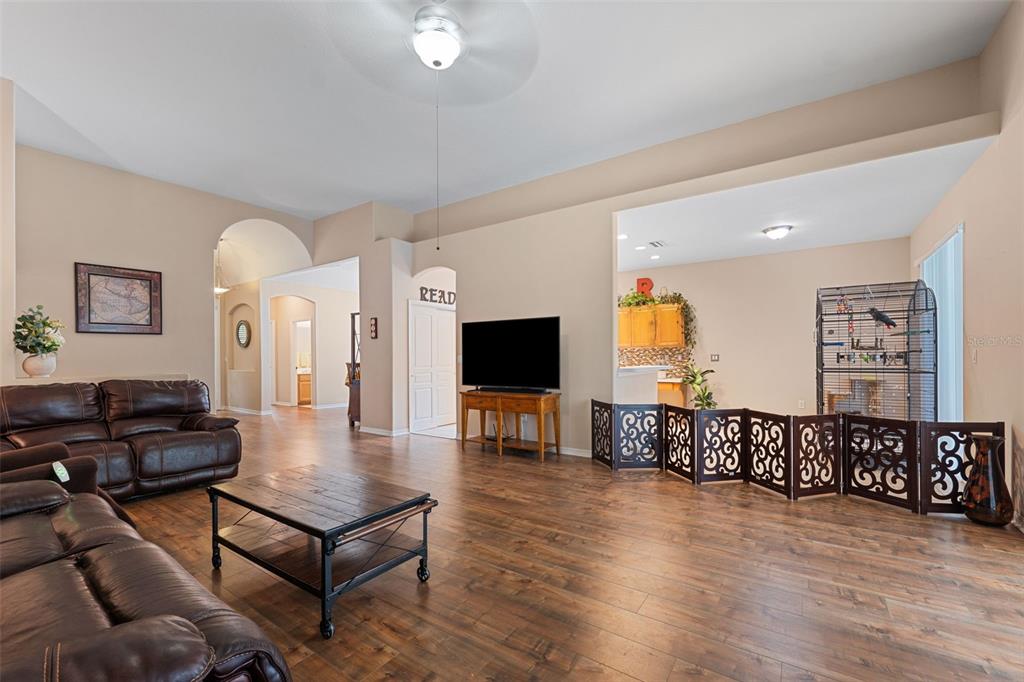 West meadows beauty with a sparkling pool and solar panels! this stunning single-story home, located in the desirable hawks landing community, is a rare find! nestled on an oversized 1/4-acre lot, this 4-bedroom, 3-bath, 2-car garage home offers a perfect combination of style, comfort, and energy efficiency. as you step through the impressive entryway, you're greeted by an inviting view of the private pool and lush landscaping. the open living and dining rooms feature high ceilings, art niches, and a plant shelf, creating a bright and welcoming space. the heart of the home is the gorgeous kitchen, boasting stainless steel appliances, wood cabinetry, a breakfast bar, and a closet pantry. the adjoining dinette and family room overlook the pool area, perfect for indoor-outdoor living and entertaining. the spacious master suite offers high ceilings, a sliding door that leads to the covered lanai, and a luxurious master bathroom with dual sinks, a garden tub, a separate shower, and a large walk-in closet. the three-way bedroom split provides privacy for everyone, with well-sized secondary bedrooms. this home has been upgraded with newer laminate flooring throughout most of the home, newer appliances, and solar panels (installed in 2022), making it energy-efficient. enjoy relaxing or hosting in your private pool, equipped with a new energy-efficient pool pump. plus, the roof was replaced in 2019, offering peace of mind. located in west meadows, the home is just minutes away from top-rated schools, including clark elementary, and offers a wealth of amenities such as biking/walking trails, a resort-style pool with a waterslide, a lap pool, tennis courts, a fitness center, basketball courts, a dog park, playgrounds, a clubhouse, and more. it’s also conveniently close to shopping, dining, usf, moffitt, the va, outlet malls, and major highways. this home truly offers the best of florida living—schedule your showing today!19117 DOVE CRK, TAMPA, FL 33647