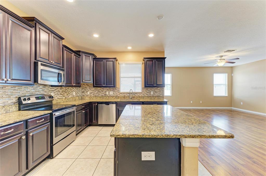 Walk-In Closet(s)Ceiling Fan(s) Eating Space In Kitchen High Ceilings Living Room/Dining Room Combo Stone Counters Thermostat Open Floorplan Solid Wood CabinetsExterior Features: