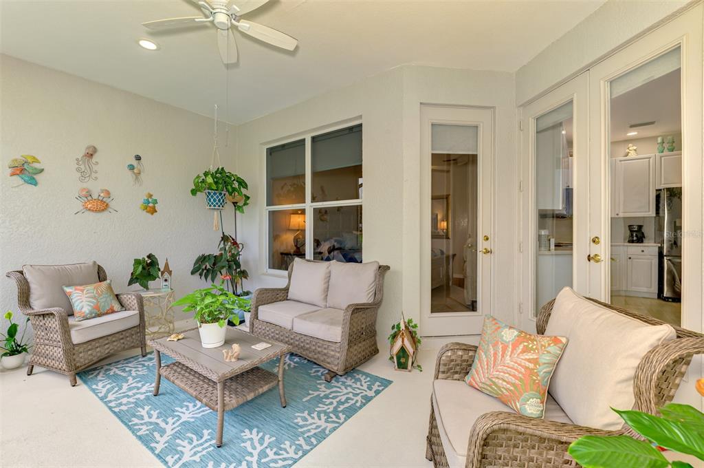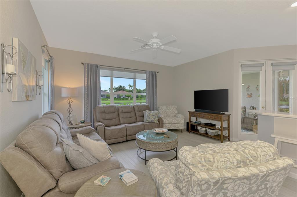 Huge price improvement!! this picturesque villa features an open, split floor plan. 2 bedrooms, 2 bath plus a den/office with murphy bed/desk used as a 3rd bedroom/office and attached 2 car garage. luxury plank vinyl flooring installed throughout september 2022. new water heater 2024. this is a rare opportunity to own an attached home in the coveted community of the carriage homes of lakeside plantation. this bright and cheery villa has a wonderful kitchen with island that overlooks the dining and living area. it has stainless steel appliances added september 2022 including refrigerator, electric stove with air fryer oven, microwave, dishwasher and disposal! light cabinets add brightness to the area! french doors open to a spacious lanai with an inviting view to a community lake. a gorgeous master suite with 2 walk-in closets. waterfront view from living area and master suite. utility closet houses washer/dryer added september 2022! gutters all the way around updated in 2023 and new gaf roof with vents put on july 2023! exterior painted late 2023! electrical updates with surge protector done may 2023! air conditioner installed 2018 with new compressor installed may 2025! updated blinds added at all windows and doors in 2024! this is in a hoa community with access to enjoy 2 pools! a private heated pool and cabana are just steps away. neighbors and friends gather here all seasons. the motto of the carriage homes, "forever friends made in paradise". when in the mood for more activities, around the corner is the lakeside plantation clubhouse, heated pool, spa, exercise room, courts, a park with grill and tables. there is even a playground. lakeside plantation is a cdd community. the fees are included in your taxes. close to beaches (over 11 reachable in 45 minutes or less), fine dining, shopping, easy access to airports and i-75, lots of close attractions, great schools and much more accentuate this home! call for an appointment!Villa 2 bedrooms - THE CARRIAGE HOMES OF LAKESIDE PLANTATION for Sale