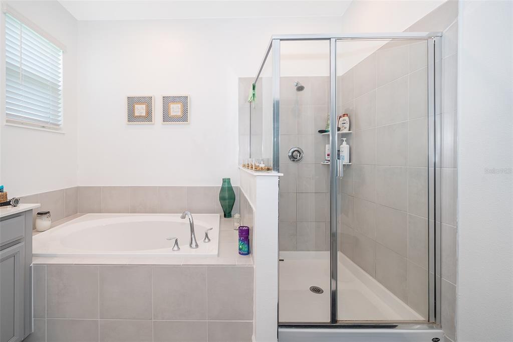 Welcome to your dream home! built in 2022, this spacious one-story, 4 bedroom 3 full bath home offers a thoughtful design with a 3 way split floor plan. the stylish stone trim on the front elevation is an upgrade as is the 3 car garage with electric door openers for both the double and single bays. wood-themed ceramic tile flows throughout the main living areas, paired with cozy carpet in the bedrooms. the heart of the home is a gourmet kitchen featuring stainless steel appliances, sleek gray cabinetry with a tile backsplash, and pristine silestone countertops. enjoy plenty of bar-top seating with the large breakfast bar in addition to the island. illumination in this area is provided by stylish hanging pendants and recessed can lights. the primary bedroom suite is a true retreat boasting a spacious walk-in closet and a luxurious bath with dual stone-topped vanities, a garden tub, separate shower and ceramic tile flooring. high ceilings over 9' extend throughout the home, enhancing its open and airy feel. energy-efficient solar panels keep utility costs low. outdoor living shines with a covered front porch and a rear covered porch which is integrated into the roof line. a greenspace swale at the rear of lot adds extra privacy and is maintained by the homeowners association. nestled in the trinity lakes community, you’ll enjoy resort-style amenities including an oversized pool, splash pad, fitness center, fishing pier, dog park, walking trails, and multiple playgrounds. conveniently located near the turnpike, this home is just 35 minutes from orlando’s world-famous theme parks and is a short drive from the charming downtowns of groveland and clermont which offers easy access to shopping, dining, and top-rated schools—all within 10 minutes. whether you’re unwinding in the comfort of this move-in-ready home or exploring the vibrant surroundings, this handsome home delivers the perfect blend of luxury, convenience, and lifestyle. don’t miss your chance to call this exceptional property home!1920 PERCH HAMMOCK, GROVELAND, FL 34736