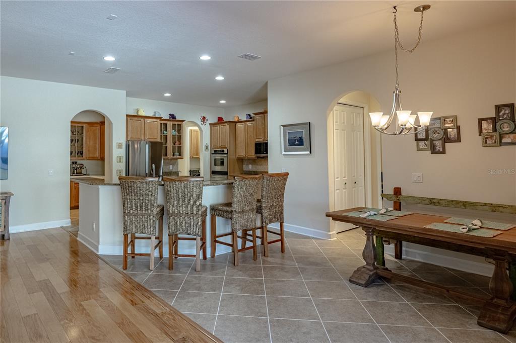 Split BedroomWet BarBuilt-in FeaturesCeiling Fan(s) Eating Space In Kitchen High Ceilings Thermostat Open Floorplan Window Treatments Solid Surface Counters Solid Wood Cabinets Primary Bedroom Main Floor Kitchen/Family Room ComboExterior Features: