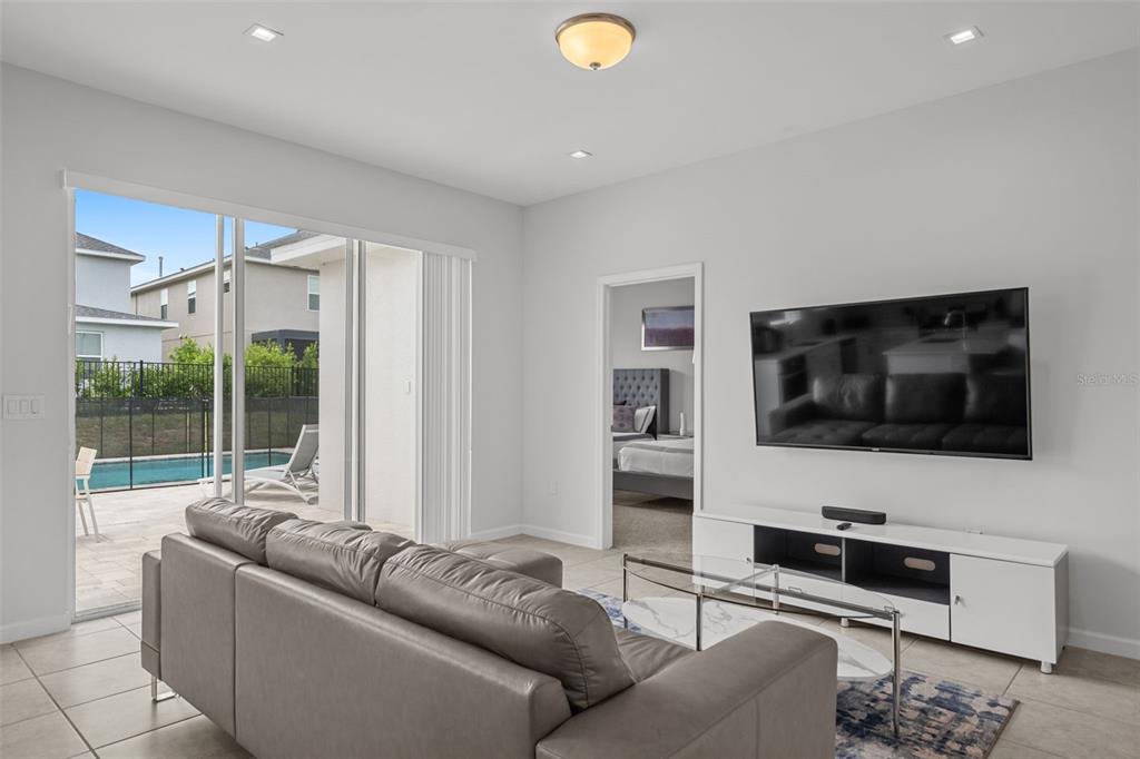 This extraordinary opportunity awaits you in the form of a luxurious 7-bedroom 5-bathroom property, fully furnished and move-in ready. nestled in the gated resort community of eden gardens, this turnkey home not only promises a perfect getaway for you but also presents a fantastic investment opportunity. this stunning single-family home is more than just a residence—it's a meticulously designed vacation retreat, offering a seamless blend of comfort, style, and convenience. with spacious interiors that include a game room and a private pool, it comfortably accommodates large families or groups of up to 22 guests. each bedroom is equipped with smart tvs, ensuring entertainment for everyone. the kitchen is a chef’s paradise, featuring stainless steel appliances and everything needed to prepare delicious meals. whether you’re cooking for a large group or a cozy family dinner, this kitchen is equipped to handle it all. the home’s perfect floor plan boasts an open concept that invites gatherings and relaxation, with ample space for both indoor and outdoor activities. schedule your showing today to experience firsthand the luxury and charm this home has.194 GOLDEN NOBLE, DAVENPORT, FL 33897