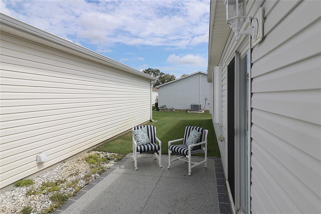Price has been reduced. motivated seller. this nice little colony patio villa 2/2 is located in the eagle ridge villas of liberty park and is being sold with a little bit of furniture. bond is paid. it has a glass enclosed front lanai, hurricane shutters 2022, a new roof 2019, water filtration system 2018, new water softener 2018, new garage opener , hvac 2015, new patio door 2016 (with blinds inside), new gas dryer. there are extra built in cabinets in the kitchen area and on the other side of the bar. there is a newer refrigerator and microwave and a new dishwasher. the sofa in the living room is a new reclining power sofa. there are two end tables and a tv stand. there is a nice dining room table and chairs and a hutch ( items in the hutch do not convey). the home has 3 solar tubes for energy saving lighting, one in the kitchen and one in each of the bathrooms. there is a linen closet by the guest bath. the guest bath has a tub/shower combo and the primary bath has a nice walk in closet and the bath has a shower. the guest bedrooom has a built in closet and is perfect for an office or bedroom. the garage has a new chamberlain door opener, washer and dryer and a storage cabinet. there is room for a car and a golf cart. this home is perfect for an investor or a snowbird. bond is paid. fire, $125 yr, maint $214.74 yr, taxes $1229.40 yr.Villa 2 bedrooms - THE VILLAGES for Sale