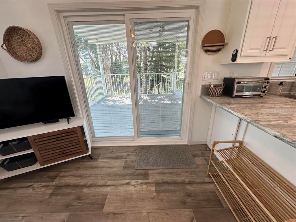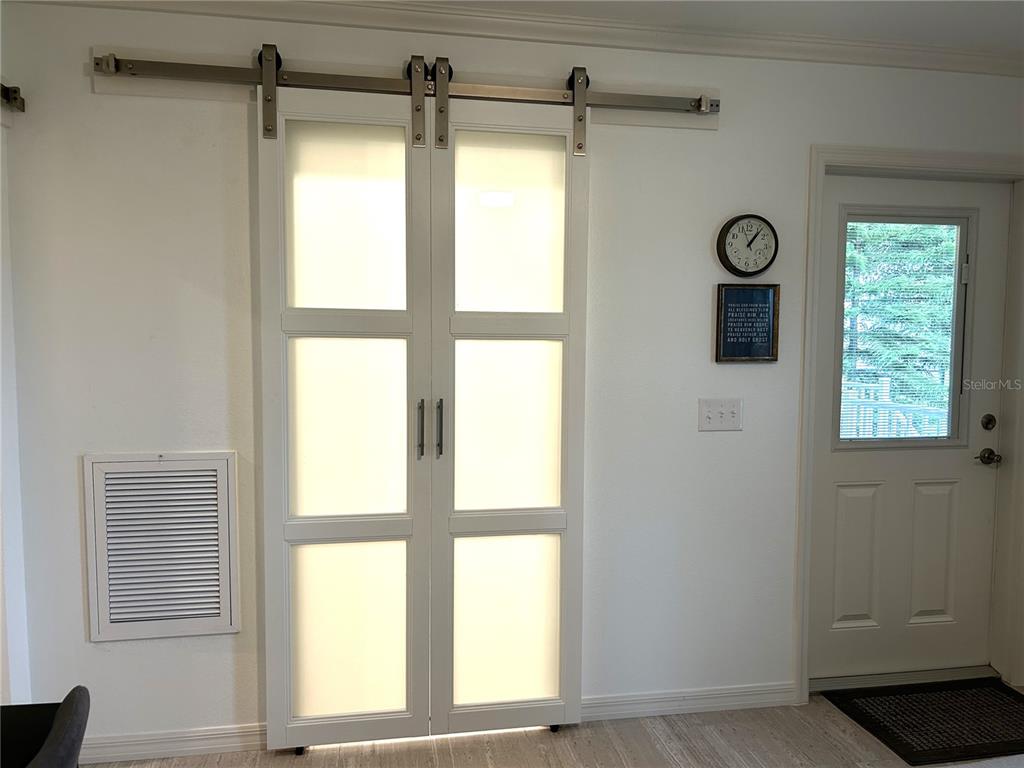 2022 beautiful two bedroom 2 bath home in lily lake! not too many like this one! the home backs up to hole #1 and has a view of beautiful lily lake! this home has an open concept living-dining-kitchen arrangement. there is a trey ceiling in the living room, ceiling fan, windows overlooking hole #1, and sliding doors opening onto a lovely covered deck, perfect for entertaining, morning coffee or evening tea time! the dining area has a built-in china cabinet for storage and the ample kitchen has all up-graded whirlpool appliances that include a range, microwave, and a side by side refrigerator as well as side by side freezer with an ice maker! there are ceiling fans throughout the home. a primary bedroom and bath was added to the one bedroom one bath home. the primary has two sets of opaque barn doors. one is a single door opening to the hallway and the other is a double opaque barn door opening into the added primary bathroom which houses a stack washer-dryer unit that conveys with the home. the primary bedroom, primary bathroom & deck are covered by a 14x38 ft composite panel roof. there is a carport and 8x10 utility shed with double doors (that could house a golf cart) also covered by a composite roof with 6" gutters with facia around the perimeter and downspouts. this home will be furnished and a list of furnishings will be provided by the owner. there is a golf cart that will not sell with the home but may be purchased separately.195 LILY CRK, FROSTPROOF, FL 33843