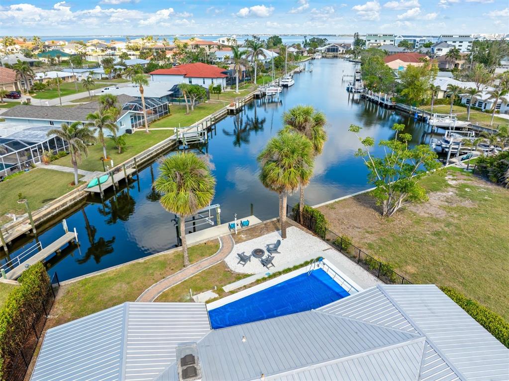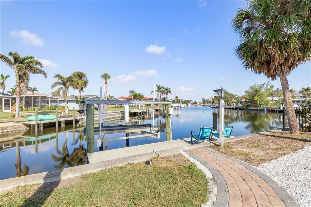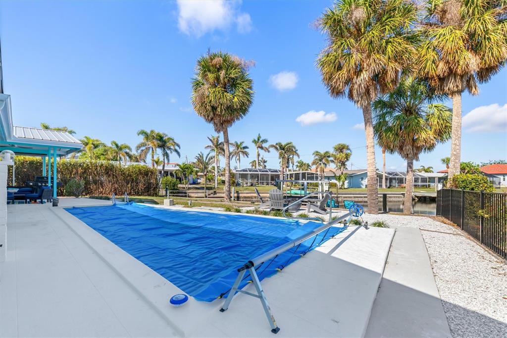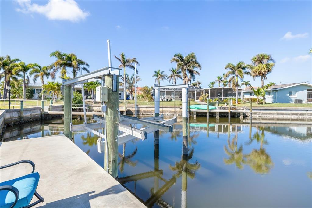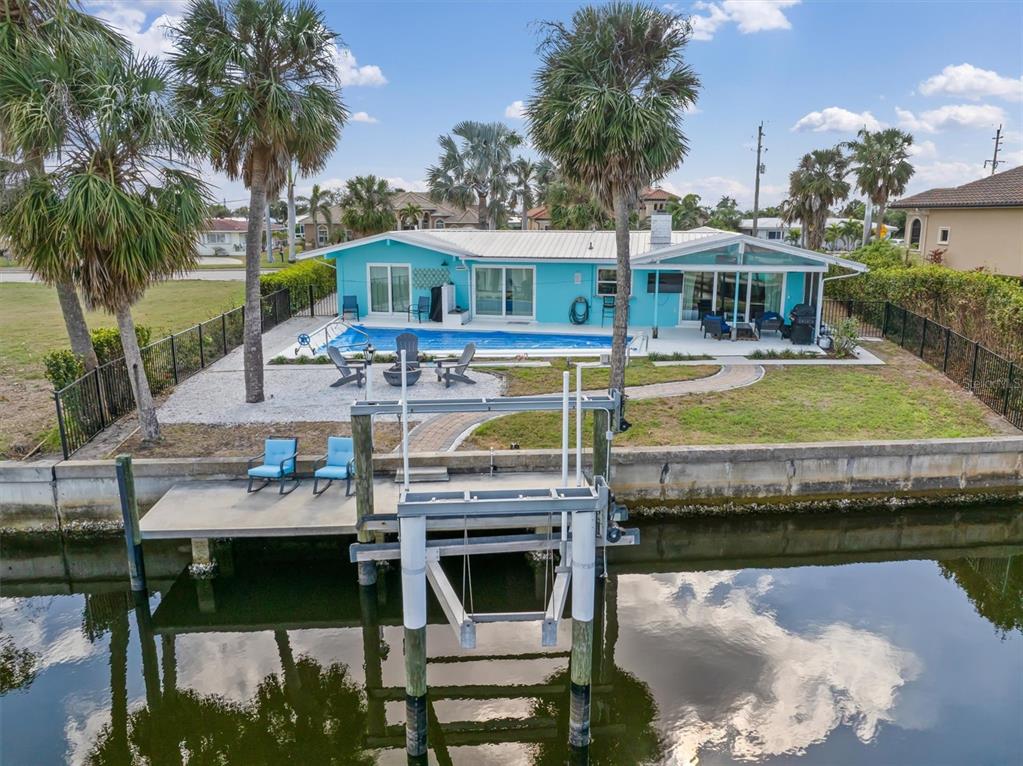 Stunning pgi waterfront property with deep water sailboat access this beautifully updated pgi property boasts a spectacular waterfront view along a deep-water sailboat canal. perfect for boating enthusiasts, it features a concrete dock and a 10,000 lb boat lift. the home includes numerous upgrades, such as a durable metal roof, a sparkling swimming pool, and an electric car charging port in the garage. the spacious living room offers vaulted ceilings and a cozy wood-burning fireplace, creating a warm and inviting atmosphere. enjoy canal views from both the dining room and the galley-style kitchen, ideal for scenic meals and entertaining. adjacent to this area is a private bathroom and a large closet, adding to the home’s functionality and charm. the third bedroom is uniquely private, located separate from the main house with its own entrance via the courtyard—perfect for guests or a home office. relax or entertain in the expansive screened lanai with a pool, or gather around the outdoor firepit in the dedicated sitting area. located near fishermen’s village and just a short drive to ponce de leon park, this home offers both convenience and an unbeatable lifestyle.1960 W MARION, PUNTA GORDA, FL 33950
