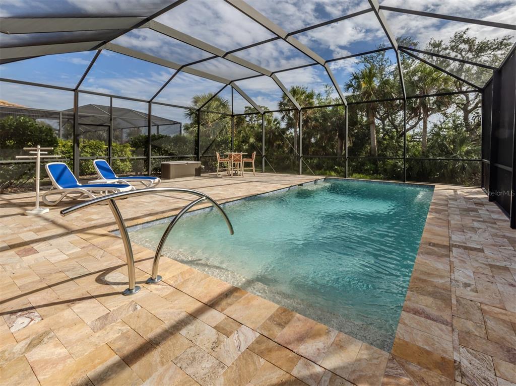 Welcome to your dream home in islandwalk, venice florida. boasting an expansive 2516 sf of living space. the 3 zone, 17 serr variable speed hvac pinnacle estate model is not just a residence- it's a statement of upscale living with engineered hardwood floors and porcelain tiles. as you step inside, the southern pine ceiling in the entry hall invites you into the world where every detail is crafted for harmony and function. the open floor plan cascades into the gathering room adorned with a custom cork wall, perfect for entertaining or cozy family evenings. the home is adorned with custom plantation shutters throughout and is illuminated by recessed dimmer controlled lighting and remote controlled ceiling fans, setting the mood for every occasion. the kitchen is outfitted with stainless steel appliances, pristine quartz countertops and a layout that makes every square inch count. adjacent, the dining room area offers vistas of your private backyard sanctuary lending a picturesque backdrop to your culinary creations. dive into comfort in the spacious primary bedroom suite, where privacy and peace are your nearest neighbors. this retreat features an ensuite bathroom with abundant closet space to house your wardrobe in style. each of the additional bedrooms, one of which is an en-suite, both containing walk-in-closets with engineered hardwood floors. step outside to the lanai where a large screen tv is mounted on the wall and travertine tiles meet an inviting in ground heated pool, with private preserve views. the home is protected by storm smart electric screens and eurex storm shutters, ensuring that your paradise is protected regardless of the weather. the lanai ceiling is adorned with southern pine. set within a 24 hour guard gated community, security and privacy are paramount, providing you peace of mind in your oasis. the 3 car garage includes overhead storage for seasonal decorations or recreational gear. additionally, the exterior features a 22kw generac whole home generator, including a buried 500 gal. propane tank. the home also includes 2 separate volt low voltage systems for exterior lighting, that enhances the homes architecture after sunset and provides a visual welcome every time you drive up. location is the icing on the cake. islandwalk is an active lifestyle community comprising of 2 pools, a lap pool, pickle ball courts, tennis courts, bocce court, basketball court, 2 state of the art gyms, yoga studios, walking/biking trails, dog park and a community garden. the community center boasts art and craft rooms, a library, billiard tables, card rooms, and hosts concerts and comedy shows. the community also has a famers market and food trucks. your new home is a stones throw from downtown wellen park's new restaurants and shopping and a new publix super market... for those discerning buyers seeking a residence that offers both beauty ad functionality in a vibrant neighborhood...look no further.19696 PETRINO, VENICE, FL 34293