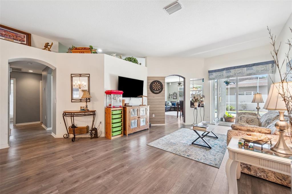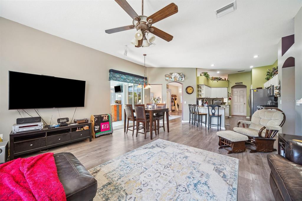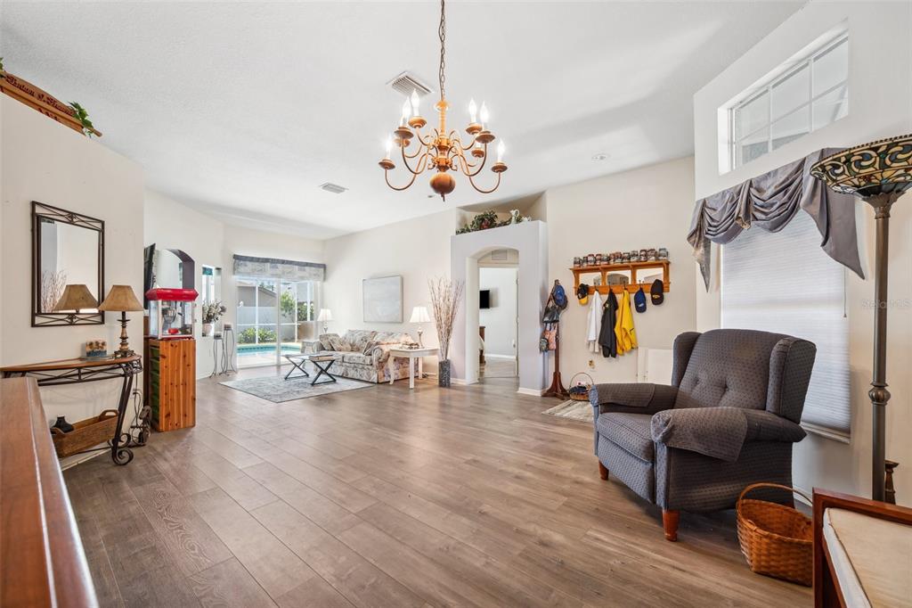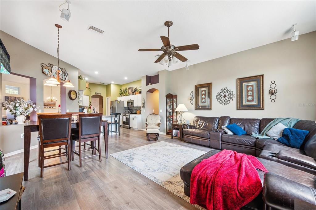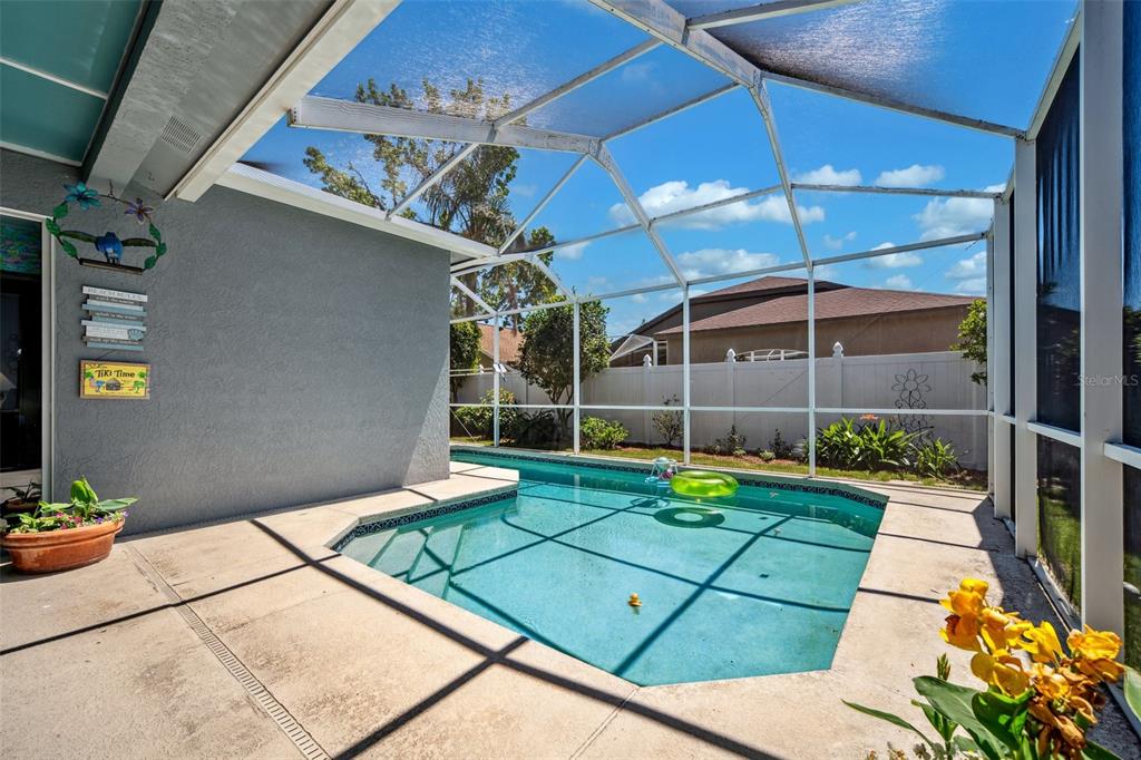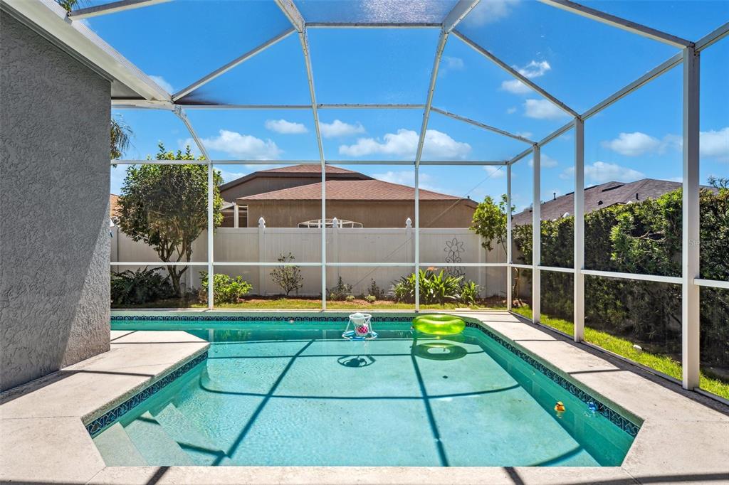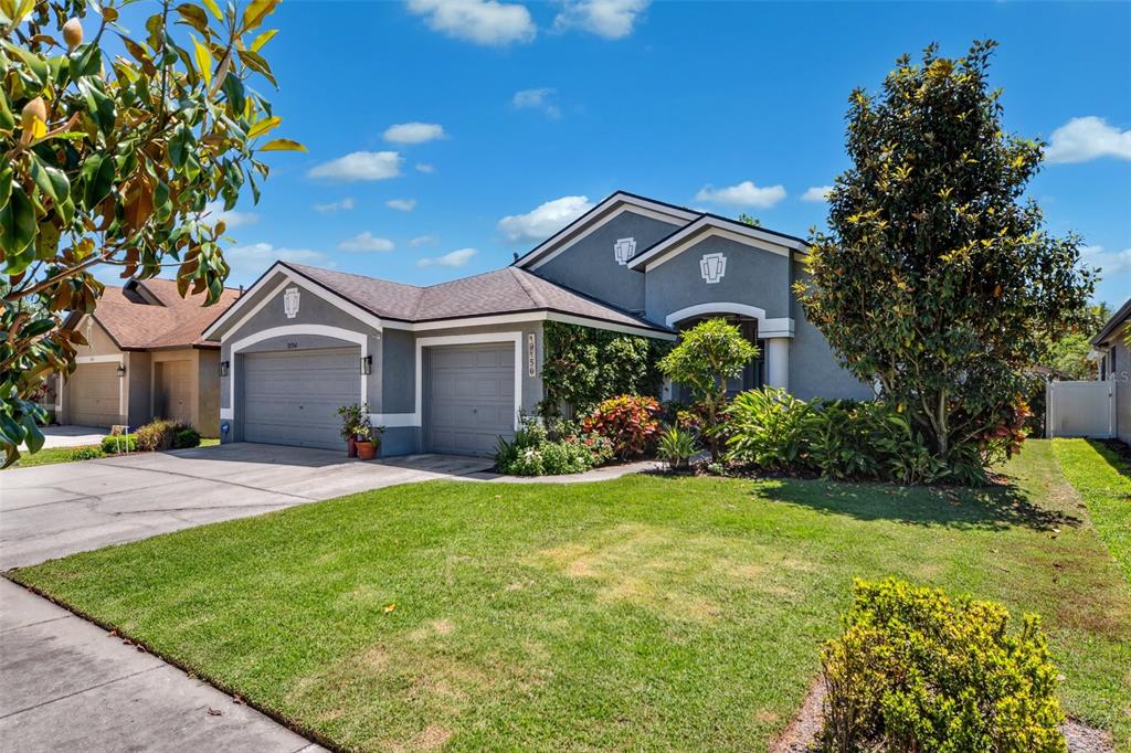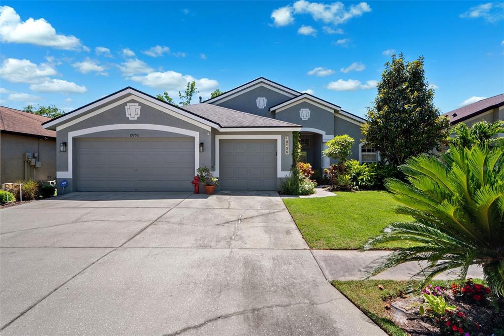 Welcome to this stunning 4-bedroom, 3-bathroom single-story home located in the highly sought-after gated oakstead community in land o’ lakes. situated on a beautifully landscaped lot, this residence features a 3-car garage and a private backyard oasis complete with a screened-in, in-ground gunite pool with beautiful light and water features, pool alarm, and is wired for an electric heater—perfect for year-round enjoyment. inside, you'll find a spacious open-concept floor plan with a desirable 2-way split layout. the primary suite is conveniently located on the first floor and includes a luxurious ensuite bath with dual vanities, a soaking tub, and custom built-ins in the walk-in closet. the heart of the home—an upgraded kitchen—boasts stainless steel appliances, a stylish backsplash, pantry, informal dining space, and a mix of gas and electric appliances. thoughtful design details include decorative ledges, wood ceilings, 8-foot sliding doors, pre-wiring for tv and speakers, a video doorbell, and a security system. additional highlights include a new hvac in 2023, new roof in 2019, fresh exterior paint in 2023, added insulation for energy efficiency, and beautiful finishes throughout. the fully fenced backyard provides privacy with 6-foot vinyl fencing and tropical landscaping, while the front of the home welcomes you with a decorative glass door, charming flower beds and a beautiful fountain. residents of oakstead enjoy access to top-rated public schools located within the community, along with resort-style amenities: a clubhouse, fitness center, community pool, lap pool, kiddie pool with splash zone, walking trails, playground, soccer field, basketball, tennis, and pickleball courts. don't miss the chance to make this beautifully maintained home your own. schedule your private showing today!19750 ELLENDALE, LAND O LAKES, FL 34638