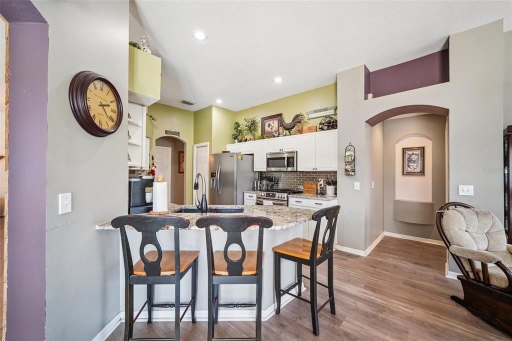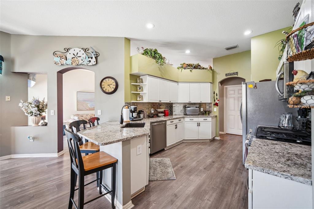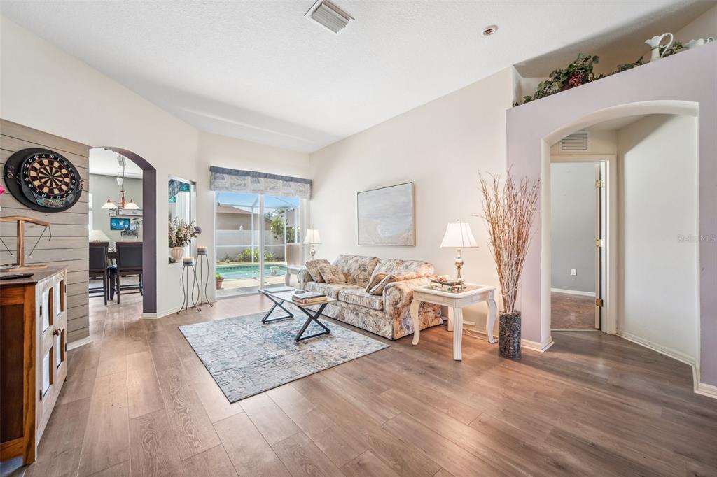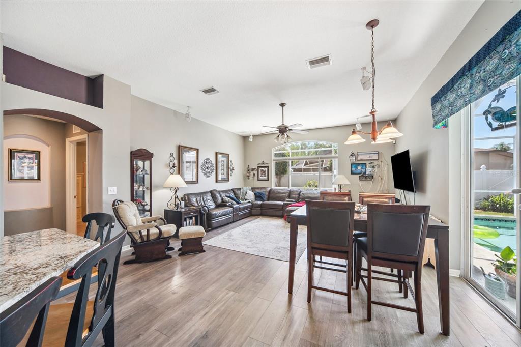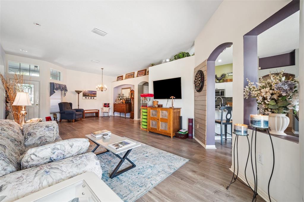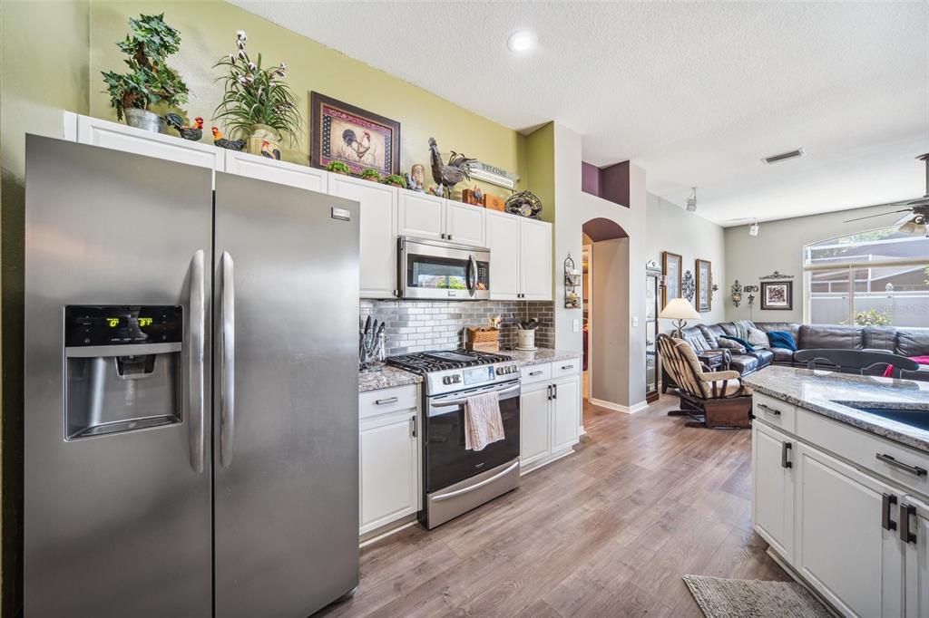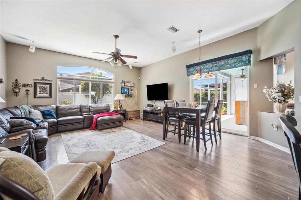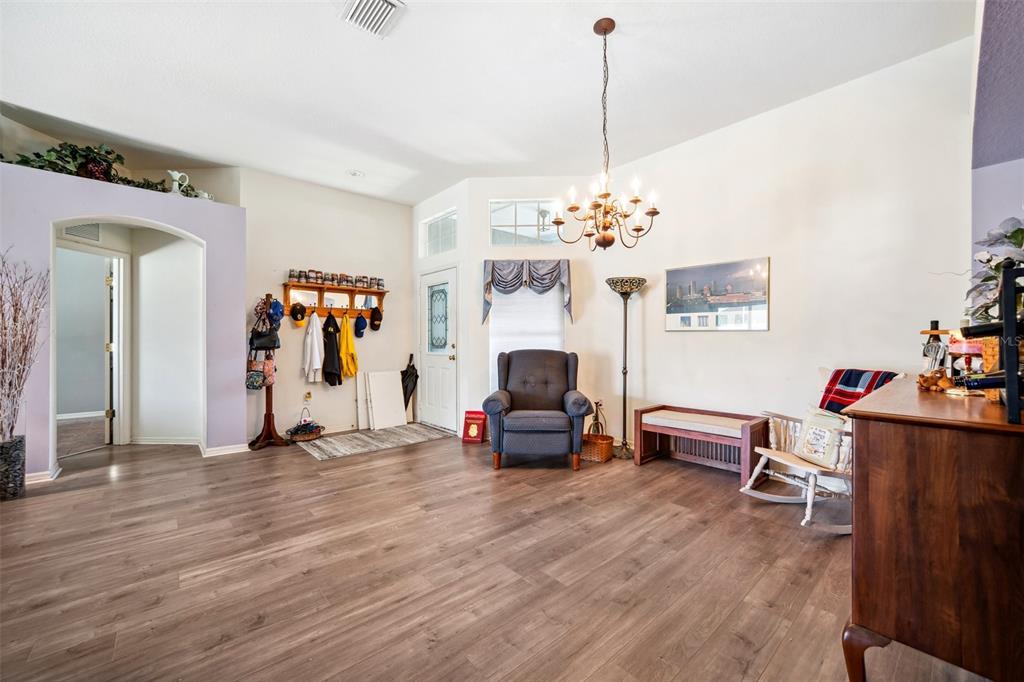 Welcome to this stunning 4-bedroom, 3-bathroom single-story home located in the highly sought-after gated oakstead community in land o’ lakes. situated on a beautifully landscaped lot, this residence features a 3-car garage and a private backyard oasis complete with a screened-in, in-ground gunite pool with beautiful light and water features, pool alarm, and is wired for an electric heater—perfect for year-round enjoyment. inside, you'll find a spacious open-concept floor plan with a desirable 2-way split layout. the primary suite is conveniently located on the first floor and includes a luxurious ensuite bath with dual vanities, a soaking tub, and custom built-ins in the walk-in closet. the heart of the home—an upgraded kitchen—boasts stainless steel appliances, a stylish backsplash, pantry, informal dining space, and a mix of gas and electric appliances. thoughtful design details include decorative ledges, wood ceilings, 8-foot sliding doors, pre-wiring for tv and speakers, a video doorbell, and a security system. additional highlights include a new hvac in 2023, new roof in 2019, fresh exterior paint in 2023, added insulation for energy efficiency, and beautiful finishes throughout. the fully fenced backyard provides privacy with 6-foot vinyl fencing and tropical landscaping, while the front of the home welcomes you with a decorative glass door, charming flower beds and a beautiful fountain. residents of oakstead enjoy access to top-rated public schools located within the community, along with resort-style amenities: a clubhouse, fitness center, community pool, lap pool, kiddie pool with splash zone, walking trails, playground, soccer field, basketball, tennis, and pickleball courts. don't miss the chance to make this beautifully maintained home your own. schedule your private showing today!19750 ELLENDALE, LAND O LAKES, FL 34638