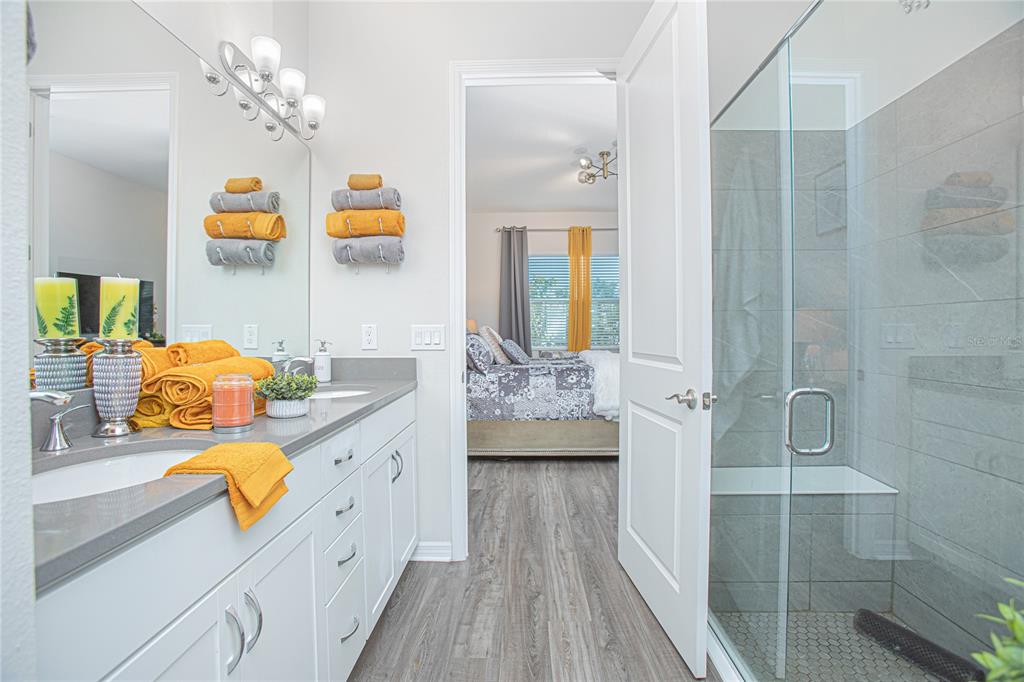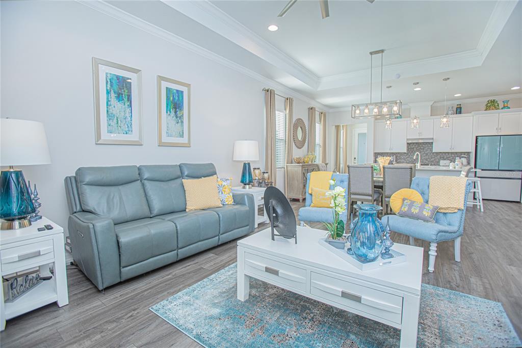 Welcome to 1987 key bay trail, a stunning 2-bedroom, 2-bath villa in the prestigious 55+ four seasons community. this beautifully designed home offers 1,437 sqft of living space with luxurious upgrades throughout. the gourmet kitchen is a chef's dream, featuring quartz countertops, a gas cooktop, a large island and plenty of cabinet space. both bathrooms include quartz countertops, while the master bath boasts dual sinks and a convenient bench in the walk-in shower. the open floorplan is designed for both style and functionality, with laminate flooring throughout the entire home and a tray ceiling in the living room adding a touch of elegance.. step outside to your private oasis! the screened lanai features an outdoor kitchen and extended pavers, perfect for entertaining or relaxing. the screened front porch provides another cozy spot to enjoy the florida breeze. located in the heart of the celebration area, this villa is just minutes from disney, shopping, dining and more. the four seasons community offers resort-style amenities, including a 12,000 sqft clubhouse, two pools, pickleball, tennis, bocce courts, and exclusive access to mystic dunes golf course. don’t miss the chance to own this exceptional home in a vibrant 55+ community. schedule your private tour today!Villa 2 bedrooms - FOUR SEASONS AT ORLANDO PH 4B for Sale