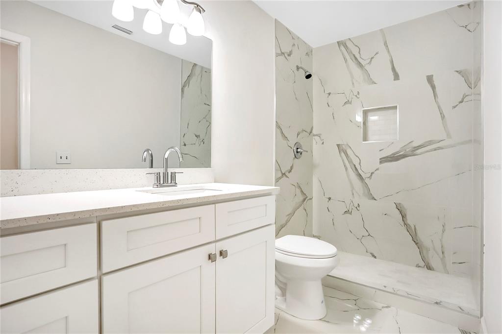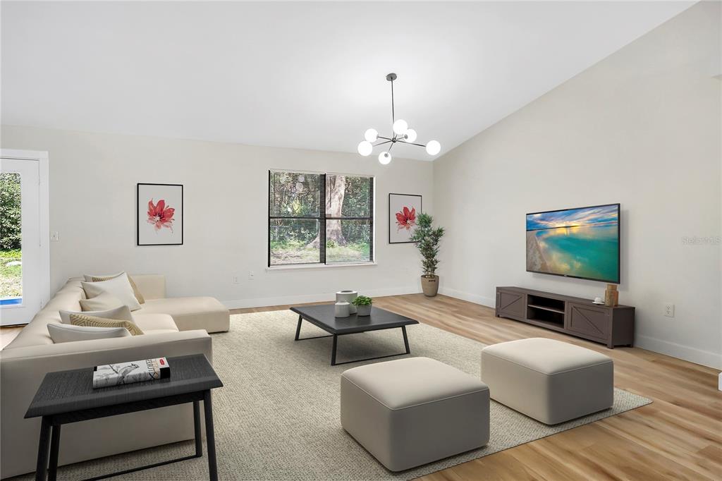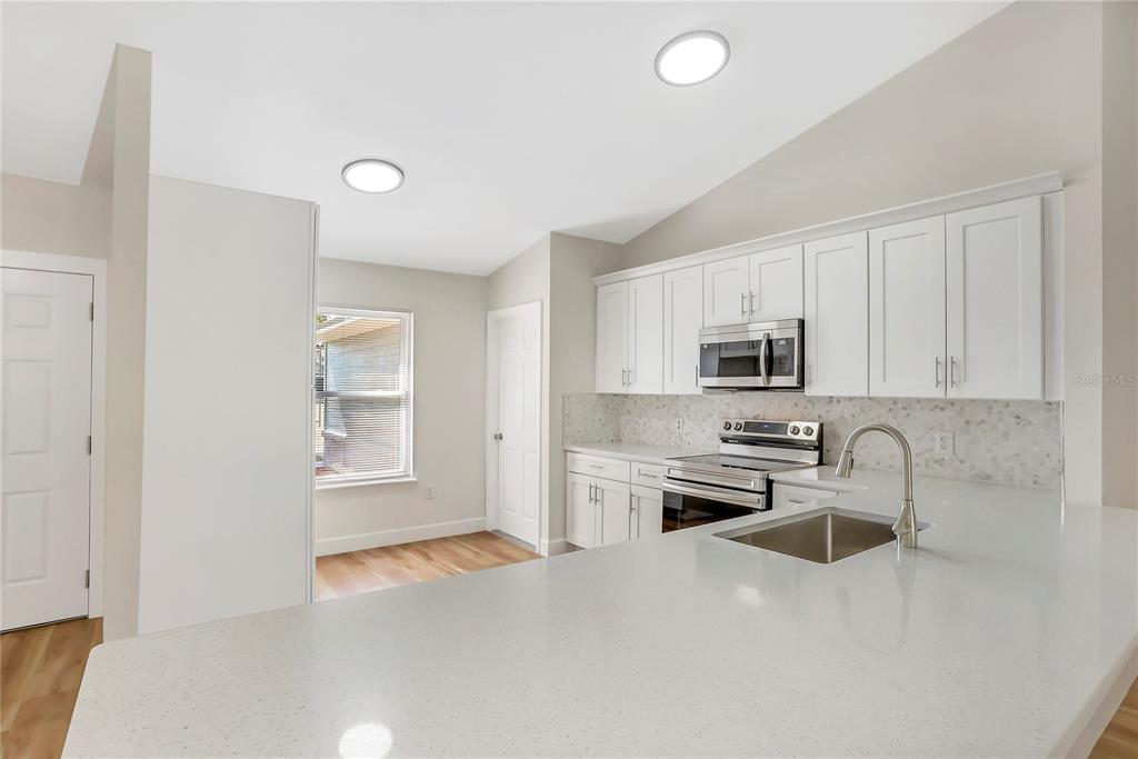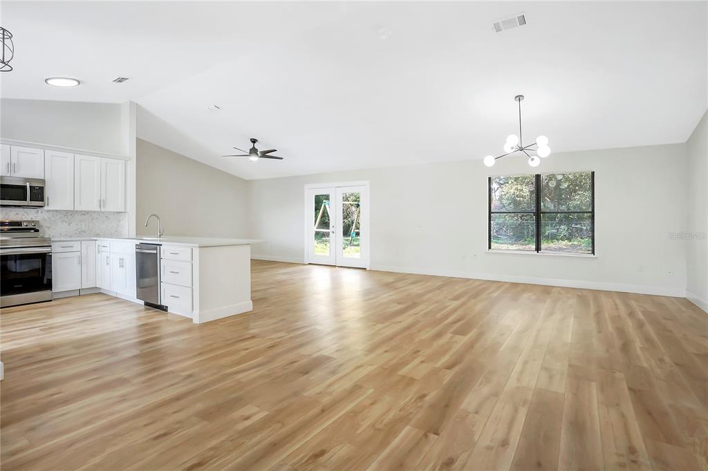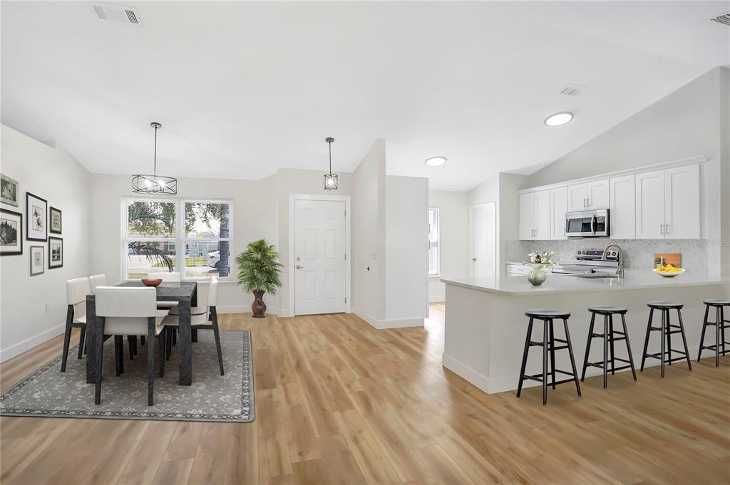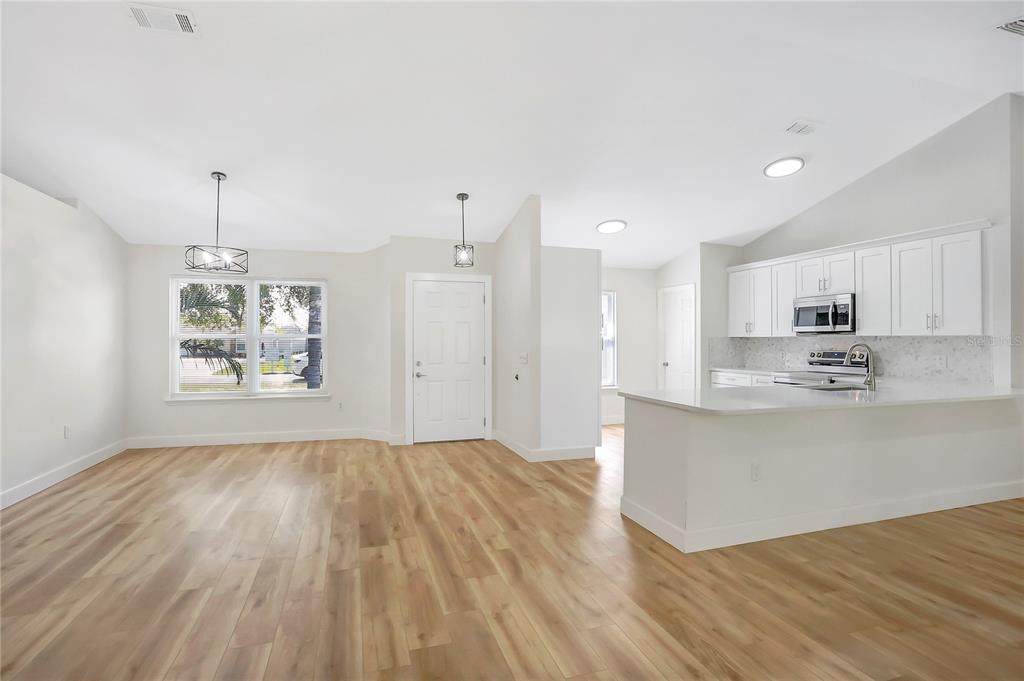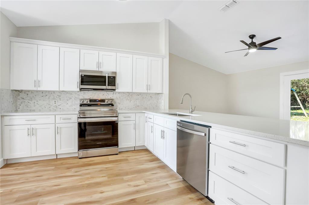 One or more photo(s) has been virtually staged. this fully renovated deltona home is a perfect blend of modern elegance and comfort. the open floor plan is enhanced by luxury vinyl flooring throughout, creating a seamless and designer look. a custom-designed kitchen features sleek shaker cabinets, quartz countertops, and brand-new stainless steel appliances, large peninsula with bar seating, making it a true chef’s delight. the bathrooms have been beautifully remodeled with porcelain-tiled showers, new quartz vanities, and updated plumbing fixtures. new light fixtures add warmth and sophistication, while a brand-new december of 2024 roof provides lasting durability. the a/c system was updated in december-2024, and the windows were replaced in 2011 for added efficiency. located near beautiful natural springs, scenic parks, and just a short drive from top florida destinations, this home offers the best of both relaxation and adventure. new smyrna beach is just 30 minutes away, while walt disney world is only 45 minutes. convenient access to i-4 makes commuting easy, connecting you to daytona beach, orlando, and beyond. this property has no hoa and is turn-key, ready for your family. schedule your showing today!1995 BREWSTER, DELTONA, FL 32738