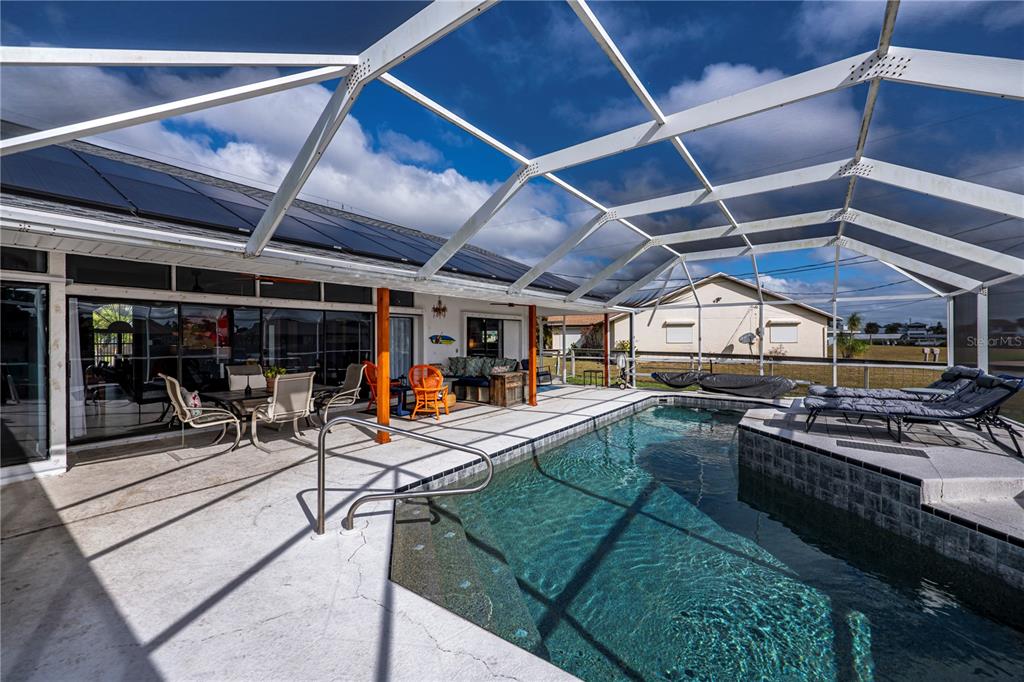 Solar powered!! this formal model home comes with lots of recent updates. this nice size 3/2 pool home is priced not to break your bank. this home features recently, remodeled kitchen with double oven and induction cook top, updated baths, flooring and much more. this home is located conveniently to the fine amenities port charlotte has available. once you enter through the screen entrance, it opens up to a huge great room floor plan with lots of sliders giving you an opening and airy feel. home includes a split floor plan with large master ensuite that also opens up to the pool. this home has the highly sought after southern rear exposure, which gives you sun on your pool and shade on your lanai. the beautiful pool with waterfall is encompassed by a huge lanai to enjoy the good life here in southwest florida. home has well for ittigation. you even get a peekaboo view of beautiful spring lake across your lanai. you may see can an occasional boat go by. if you’re a boater, spring lake boat ramp is only about a mile away. this home is centrally located for easy access to shopping, healthcare, golfing, boating fishing, you name it. it’s a perfect place to enjoy the good life. port charlotte sit right on charlotte harbor features world class fishing, tarpon tournaments, sandy beaches, dining on the water you name it. once you see this lovely home you are going to agree. it is priced to sell. make your appointment today. you’ll be glad you did. i’m pretty confident. you will want make this one your home. note current taxes reflect pace loan annual payment of $3,118.71. pace loan will be paid off at closing.19983 MIDWAY, PORT CHARLOTTE, FL 33948