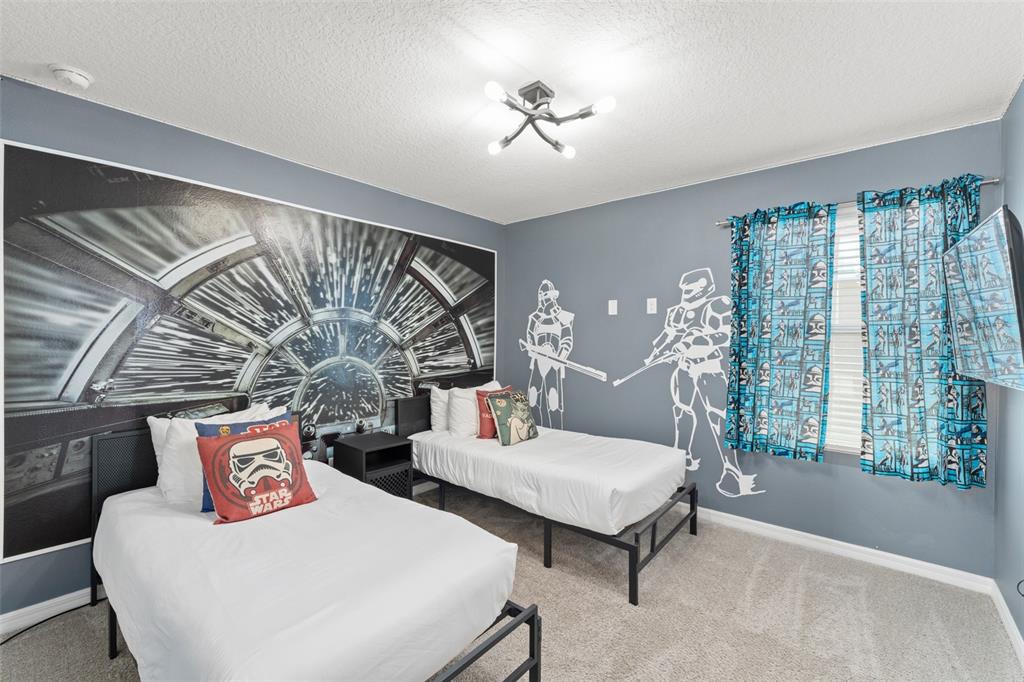 Welcome home to this immaculate fully furnished vacation/short term rental home with private pool/spa water view and no rear neighbors in the popular resort community of solara! this 6 bedroom, 4 1/2 bathroom home has plenty of room for all! you'll appreciate the elegant and open floorplan and tasteful décor. the oversized kitchen has plenty of storage and is perfect for preparing evening meals to be enjoyed in the dining area or out on the pool deck (all appliances included!). the breakfast bar is the ideal location for eating quick snacks before heading out to a theme park or coming home and enjoying some great entertaining. movies will be wonderful on rainy days as the living room boasts a large tv and plenty of space for all your guests. other conveniences on the ground floor include a primary bedroom with an amazing ensuite along with a large laundry room. additionally, there is a half bath right off of the downstairs dining area. upstairs, you will find a loft - perfect for more lounging, a second primary suite, and plenty of additional bedrooms. all of the bedrooms are tastefully decorated, and your guests are sure to appreciate their size. you will absolutely enjoy everything out back - the gorgeous, pristine pool, the hot tub, along with the quiet rustle of the trees. have your morning coffee or evening drinks out on the patio while enjoying florida’s sunshine or unwinding after a day of fun activities. the attached garage has been converted to an entertainment room. solara resort offers an array of amenities, including a state-of-the-art clubhouse with a full-service restaurant, ice cream parlor, and coffee bar. fitness enthusiasts will appreciate the gym, while outdoor enthusiasts can enjoy basketball, beach volleyball, and soccer facilities. the zero-entry pool, surrounded by cabanas, a poolside tiki bar, and a splash pad, promises endless hours of enjoyment. hoa fees cover basic cable & internet, landscaping maintenance, valet trash service, and common area maintenance. solara resort, located just 8 miles from walt disney world and a short drive to universal, seaworld, and international drive, offers the perfect blend of convenience and luxury. come and see all this amazing home has to offer!2009 TROPICAL PALMS, KISSIMMEE, FL 34747