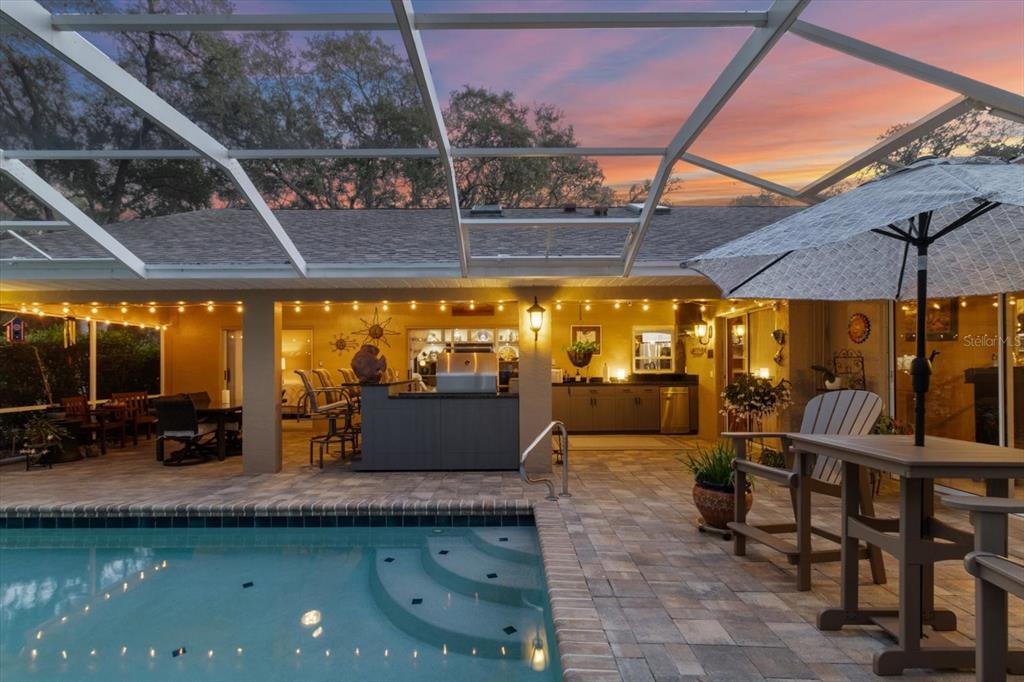 Dive into luxury in this fabulous 5 bedroom, 3 bathroom pool home in stunning hampton hills. this home is move-in ready with upgrades around every corner. you will love relaxing by the pool or entertaining friends with the well-suited outdoor kitchen. as you approach this corner lot property, you will appreciate the beauty of the illuminated trees and the impressive exterior stonework. upon entry, you will take in all the natural light and views of the pool and stunning backyard. the kitchen has all the features on your wishlist, including a 5 burner gas stovetop (complete with accessories - griddle and wok), modern appliances, including double oven. you will love the built-in high-top table, custom crafted of black walnut and canary wood, complete with 4 chairs and wine fridge. primary suite features sliding glass doors to the pool and elegant primary bathroom, with gorgeous cabinetry, dual vanities and walk in shower. front guest bedroom can be used as a home office and overlooks the canopy of trees in the front yard. guest suite features 2 bedrooms and large guest bathroom and can be sectioned off with a pocket door. fifth bedroom features an ensuite full bathroom and can be used as a flex space or in-law suite and has views of the pool. living room features a custom entertainment center and is flooded with natural light. outdoor kitchen is constructed with trex and features a twin eagle grill, with built-in rotisserie. the backyard is stunning with beautifully lit pergola, white picket fence and gorgeous landscape. play cornhole with friends and family in the convenient rear driveway. this home is surrounded by lush bushes and trees. located inside citrus hills, you will enjoy taking full advantage of the premier country club membership which offers access to multiple exclusive restaurants, modern fitness centers, pools and parks. golf packages are available. less than 20 minutes away from world famous crystal river, a boaters and fisherman's paradise. put this one at the top of your list! ***new roof in 2020201 W BRITAIN, HERNANDO, FL 34442