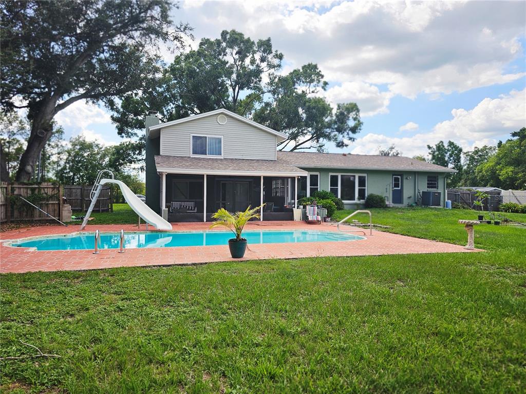 Back on the market! welcome home to your waterfront oasis. spend your days fishing, boating, jetskiing, or kayaking on beautiful lake brant. perfect location less than a mile from a major hospital, shopping centers, and several dining options. this lovely 3 bedroom, 3 bathroom, split level home sits on over half of an acre canal front lot. as you walk through the front door you are welcomed by an open and airy great room floor plan that includes an updated kitchen with granite counter tops and wood look ceramic tile flooring that extends into the living and dining spaces. the laundry room is off of the kitchen and has a door that leads out to the lush backyard that boasts a huge firepit, in-ground swimming pool with slide, and a concrete boat/kayak launch. the massive den is located on the lower level of the home and has a full bathroom, wood burning stone fireplace, and sliding glass doors that lead out to the newly screened patio off of the pool. all 3 of the bedrooms are located on the upper level of the home. the master bedroom has a full bathroom and a walk-in closet. an additional full bathroom with tub/shower combo and separate sink with vanity is placed alongside the other two ample sized bedrooms. bring your favorite water toys and enjoy soaking up the sun poolside or gather around the firepit and cozy up on cool evenings making smores as you admire the sparkling water views. this home is perfect for those who love the outdoors and waterfront florida lifestyle!Single Family House 3 bedrooms - MARILYN SHORES for Sale