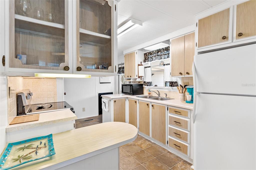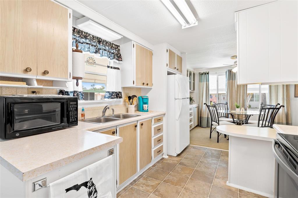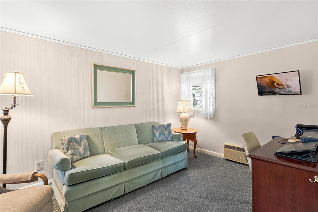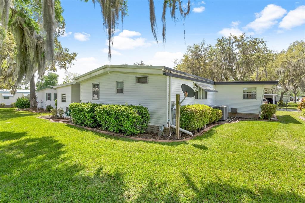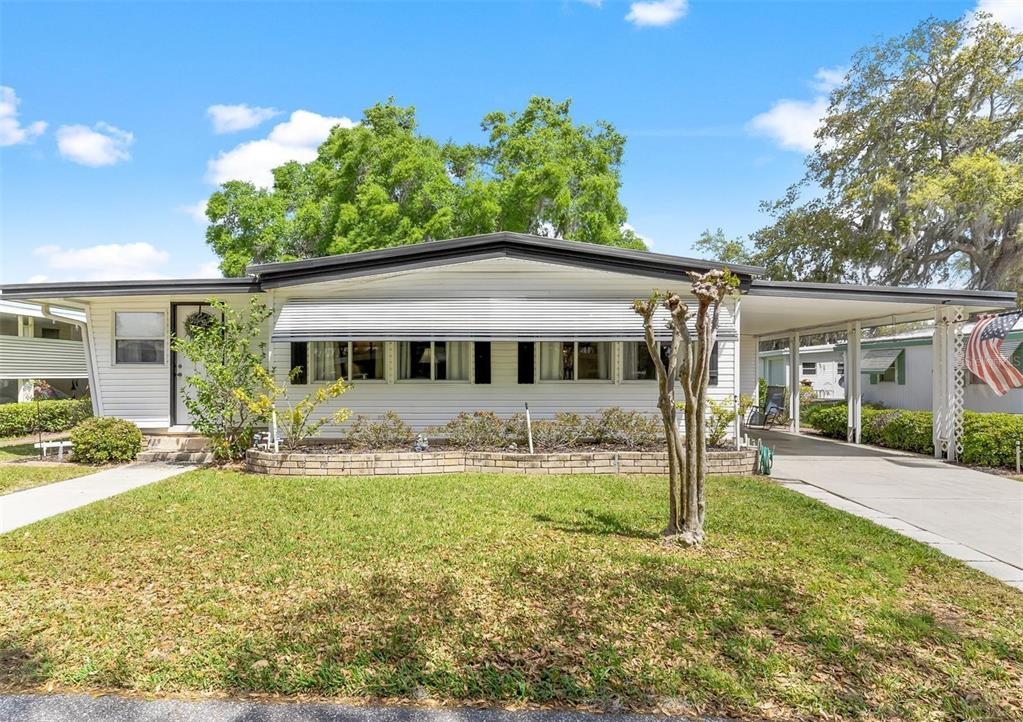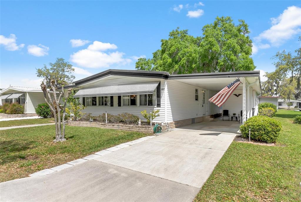 Adorable home...fully furnished! welcome home to this "turn key" move in ready...just bring your toothbrush and start living the dream! charming community where tranquility meets affordability! perfect for "snow birds" or seniors seeking an enriching retirement lifestyle, this 55+ resident-owned enclave offers unparalleled safety and security within its 24/7 guard-gated premises, complete with its own fire station. experience on-duty medical assistance available at the touch of a button, ensuring prompt emergency response right in the comfort of your own home. boasting lake access to the chain of lakes via the palatlakaha river, and the option for a personal boat slip at the marina! this spacious home with durable vinyl siding exterior presents a large living room complemented by a bonus family room/den, ideal for relaxation and entertainment! the kitchen features a convenient mini breakfast snack bar & equipped with essential appliances including a refrigerator, smooth top range, and dishwasher. a cozy dining area with a bult-in buffet. two generously-sized bedrooms has ample closet space. convenience meets functionality with a dedicated laundry room shed featuring built-in shelving and a utility sink, complete with a washer and dryer plus an additional separate shed/workshop with electric caters to the handyman's needs, offering a pegboard wall for organized tool storage or extra space for belongings. you will find great value in the monthly fee that encompasses comprehensive services such as lawncare, trash/recycle pick-up, water, sewer, and basic cable, ensuring a hassle-free lifestyle. indulge in the myriad of amenities at the clubhouse, including year-round swimming in the heated pool, relaxation in the hot tub spa or sauna, and a plethora of recreational activities such as kayaking, archery, crafts-woodshop, tennis, pickleball, bocce, softball, billiards, and community gardening. keep active in the fitness room and forge new friendships amidst a vibrant community atmosphere. embrace the golden years in this sought-after community, where each day promises adventure and fulfillment!203 JACARANDA, LEESBURG, FL 34748