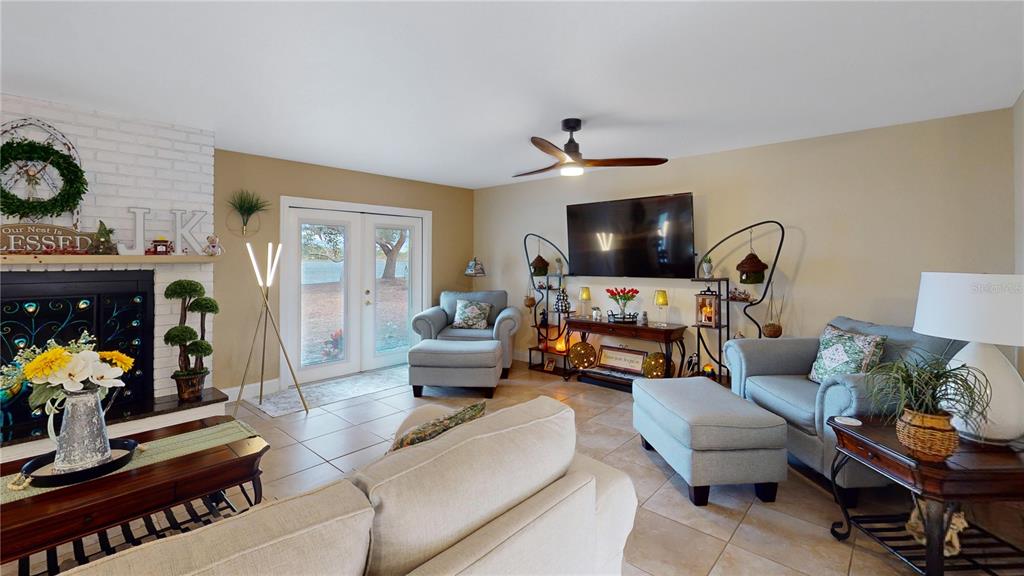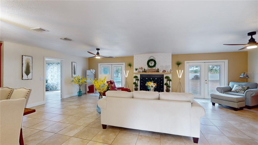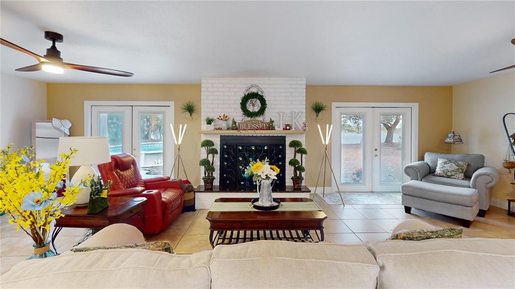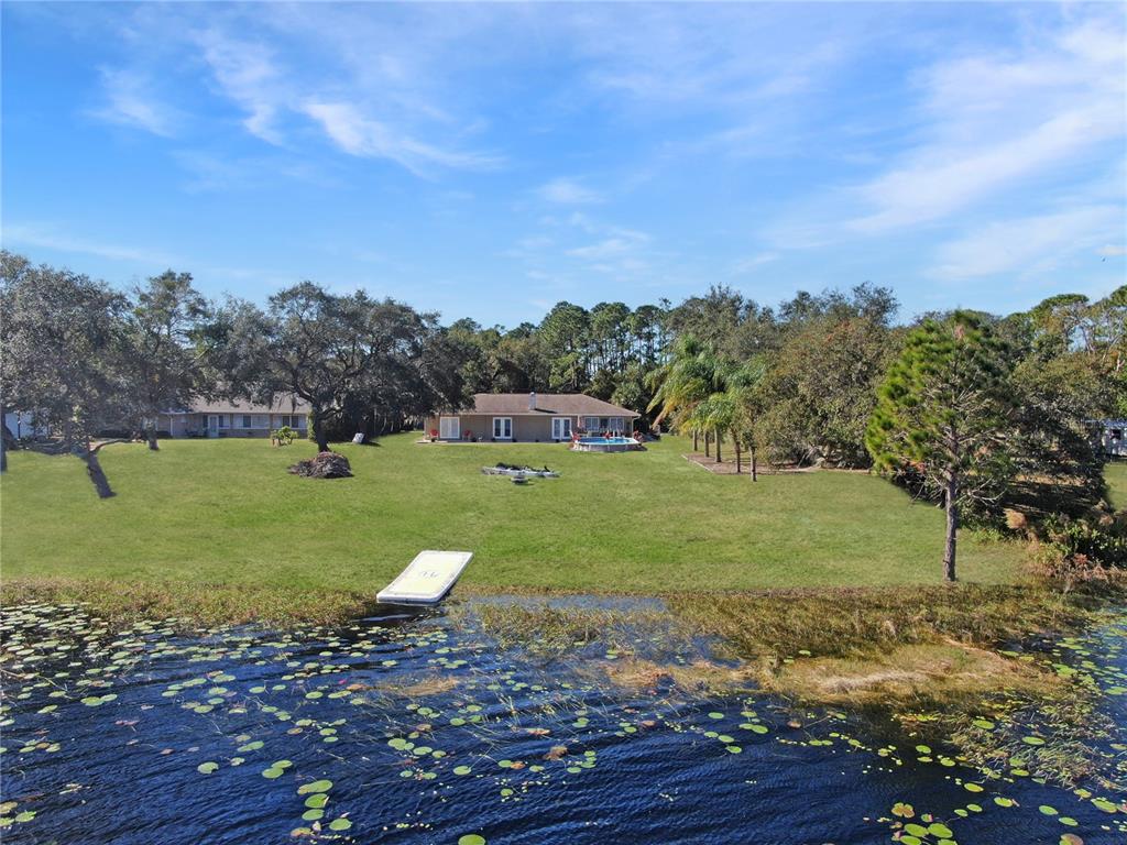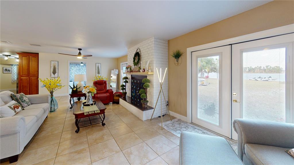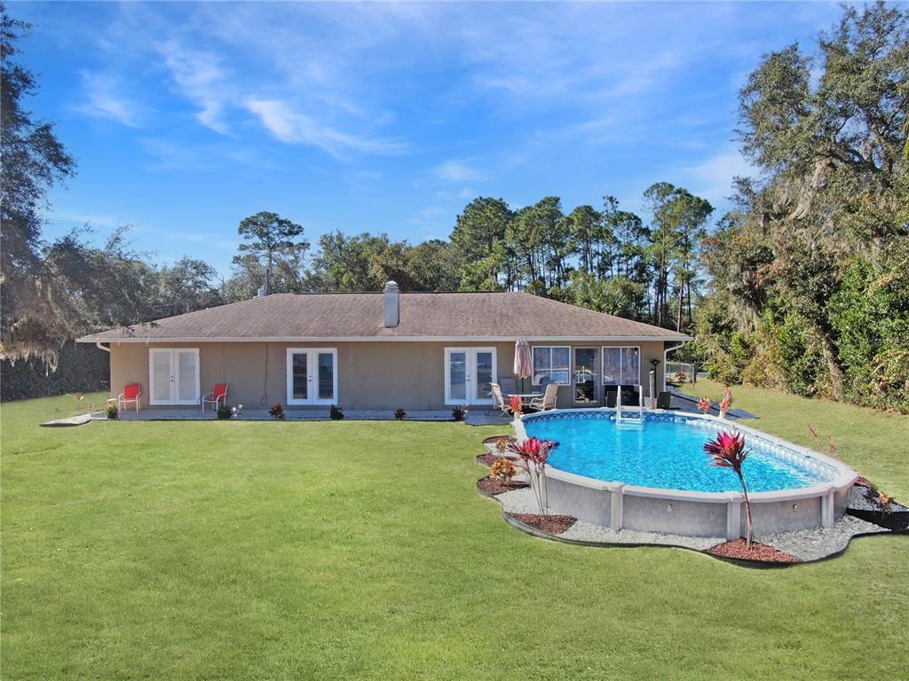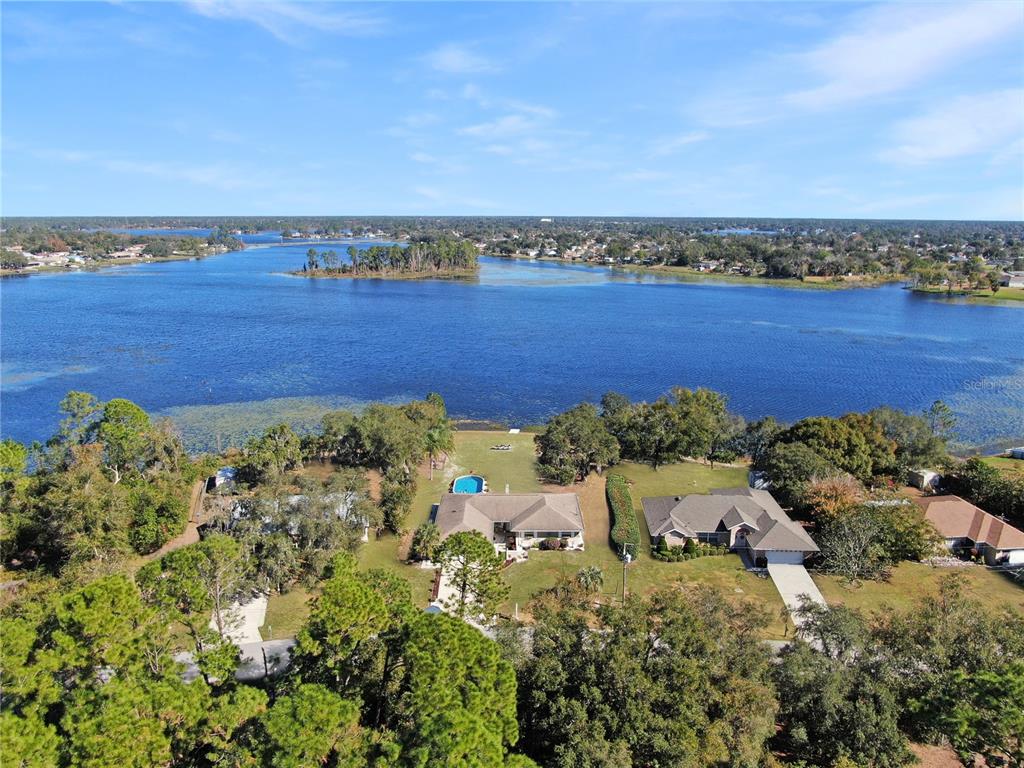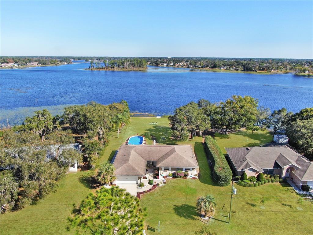 Not in a flood zone! no hoa! stunning panoramic lake views! this immaculate 3-bedroom, 2-bath pool home is nestled on over 1/2 an acre in the highly desirable deltona lakes community. boasting modern updates, a spacious layout, and breathtaking scenery, this property is a rare find. key features include: 2019 roof & 2022 electrical panel for peace of mind. ceramic tile flooring throughout the entire home.a beautifully updated kitchen with granite countertops, 36 - inch soft-close cabinetry, and stainless steel appliances and heated pool. the great room is a true showstopper, featuring picturesque lake views, a cozy wood-burning fireplace, and two sets of double french doors that open to the backyard oasis.. the primary suite features double french doors that open to serene lake views, a spacious wall-to-wall closet, granite countertops, and a walk-in tile shower. two generously sized guest bedrooms share a beautifully updated bathroom with granite counters, shower/tub combo with stylish tile backsplash. bonus spaces include a sunroom perfect for an office or potential 4th bedroom. outdoors, enjoy sunny days in the sparkling pool or on the lake fishing, kayaking, or simply relaxing. additional highlights: electric pool heater, solar pool cover, inflatable floating dock, and a brand-new pool ladder, fire pit, solar pool skimmer and chargeable floor/wall vacuum, washer/dryer, and appliances (all convey). recent upgrades: landscaping, ceiling fans, light fixtures, garage opener with keypad, mailbox, chimney cover, and two storm doors. plenty of room for rv/boat parking. conveniently located near shopping, restaurants, schools, parks, and more. this home combines modern comforts with endless possibilities for relaxation and recreation. don't miss the chance to make it yours! all measurements are approximate. all information provided is deemed reliable, but is not guaranteed and should be independently verified.2032 DUMAS, DELTONA, FL 32738
