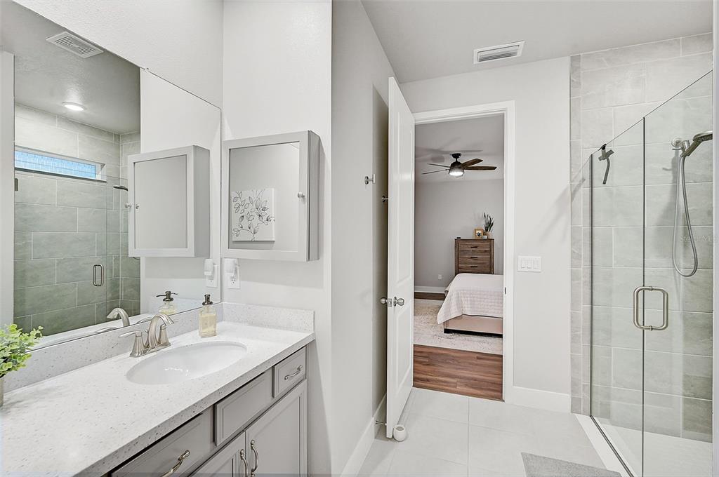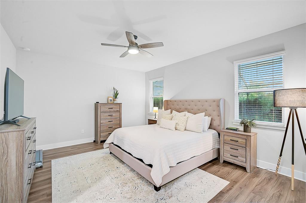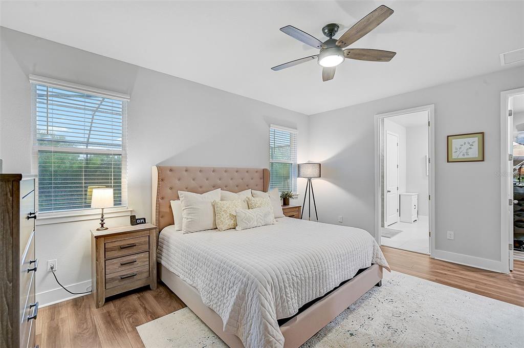 the master suite is a tranquil retreat with french doors, natural light-filled windows, and a spacious walk-in closet. the spa-like master bath features an oversized euro walk-in shower with custom tile, a dual-sink vanity, and a private water closet.