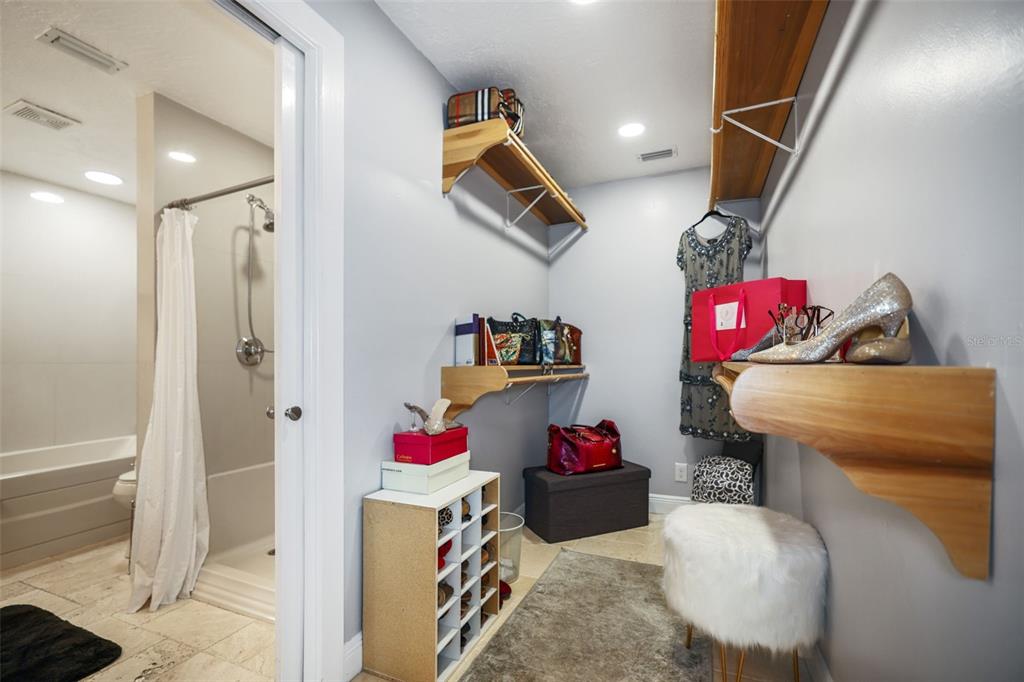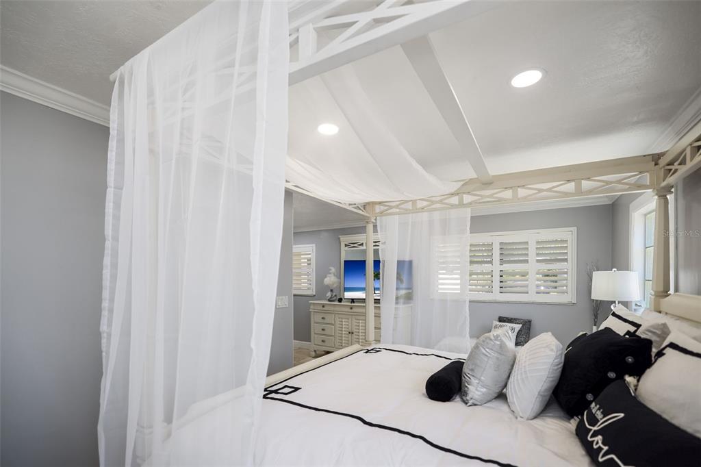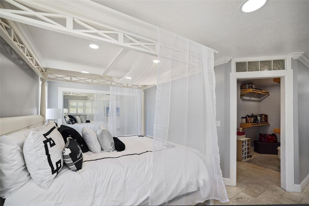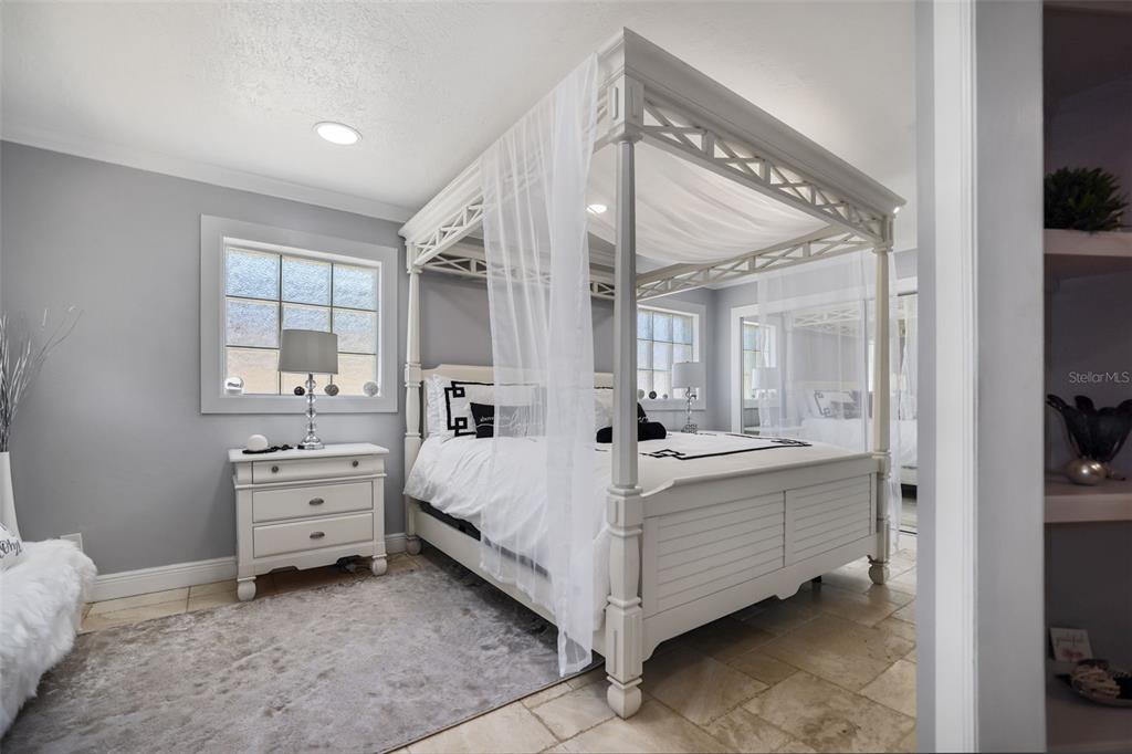 Walk-In Closet(s)Ceiling Fan(s) Stone Counters Window Treatments Solid Wood CabinetsCrown Molding Primary Bedroom Main FloorExterior Features: