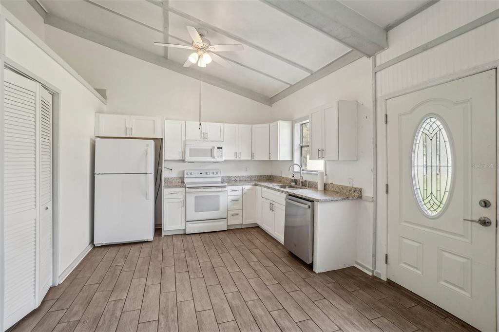 Vaulted Ceiling(s)Ceiling Fan(s) High Ceilings Thermostat Open FloorplanExterior Features: