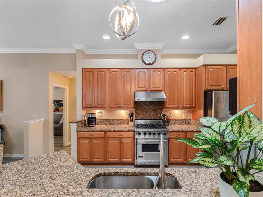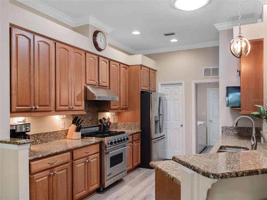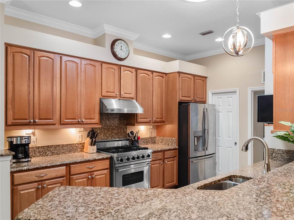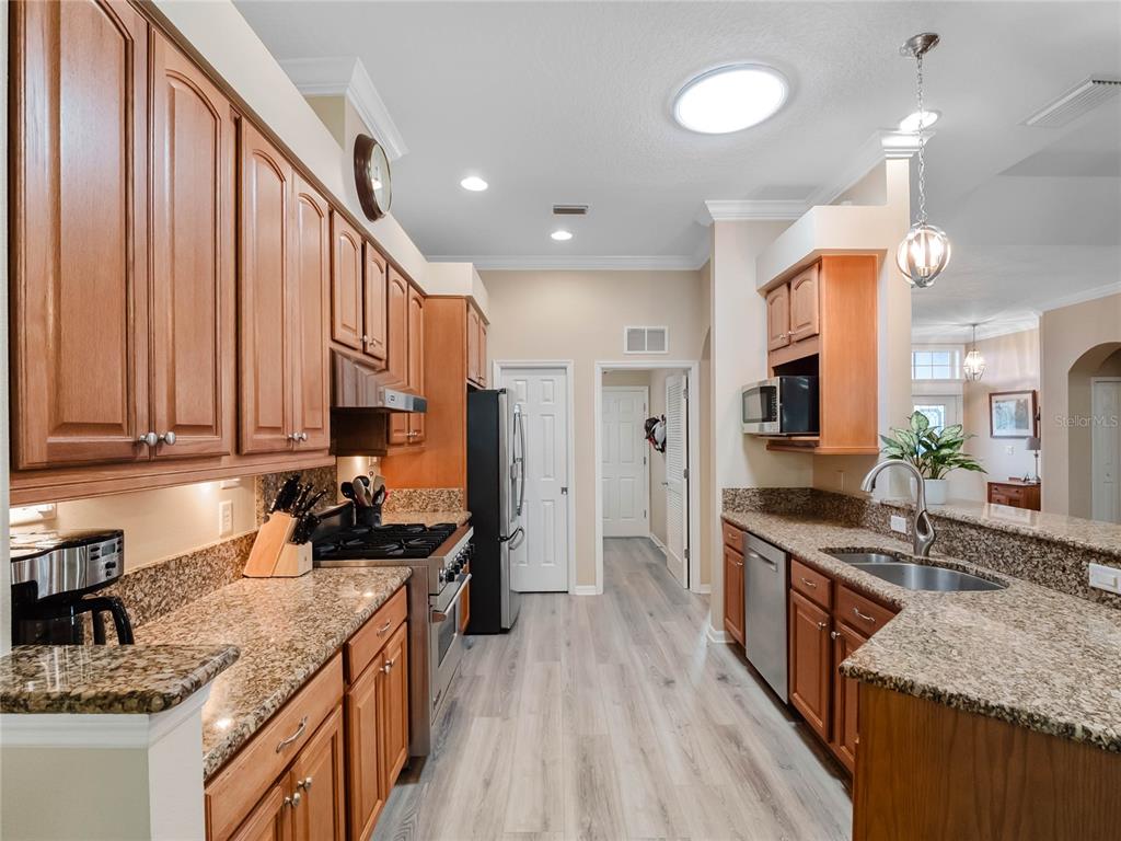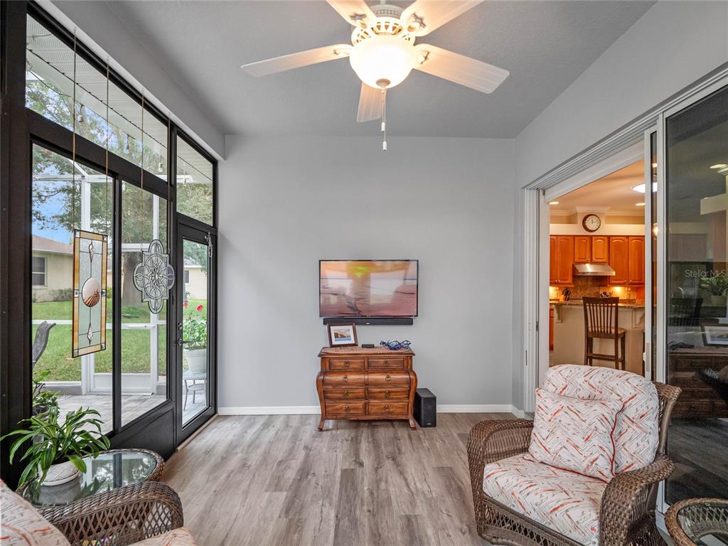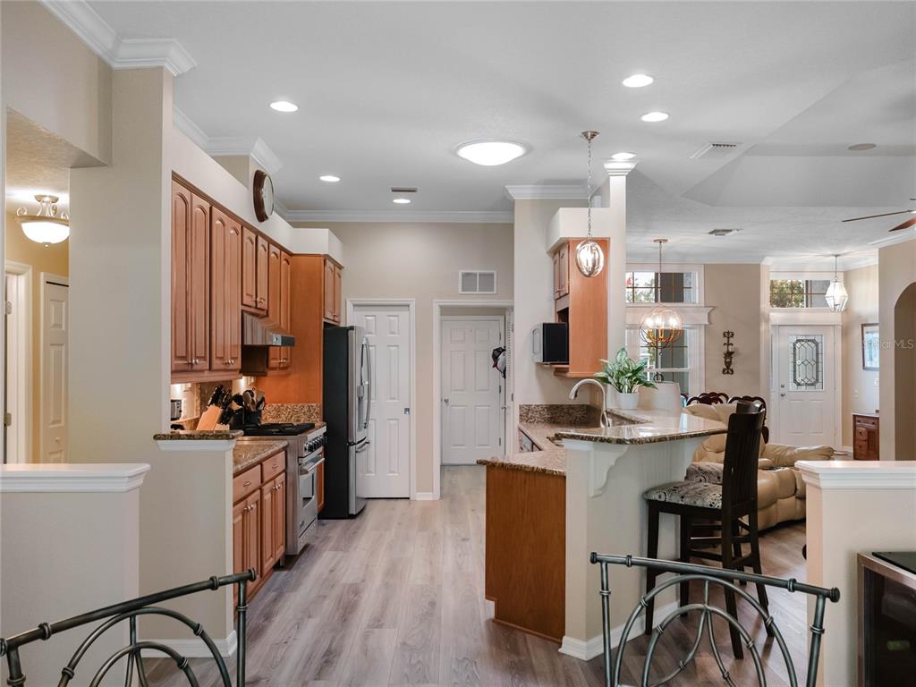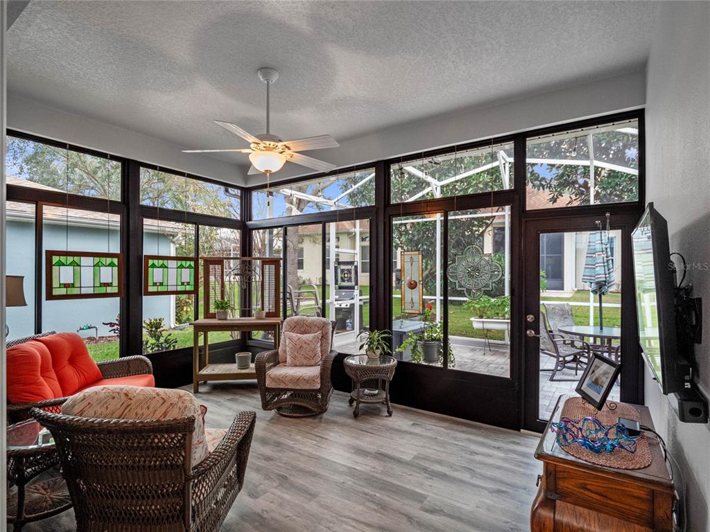 One or more photo(s) has been virtually staged. step inside this gorgeous regent model with both, florida room and screened lanai! as you drive up to this block and stucco home, you’ll see the attention to details on the exterior. freshly painted, well maintained, lush landscaping, screened entry porch, and the epitome of luxury florida living! the interior has been considered from floor to ceiling. luxury vinyl plank flooring throughout, as well as crown molding and tray ceilings! the dining area offers updated lighting and you’ll love the plantation shutters in all three bedrooms! the kitchen has an amazing viking gas range, stainless steel appliance package, pantry, pull-outs, 42” upper cabinets, accent lighting, granite countertops, and wood cabinets. the guest area gives visitors a cottage charm and welcoming vibe thanks to the beadboard cabinet fronts and high-end cambria quartz counters. the primary suite puts this home over the top with its cambria quartz counters, walk-in roman shower with coastal glass tile accents, double vanity, walk-in closet, and high ceilings. this split bedroom floor plan has solar skylights that allow tons of natural light throughout the main living area, casual and formal dining areas, and inside laundry with appliances that convey, and a huge florida room! create the oasis you’ve always dreamed of! there is nothing else to do to this home except move in! updated fans, lighting, paint, floors, transferable termite bond, fully irrigated and featuring a 2023 roof! hvac was updated in 2015, rear cage was screened in 2020, garage door was updated in 2023, and all windows were replaced in 2022. come enjoy 1939 square feet of living area, which includes the florida room and all under-air living spaces. royal highlands is an 18-hole championship golf community with a restaurant, pro shop, driving range and putting greens. the recreation center offers residents two pools, courts, library, craft and meeting rooms, kiln, and a fitness center. dance the night away at the great hall with theater stage and full stainless kitchen. this gated community has a low monthly hoa fee that includes cable and internet! close to mco, amusement parks, shopping, medical facilities and restaurants. call for your tour today!20744 QUEEN ALEXANDRA, LEESBURG, FL 34748