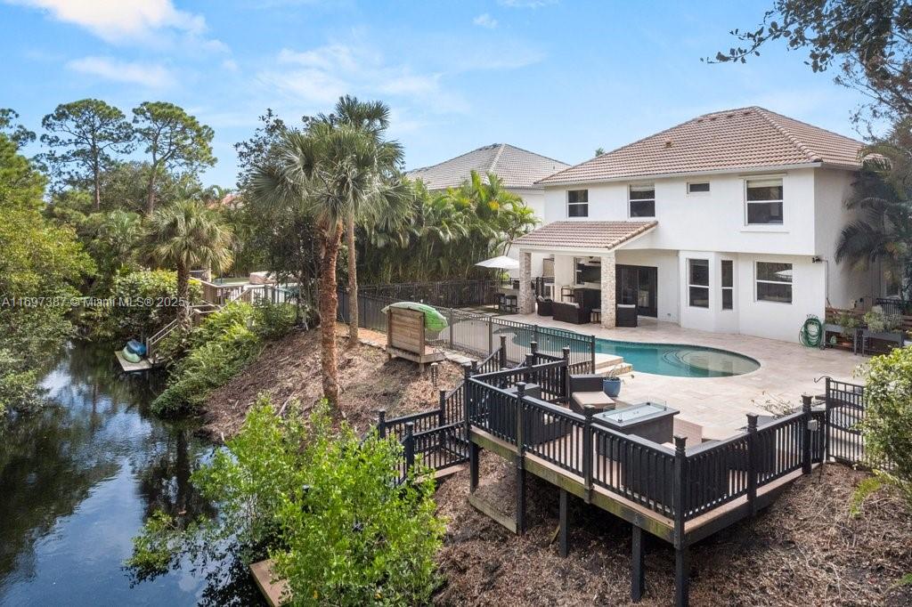 Set in a gated community with low hoa fees, this rarely available home is a peaceful retreat for nature lovers and fishing enthusiasts, with direct access to an intracoastal tidal canal and bird reserve. ideal for entertaining, the open floor plan includes two living rooms, two dining areas, and a gourmet kitchen with marble countertops and a gas stove. the spacious primary suite upstairs offers dual closets, a large shower, and a soaking tub with preserve views, while three additional bedrooms overlook the lake or preserve. outdoors, enjoy a deck, dock, saltwater pool, putting green, grill and bar area, lounge space, and fenced dog retreat, making this a true sanctuary.208 LONE PINE DR, PALM BEACH GARDENS, FL 33410