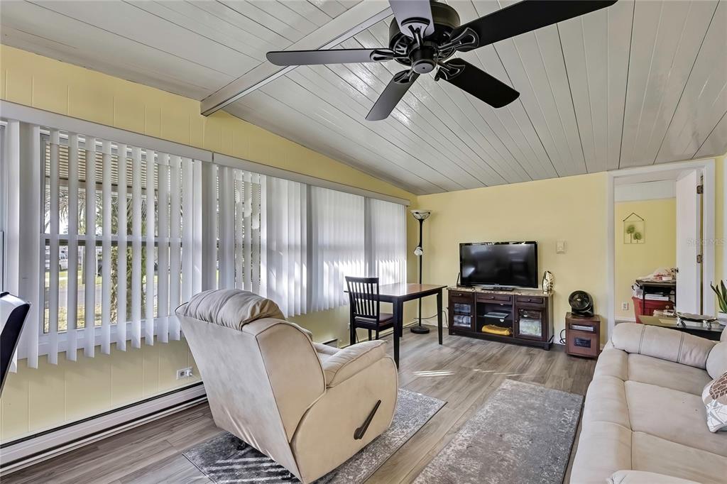 Come tour this clean and cute home. come discover the quiet living in this 55+ community of campers holiday. a very active community with a pool, shuffle board, weekend events or just peacful retirement. this mobile home boasts 2 additional large room add-on's with beautifully painted vinyl ceilings, newer windows, roof age of 2019, a new 3x5 storage shed, and outdoor paver patio area for afternoon bbq's. as you enter the home you will be greeted by the elegant vinyl flooring spread throughout the open living and dining area. this home has a 9.5 x 9.5 size master bedroom with a walk-in closet, a 2nd bedroom that can be used as a reading room, a den, or as guest quarters. windows in every room, allowing the natural sunlight shining within. the kitchen has plenty of cabinet and counter space, and just off to the right, two steps down you will enter into a 12 x 25 florida room, with plentyful vinyl windows, a built in bar, big screen tv and tons of room for entertaining your family and friends. take a peek inside as you slide the big barn door open to find the washer and dryer, tub sink and a 1/2 bath. plus a work bench area conveniently located under roof. the house includes furnishings and a covered one car carport. this home has been well maintained and is nicely located on a corner lot with mature landscaping. come take a tour and make this house you home today!2092 CULBREATH #A25, BROOKSVILLE, FL 34602