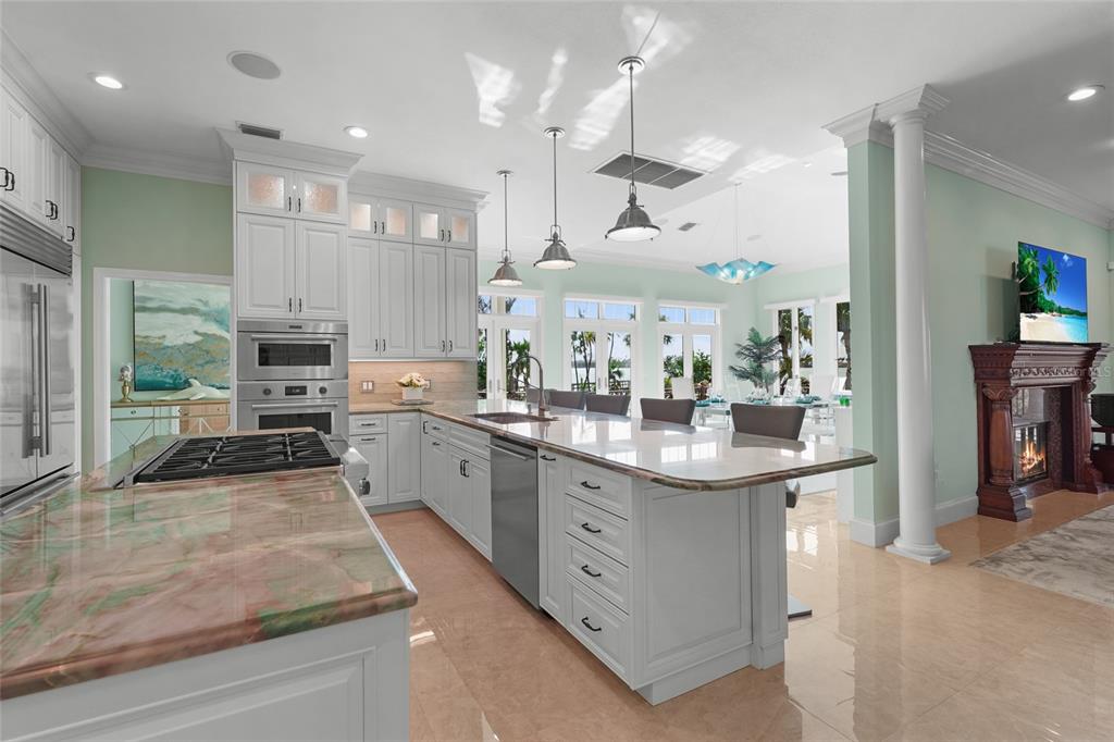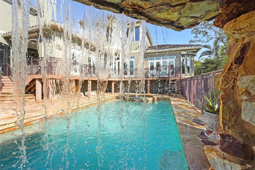 Blackburn bay waterfront, safe, secure and private... great location on the mainland, this home provides bay view entertainment of dolphins, manatees, fish jumping, and water activities.*historically safe, free of damages from past storms. elevated to the highest standards of 11feet above sea level with a new three car garage elevated at approx. 9.6 feet. * this home has been freshly remodeled, including an all new custom designer kitchen, open, bright, with high end cabinets, wolf gas range, oven, microwave, large latest model sub-zero refrigerator. new never used high-end cove dishwasher and 21.7 c.f. freezer still in its wrapper. kitchen surrounded with granite, custom lighting, great storage, lots of step saver convenient features, centered in the home with views overlooking the blackburn bay. *estimated at 6,000 square feet of heated living space. featuring two (2) master bedrooms:one on the main floor level with jacuzzi bathtub, shower and double sinks. the primary upstairs master is a suit with a large bathroom and designer closets, double vanities, and double size shower. instant hot water, towel warmers. a huge private deck. both master bedrooms have great bay views from even from their beds. also, the home has two (2) additional bedrooms all with full bathrooms and great views. guests are accessible to two (2) half bathrooms on the main floor plus a conveniently located office with visibility to incoming guests. *security systems include hard wiring for cameras. a lighting system designed to automatically turn on and off lights and ac systems for part-time use of the home or have normal control of all lightings. also equipped with a one-year old generac lp generator that can service the entire homes electrical system for weeks by a large underground lp tank. with four (4) in home and one (1) in the garage havc systems, the average monthly electric cost of the home has been approx. $302.62. the large 925 s.f. insulated garage has 10-foot-high ceilings and a metal roof ready for solar. also equipped with both a 120v & 240v electric vehicle receptors for charging. a 300-gallon water storage osmosis purification system services the entire home assuring safe and highest quality of water. *the living room, dining room and family room all with open views of the bay. the family room is equipped with a 16-foot-long wet bar, sink and double tv’s. off the family room is a large screened in patio with a built in bbq, fireplace all overlooking the pool, water fall, bay and deep-water boat dock. *the older boat dock was originally scheduled for replacement in 2025. the new dock has been ordered and expected in april or may 2025 which will be equipped with a 14,000 lb. boat lift, two new jet ski lifts, built with long lasting composite trex decking. *enter through the private security gates with lychee fruit trees lining the new blacktop road. this 0.58-acre very private property and home is part of a three-home community hoa with no monthly dues. don’t miss out on this home…call for a private tour.2115 LYCHEE, NOKOMIS, FL 34275