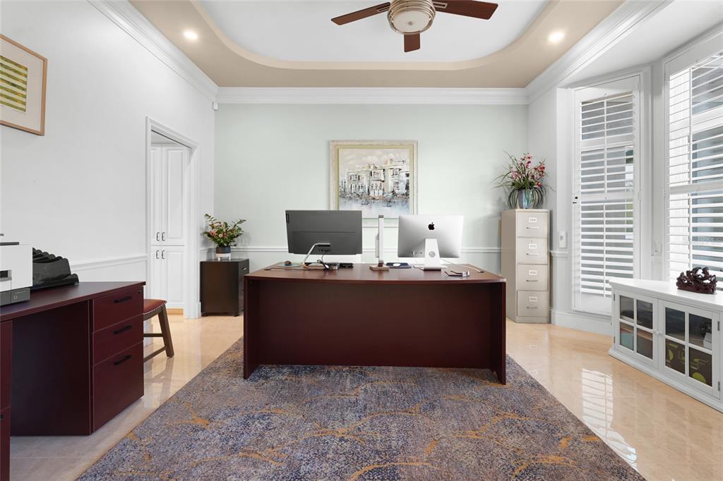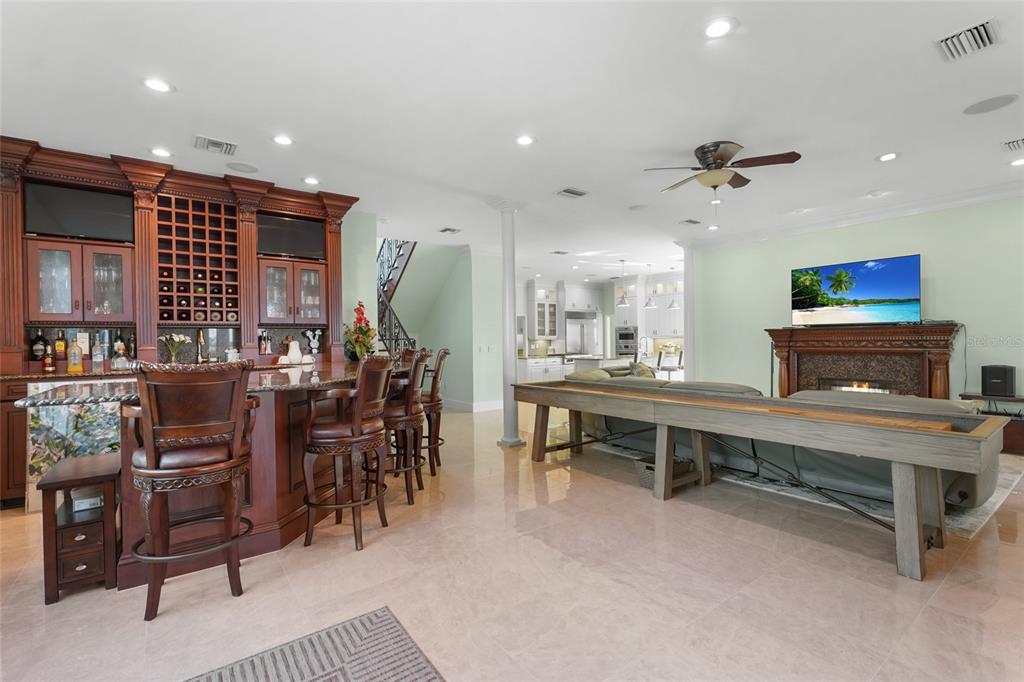 Wet Bar Walk-In Closet(s)Ceiling Fan(s) Eating Space In Kitchen Stone Counters Thermostat Open Floorplan Solid Surface Counters Solid Wood CabinetsCrown MoldingExterior Features: