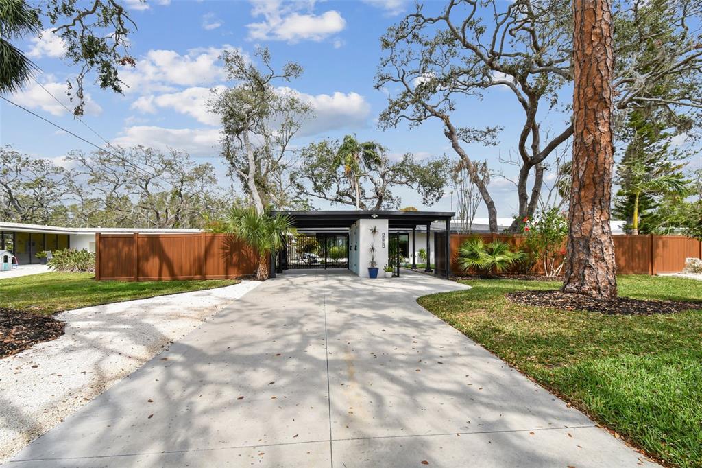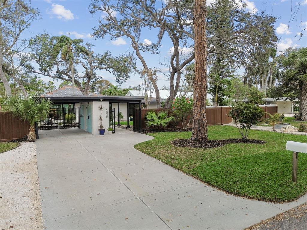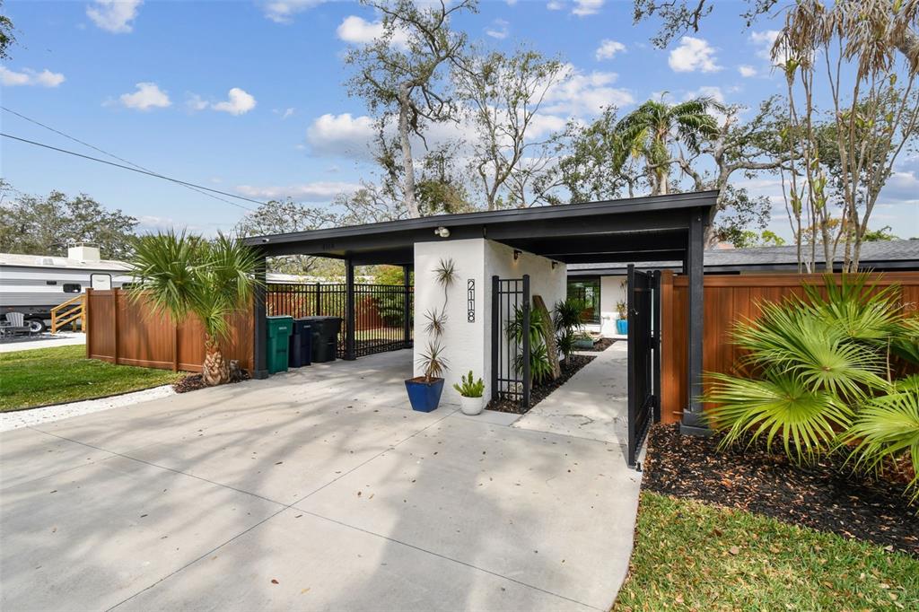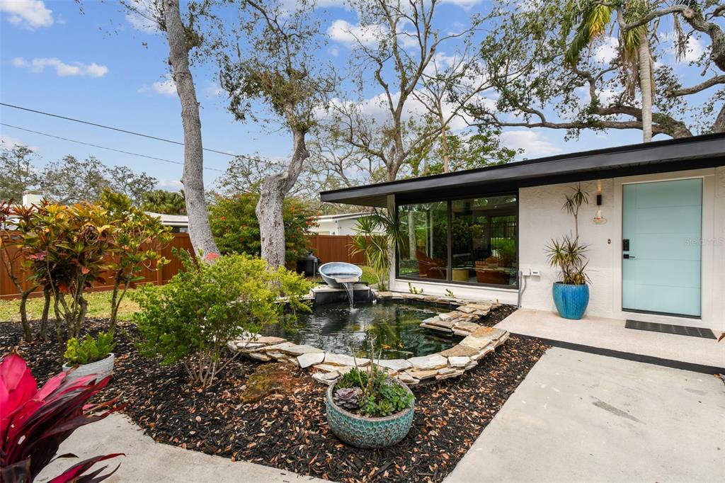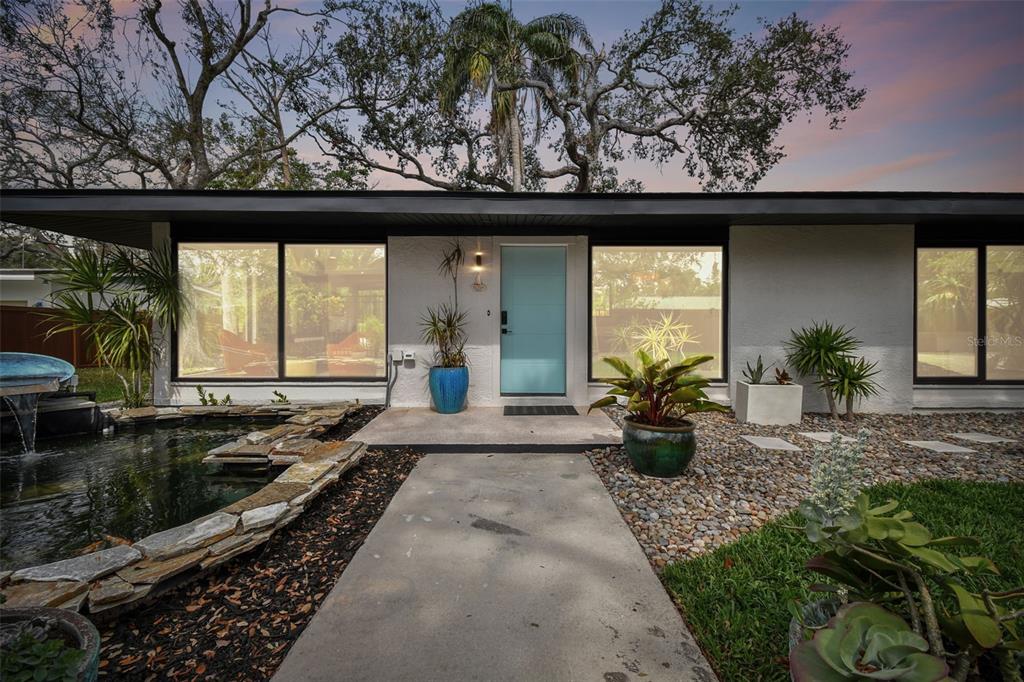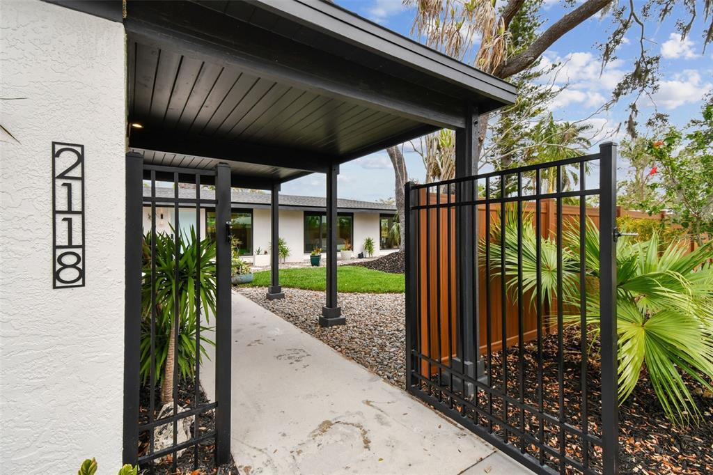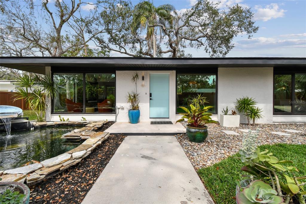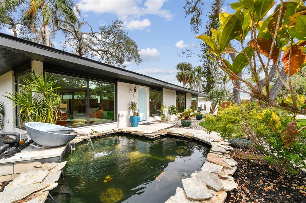Welcome to "palm etto", a fully restored florida mid-century modern masterpiece in palmetto’s desirable river district, designed by renowned architect richard haskell slater. this 2-bedroom,2-bath home, transformed in 2023/2024, seamlessly blends timeless design with modern luxury and lives larger than its footprint. step through the gated entry, where a cascading water fountain and koi-filled pond create an instant sense of tranquility. enjoy your morning coffee in “koi korner,” a peaceful southwest-facing nook, watching fish play and lily pad flowers bloom. true to its mid-century roots, floor-to-ceiling hurricane-rated impact glass with motorized shades merges indoor and outdoor living, while architectural surprises delight throughout. original pecky cypress accents highlight the great room wall and two interior barn doors. the vaulted ceiling in the extended great room enhances the airy feel. currently styled as a workspace, this flexible space could serve as a second dining or game room. wide-plank neutral tile and a black, white, and natural palette create a cohesive, modern aesthetic. the kitchen features soft-close cabinetry, three lazy susans, a built-in waste/recycling station,and a large fireclay farmhouse sink. new samsung bespoke white glass appliances (2024) are at its heart, including a gas multi-function range and whisper-quiet dishwasher. an under-sink reverse-osmosis system provides crystal-clear water. the adjacent laundry/pantry offers abundant storage and a large utility tub. the oversized primary suite, created by combining two former bedrooms, is a luxurious retreat with space for a sitting area, a king-sized bed and more. the custom walk-in closet offers ample storage, while the spa-inspired ensuite boasts a soaking tub and dual shower. a new vanity adds storage and a glass-paned door leads directly to the pool. the second bedroom features a charming alcove, a private pool door, and an oversized window showcasing swaying palms and the pool. step outside to a custom saltwater pool (2023) with a sun ledge, twin fountains, a fire bowl, and a dazzling multi-function light show, all framed by a travertine deck. a secondary paver terrace off the living room slider expands your entertaining options.the lush, tropical landscaping consisting of a mix of hard and soft scaping, accented by a raised planter capable of holding over 40 large potted plants, enhances privacy while remaining surprisingly low-maintenance. this fully fenced double lot offers space for a tiki bar, meditation area, and boat or rv parking. key features & upgrades: - carport with storage (rebuilt 2020, convertible to a garage) - aluminum & vinyl fencing (2023/2024) - tankless water heater (2023) - 500-gallon in-ground propane tank - new insulation (2024) - new hvac system (2024) - new 5-point compliant roof (2024) - whole-home water softener riverside park offers a nostalgic, family-friendly atmosphere, with children playing and even a few chickens clucking! a public boat ramp just over a mile away provides easy access to the manatee river and gulf of mexico. with no hoa or cdd restrictions, "palm etto" is more than just a home—it’s a private oasis, ready for your dreams. schedule your showing today and experience the serenity and charm for yourself!2118 7TH W, PALMETTO, FL 34221