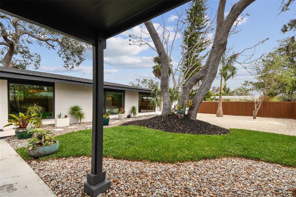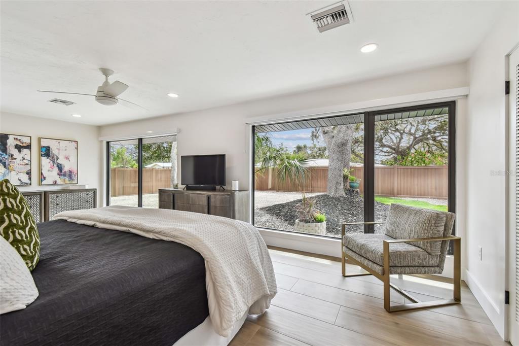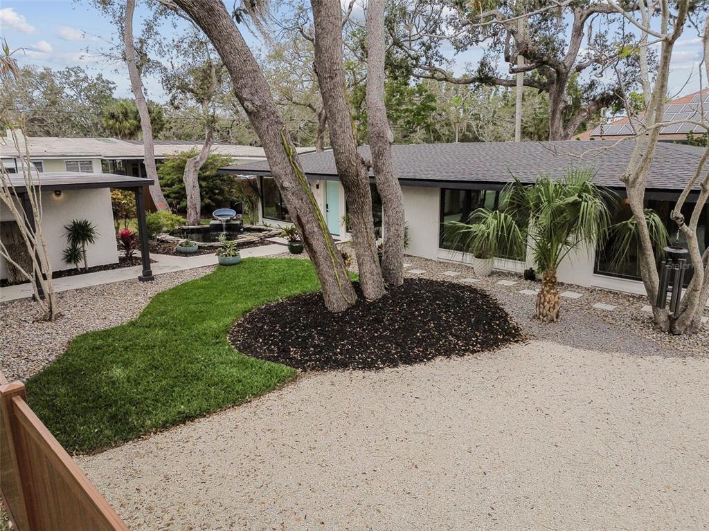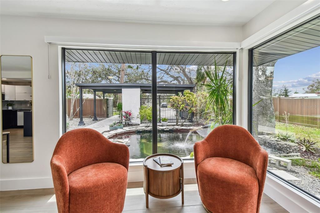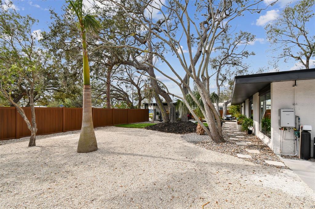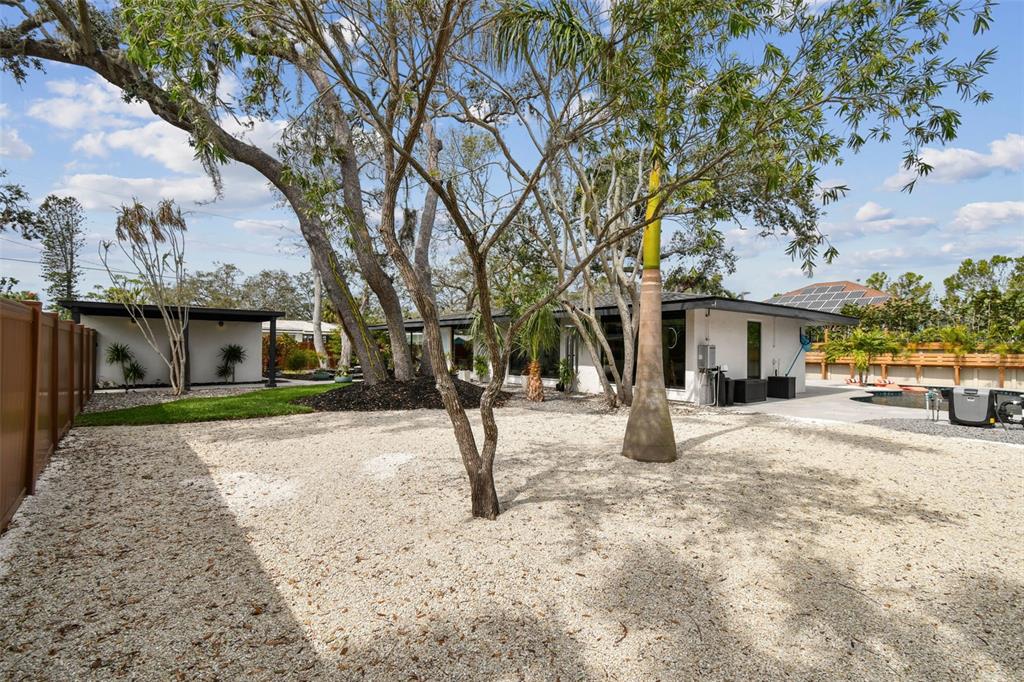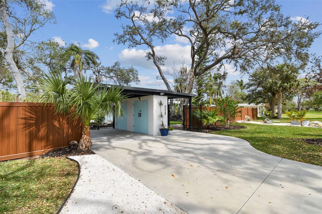 Welcome to "palm etto", a fully restored florida mid-century modern masterpiece in palmetto’s desirable river district, designed by renowned architect richard haskell slater. this 2-bedroom,2-bath home, transformed in 2023/2024, seamlessly blends timeless design with modern luxury and lives larger than its footprint. step through the gated entry, where a cascading water fountain and koi-filled pond create an instant sense of tranquility. enjoy your morning coffee in “koi korner,” a peaceful southwest-facing nook, watching fish play and lily pad flowers bloom. true to its mid-century roots, floor-to-ceiling hurricane-rated impact glass with motorized shades merges indoor and outdoor living, while architectural surprises delight throughout. original pecky cypress accents highlight the great room wall and two interior barn doors. the vaulted ceiling in the extended great room enhances the airy feel. currently styled as a workspace, this flexible space could serve as a second dining or game room. wide-plank neutral tile and a black, white, and natural palette create a cohesive, modern aesthetic. the kitchen features soft-close cabinetry, three lazy susans, a built-in waste/recycling station,and a large fireclay farmhouse sink. new samsung bespoke white glass appliances (2024) are at its heart, including a gas multi-function range and whisper-quiet dishwasher. an under-sink reverse-osmosis system provides crystal-clear water. the adjacent laundry/pantry offers abundant storage and a large utility tub. the oversized primary suite, created by combining two former bedrooms, is a luxurious retreat with space for a sitting area, a king-sized bed and more. the custom walk-in closet offers ample storage, while the spa-inspired ensuite boasts a soaking tub and dual shower. a new vanity adds storage and a glass-paned door leads directly to the pool. the second bedroom features a charming alcove, a private pool door, and an oversized window showcasing swaying palms and the pool. step outside to a custom saltwater pool (2023) with a sun ledge, twin fountains, a fire bowl, and a dazzling multi-function light show, all framed by a travertine deck. a secondary paver terrace off the living room slider expands your entertaining options.the lush, tropical landscaping consisting of a mix of hard and soft scaping, accented by a raised planter capable of holding over 40 large potted plants, enhances privacy while remaining surprisingly low-maintenance. this fully fenced double lot offers space for a tiki bar, meditation area, and boat or rv parking. key features & upgrades: - carport with storage (rebuilt 2020, convertible to a garage) - aluminum & vinyl fencing (2023/2024) - tankless water heater (2023) - 500-gallon in-ground propane tank - new insulation (2024) - new hvac system (2024) - new 5-point compliant roof (2024) - whole-home water softener riverside park offers a nostalgic, family-friendly atmosphere, with children playing and even a few chickens clucking! a public boat ramp just over a mile away provides easy access to the manatee river and gulf of mexico. with no hoa or cdd restrictions, "palm etto" is more than just a home—it’s a private oasis, ready for your dreams. schedule your showing today and experience the serenity and charm for yourself!2118 7TH W, PALMETTO, FL 34221