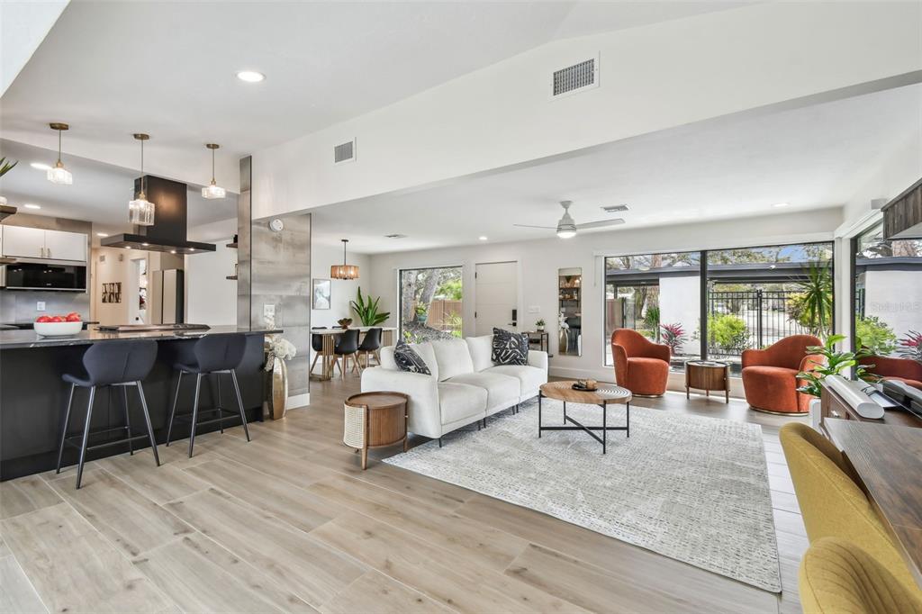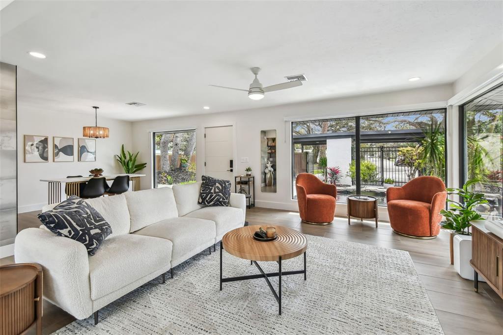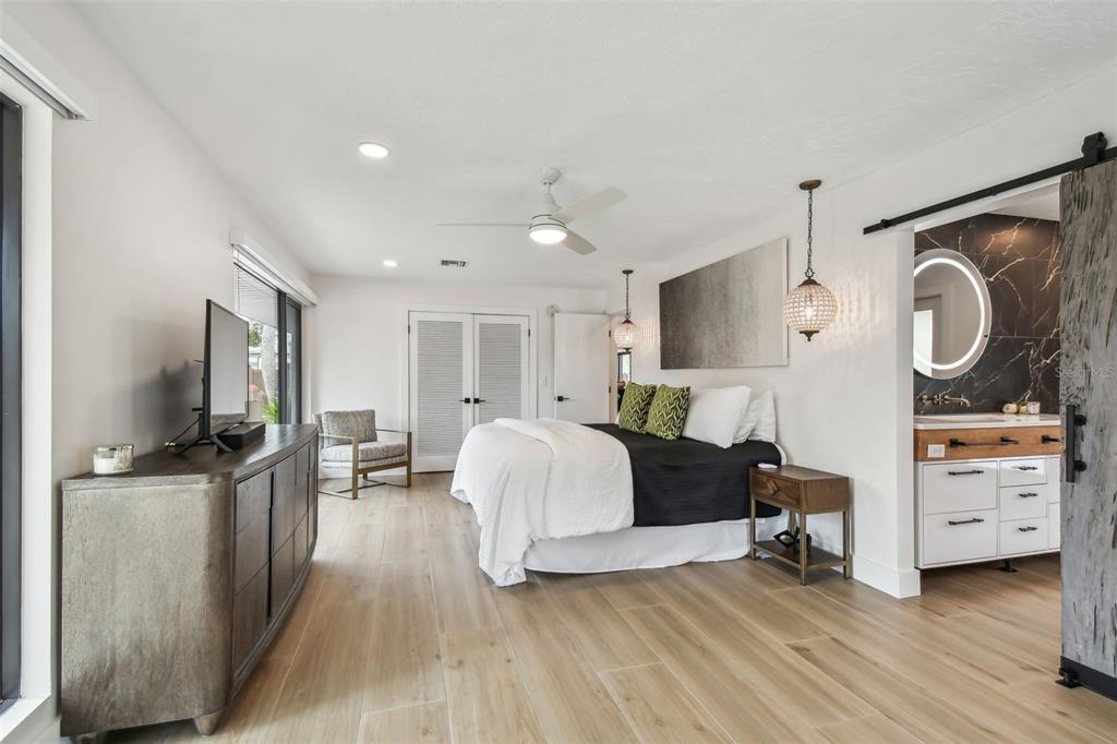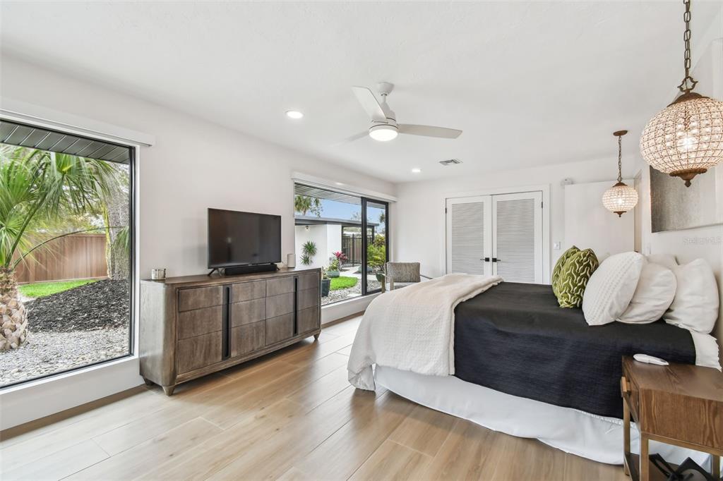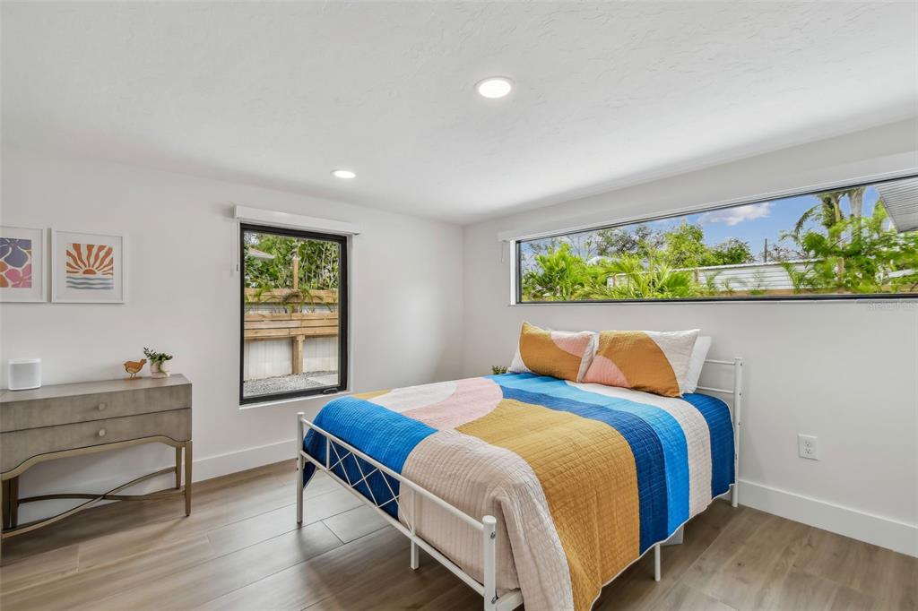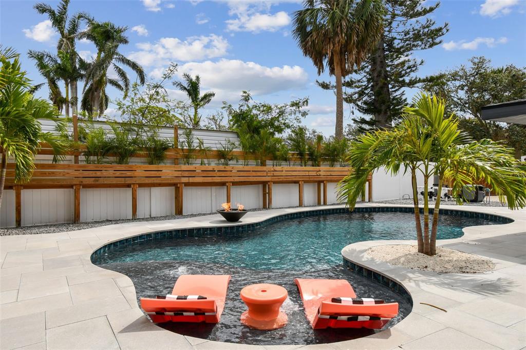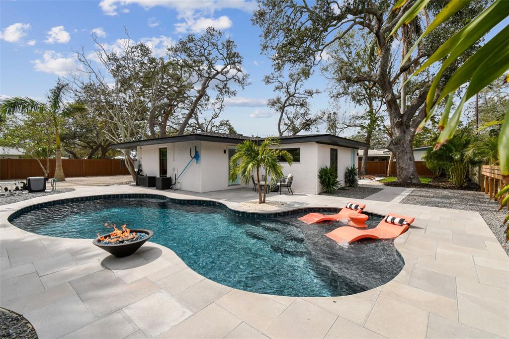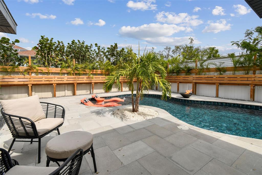 Welcome to "palm etto", a fully restored florida mid-century modern masterpiece in palmetto’s desirable river district, designed by renowned architect richard haskell slater. this 2-bedroom,2-bath home, transformed in 2023/2024, seamlessly blends timeless design with modern luxury and lives larger than its footprint. step through the gated entry, where a cascading water fountain and koi-filled pond create an instant sense of tranquility. enjoy your morning coffee in “koi korner,” a peaceful southwest-facing nook, watching fish play and lily pad flowers bloom. true to its mid-century roots, floor-to-ceiling hurricane-rated impact glass with motorized shades merges indoor and outdoor living, while architectural surprises delight throughout. original pecky cypress accents highlight the great room wall and two interior barn doors. the vaulted ceiling in the extended great room enhances the airy feel. currently styled as a workspace, this flexible space could serve as a second dining or game room. wide-plank neutral tile and a black, white, and natural palette create a cohesive, modern aesthetic. the kitchen features soft-close cabinetry, three lazy susans, a built-in waste/recycling station,and a large fireclay farmhouse sink. new samsung bespoke white glass appliances (2024) are at its heart, including a gas multi-function range and whisper-quiet dishwasher. an under-sink reverse-osmosis system provides crystal-clear water. the adjacent laundry/pantry offers abundant storage and a large utility tub. the oversized primary suite, created by combining two former bedrooms, is a luxurious retreat with space for a sitting area, a king-sized bed and more. the custom walk-in closet offers ample storage, while the spa-inspired ensuite boasts a soaking tub and dual shower. a new vanity adds storage and a glass-paned door leads directly to the pool. the second bedroom features a charming alcove, a private pool door, and an oversized window showcasing swaying palms and the pool. step outside to a custom saltwater pool (2023) with a sun ledge, twin fountains, a fire bowl, and a dazzling multi-function light show, all framed by a travertine deck. a secondary paver terrace off the living room slider expands your entertaining options.the lush, tropical landscaping consisting of a mix of hard and soft scaping, accented by a raised planter capable of holding over 40 large potted plants, enhances privacy while remaining surprisingly low-maintenance. this fully fenced double lot offers space for a tiki bar, meditation area, and boat or rv parking. key features & upgrades: - carport with storage (rebuilt 2020, convertible to a garage) - aluminum & vinyl fencing (2023/2024) - tankless water heater (2023) - 500-gallon in-ground propane tank - new insulation (2024) - new hvac system (2024) - new 5-point compliant roof (2024) - whole-home water softener riverside park offers a nostalgic, family-friendly atmosphere, with children playing and even a few chickens clucking! a public boat ramp just over a mile away provides easy access to the manatee river and gulf of mexico. with no hoa or cdd restrictions, "palm etto" is more than just a home—it’s a private oasis, ready for your dreams. schedule your showing today and experience the serenity and charm for yourself!2118 7TH W, PALMETTO, FL 34221