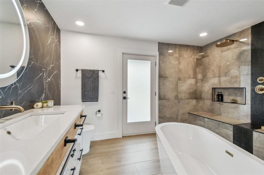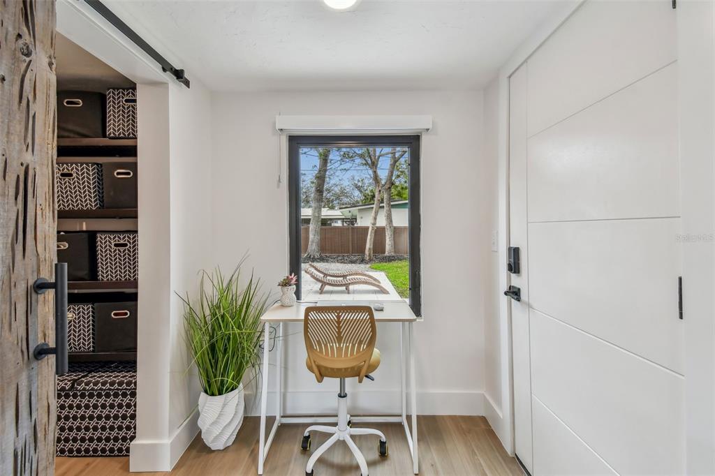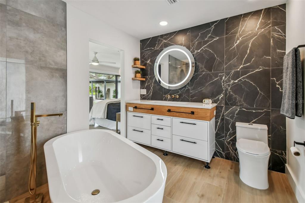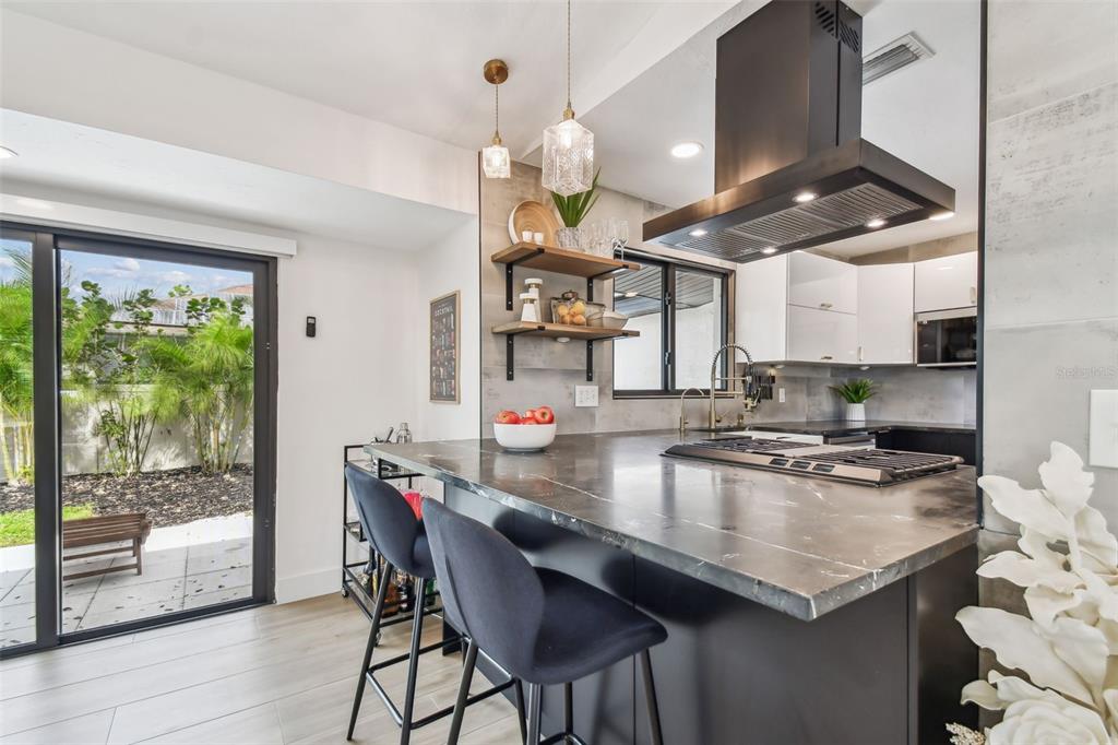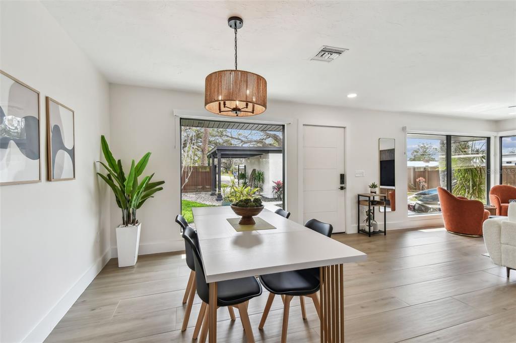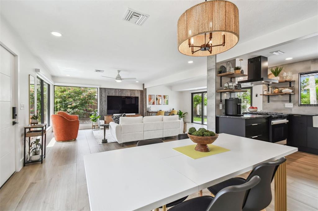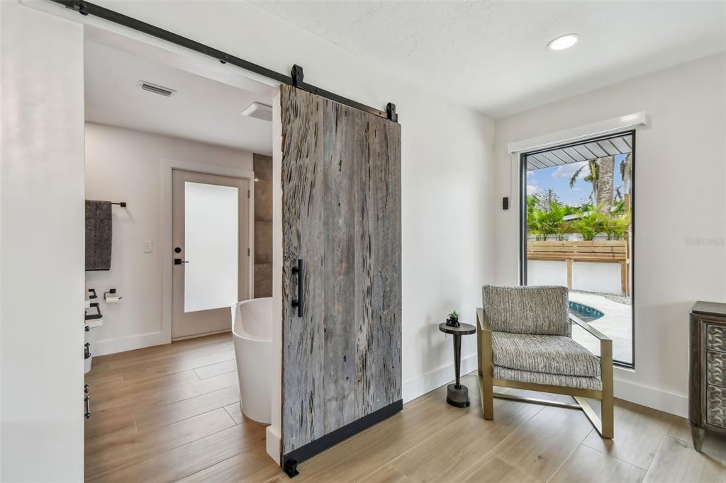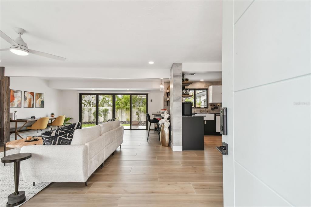 Welcome to "palm etto", a fully restored florida mid-century modern masterpiece in palmetto’s desirable river district, designed by renowned architect richard haskell slater. this 2-bedroom,2-bath home, transformed in 2023/2024, seamlessly blends timeless design with modern luxury and lives larger than its footprint. step through the gated entry, where a cascading water fountain and koi-filled pond create an instant sense of tranquility. enjoy your morning coffee in “koi korner,” a peaceful southwest-facing nook, watching fish play and lily pad flowers bloom. true to its mid-century roots, floor-to-ceiling hurricane-rated impact glass with motorized shades merges indoor and outdoor living, while architectural surprises delight throughout. original pecky cypress accents highlight the great room wall and two interior barn doors. the vaulted ceiling in the extended great room enhances the airy feel. currently styled as a workspace, this flexible space could serve as a second dining or game room. wide-plank neutral tile and a black, white, and natural palette create a cohesive, modern aesthetic. the kitchen features soft-close cabinetry, three lazy susans, a built-in waste/recycling station,and a large fireclay farmhouse sink. new samsung bespoke white glass appliances (2024) are at its heart, including a gas multi-function range and whisper-quiet dishwasher. an under-sink reverse-osmosis system provides crystal-clear water. the adjacent laundry/pantry offers abundant storage and a large utility tub. the oversized primary suite, created by combining two former bedrooms, is a luxurious retreat with space for a sitting area, a king-sized bed and more. the custom walk-in closet offers ample storage, while the spa-inspired ensuite boasts a soaking tub and dual shower. a new vanity adds storage and a glass-paned door leads directly to the pool. the second bedroom features a charming alcove, a private pool door, and an oversized window showcasing swaying palms and the pool. step outside to a custom saltwater pool (2023) with a sun ledge, twin fountains, a fire bowl, and a dazzling multi-function light show, all framed by a travertine deck. a secondary paver terrace off the living room slider expands your entertaining options.the lush, tropical landscaping consisting of a mix of hard and soft scaping, accented by a raised planter capable of holding over 40 large potted plants, enhances privacy while remaining surprisingly low-maintenance. this fully fenced double lot offers space for a tiki bar, meditation area, and boat or rv parking. key features & upgrades: - carport with storage (rebuilt 2020, convertible to a garage) - aluminum & vinyl fencing (2023/2024) - tankless water heater (2023) - 500-gallon in-ground propane tank - new insulation (2024) - new hvac system (2024) - new 5-point compliant roof (2024) - whole-home water softener riverside park offers a nostalgic, family-friendly atmosphere, with children playing and even a few chickens clucking! a public boat ramp just over a mile away provides easy access to the manatee river and gulf of mexico. with no hoa or cdd restrictions, "palm etto" is more than just a home—it’s a private oasis, ready for your dreams. schedule your showing today and experience the serenity and charm for yourself!2118 7TH W, PALMETTO, FL 34221