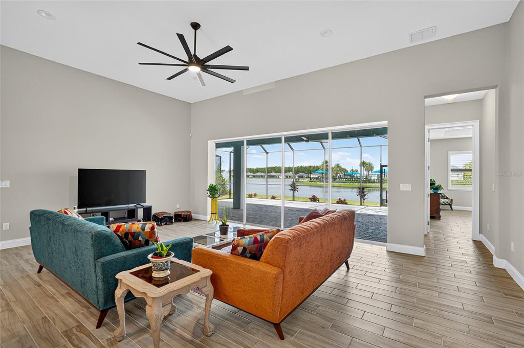 Rare 4-car garage large enough to store a small boat and trailer (third stall is tandem)! lakefront lot, two ada-compliant showers, 2023 block construction, in-law floor plan, 34x25' extended paver screened lanai, and so much more. tandem stall is 36 feet deep for your toys, large truck, boat or trailer, extra vehicles, or just extra storage space! the marlin floor plan is extremely unique and functional with 4 large bedrooms, 3 full bathrooms, super open floor plan with an open kitchen/dining/living setup and disappearing quadruple pocket sliders showcasing the gorgeous, expanded lake views. private guest suite is in the front of the home opposite the primary and has a full bathroom. primary bedroom has excellent size (17x15'), is in the rear of the home and has direct views of the water. primary bathroom is large with dual sinks, walk-in shower, separate water closet, and opens to a large walk-in closet that opens to the inside laundry. laundry room is super functional and can be accessed from the main living area, the primary suite or the garage. this home is sprinkled with gorgeous accents everywhere you look including ceramic tile throughout (no carpet!), plantation shutters throughout, tiled backsplash, stainless steel appliances, extra tall decorative interior doors, and all rounded edges throughout. the exterior of the home is just as gorgeous and extremely well-maintained with a grand entry walkup, whole home gutter system, fully landscaped, and extended screened lanai. built by adley homes, this home showcases core foam injected concrete block construction, the zip roof decking system, and some of the highest standards in the industry. situated off the main road but still conveniently close to amenities, you'll have no problem with traffic at 212 fuchsia. this home was built with two handicap accessible showers and sliding glass door with a low-profile track that sits nearly flush with the flooring for a smooth indoor/outdoor transition. mosaic is a new development in daytona beach, florida that offers resort-style amenities with an extremely low hoa fee of only 120 dollars per month. amenities include: all ages pool, adult pool, community/club house, fitness center, fishing dock overlooking 18-acre lake mosaic, miles of walking trails, outdoor amphitheater, park, playground, and many regularly scheduled community events. zoned for volusia county school district. this home is not in a flood zone. all information and room sizes in this listing are intended to be accurate but cannot be guaranteed. buyers and agents are always encouraged to perform due diligence.212 FUCHSIA, DAYTONA BEACH, FL 32124