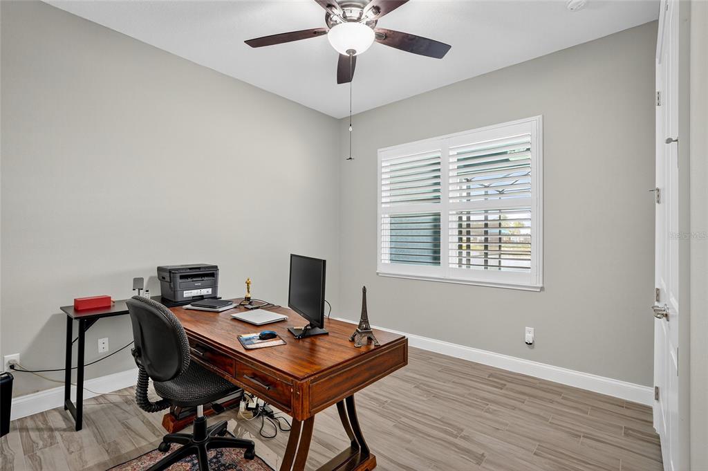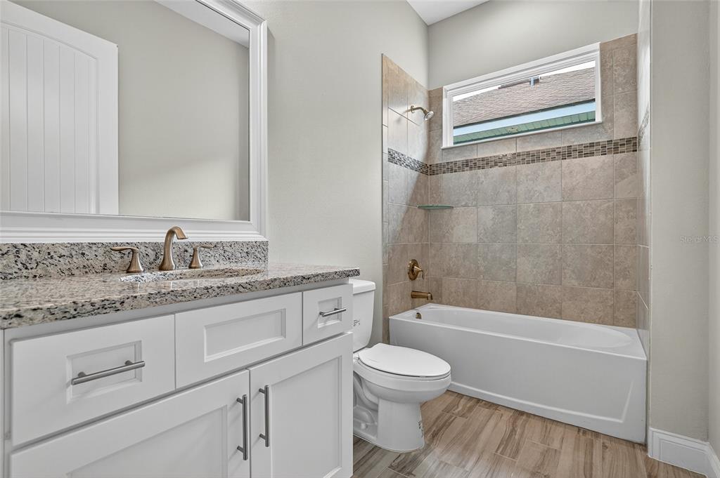 Split BedroomCeiling Fan(s) High Ceilings Living Room/Dining Room Combo Stone Counters Open Floorplan Window Treatments Primary Bedroom Main FloorExterior Features: