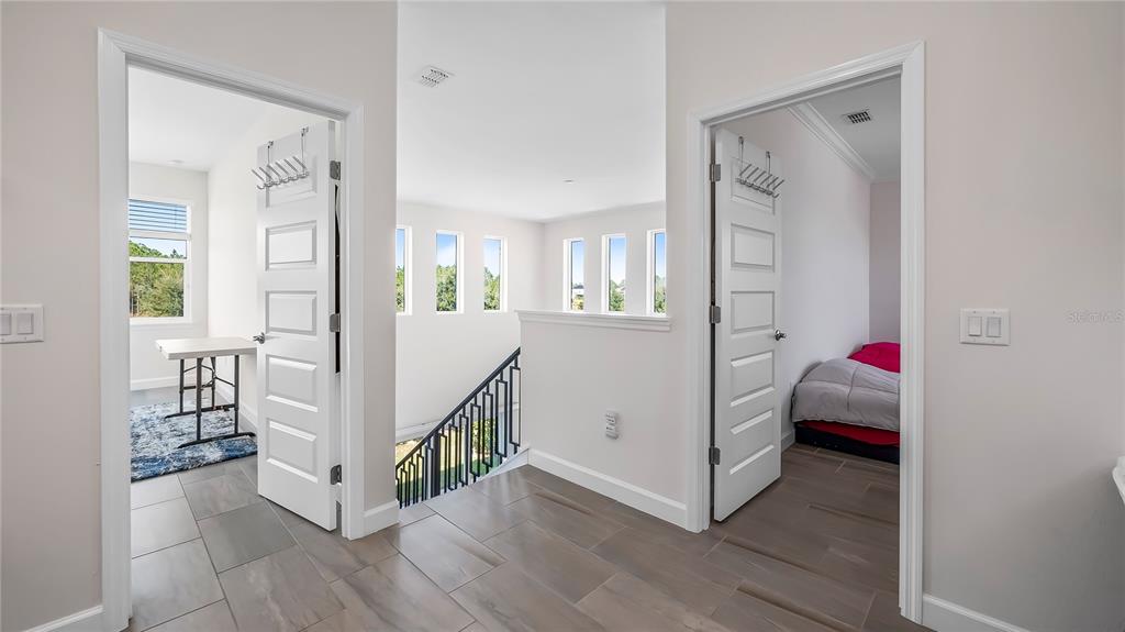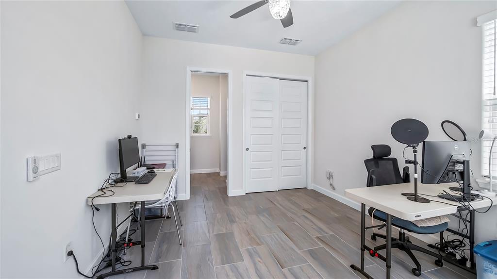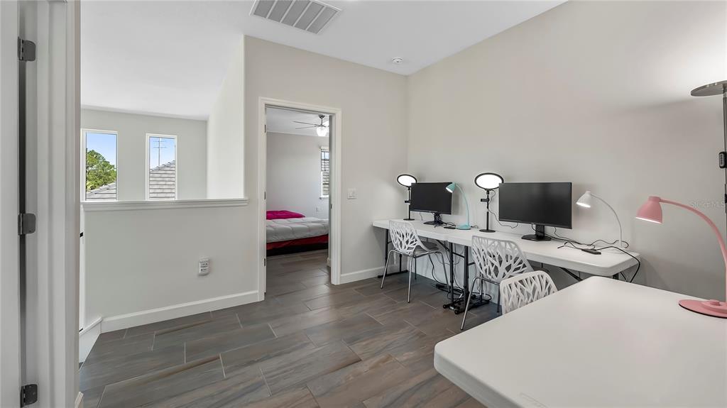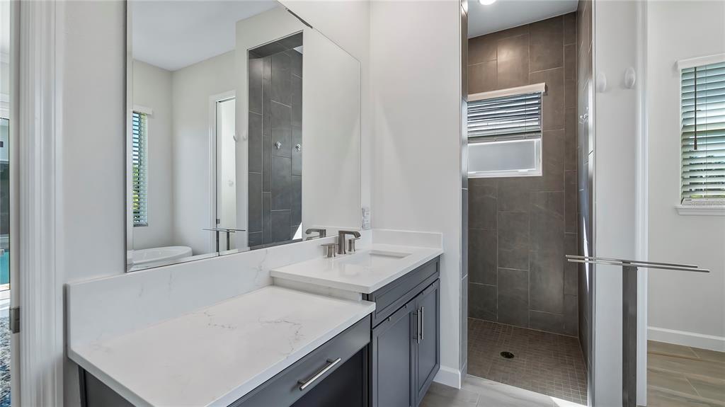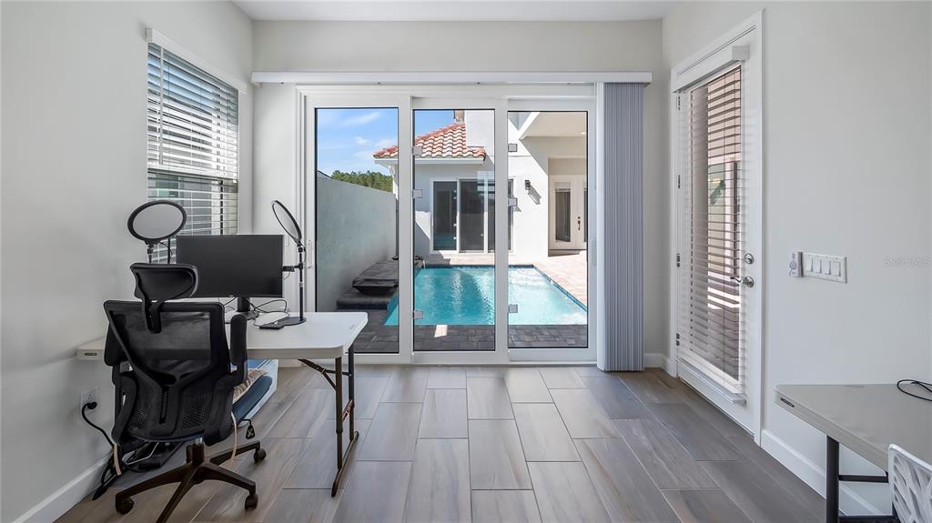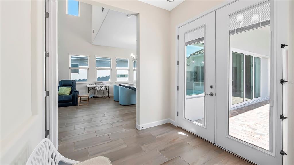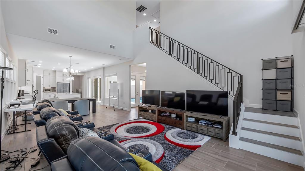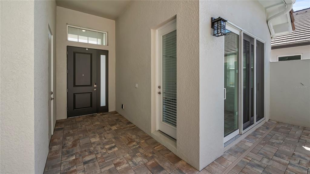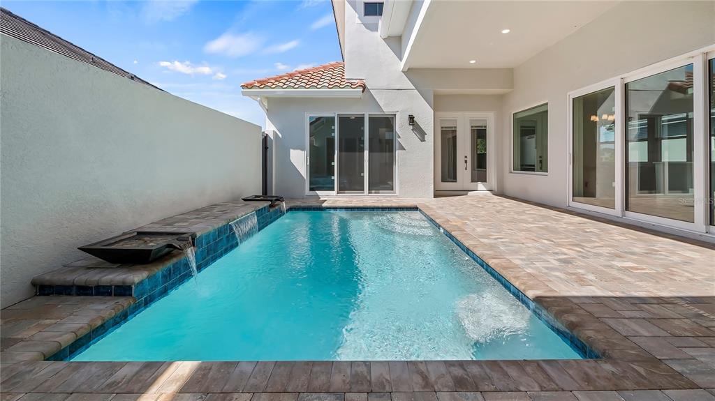 Welcome to 212 hampton loop, a four-bedroom, 3.5-bath pool home in the gated community of providence, davenport. this home, lived in for only a few months, features newly installed security cameras, outdoor lighting in the front and back, and wi-fi-enabled light switches. these upgrades enhance convenience, security, and energy efficiency. upon entry, you're welcomed into a spacious gathering room with vaulted ceilings that enhance the openness and natural light. this central area is ideal for family time or entertaining guests. the kitchen is equipped with stainless steel appliances, a large center island, and plenty of counter space. a walk-in pantry and open layout make it practical for both daily meals and hosting gatherings. custom cabinetry and modern fixtures add to its appeal. the owner's suite overlooks the private courtyard pool, offering direct access to a patio. the en-suite bath includes dual vanities, a soaking tub, and high-end finishes for a spa-like experience. additional highlights include a two-car garage with extra storage, a large great room, and a dining area with high ceilings and natural light. the private courtyard pool is surrounded by landscaping, providing a relaxing retreat. the backyard, with no rear neighbors, offers added privacy. residents enjoy access to community amenities, including a pool, fitness center, and clubhouse. the 24/7 guarded and gated entrance ensures security and peace of mind.212 HAMPTON, DAVENPORT, FL 33837