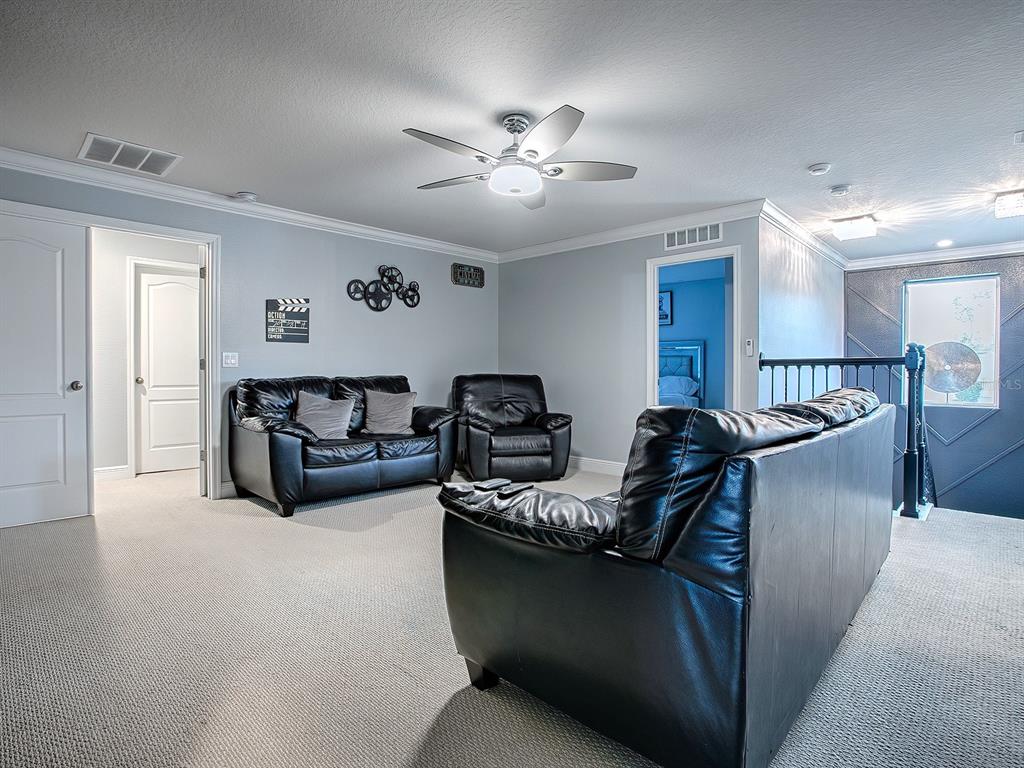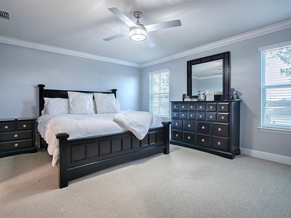 Split Bedroom Walk-In Closet(s)Ceiling Fan(s) Eating Space In Kitchen High Ceilings Stone Counters Thermostat Open Floorplan Window Treatments Solid Wood CabinetsCrown Molding Kitchen/Family Room Combo PrimaryBedroom Upstairs Tray Ceiling(s)Attic FanExterior Features: