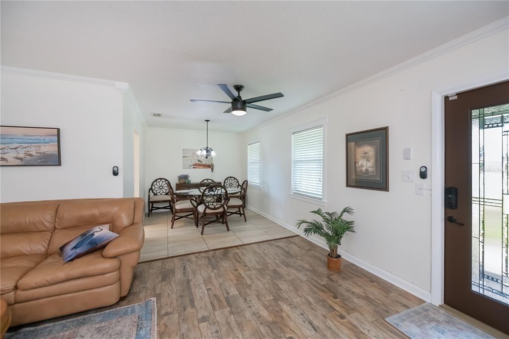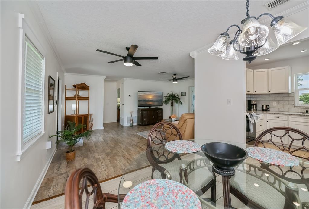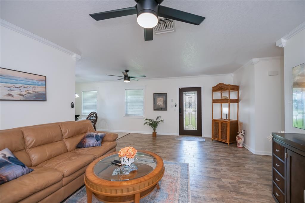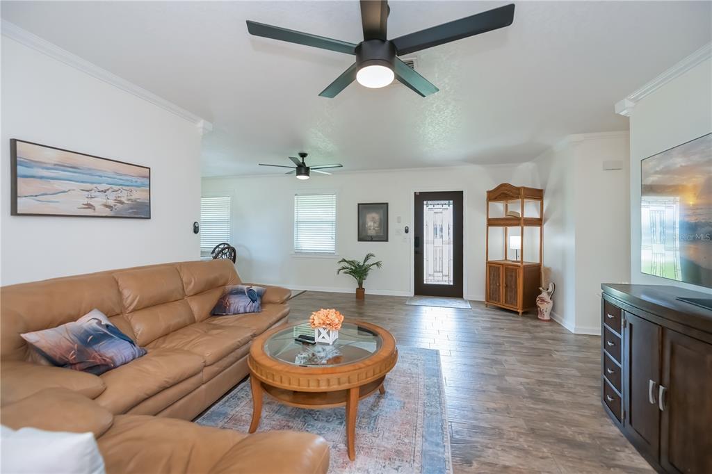 Walk-In Closet(s)Ceiling Fan(s) Living Room/Dining Room Combo Stone Counters Window Treatments Solid Wood CabinetsCrown Molding Primary Bedroom Main FloorExterior Features: