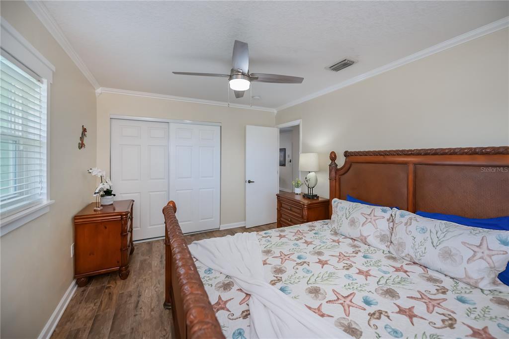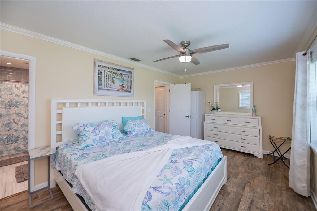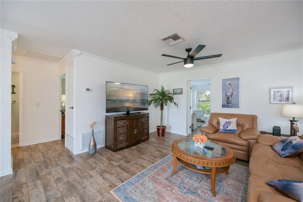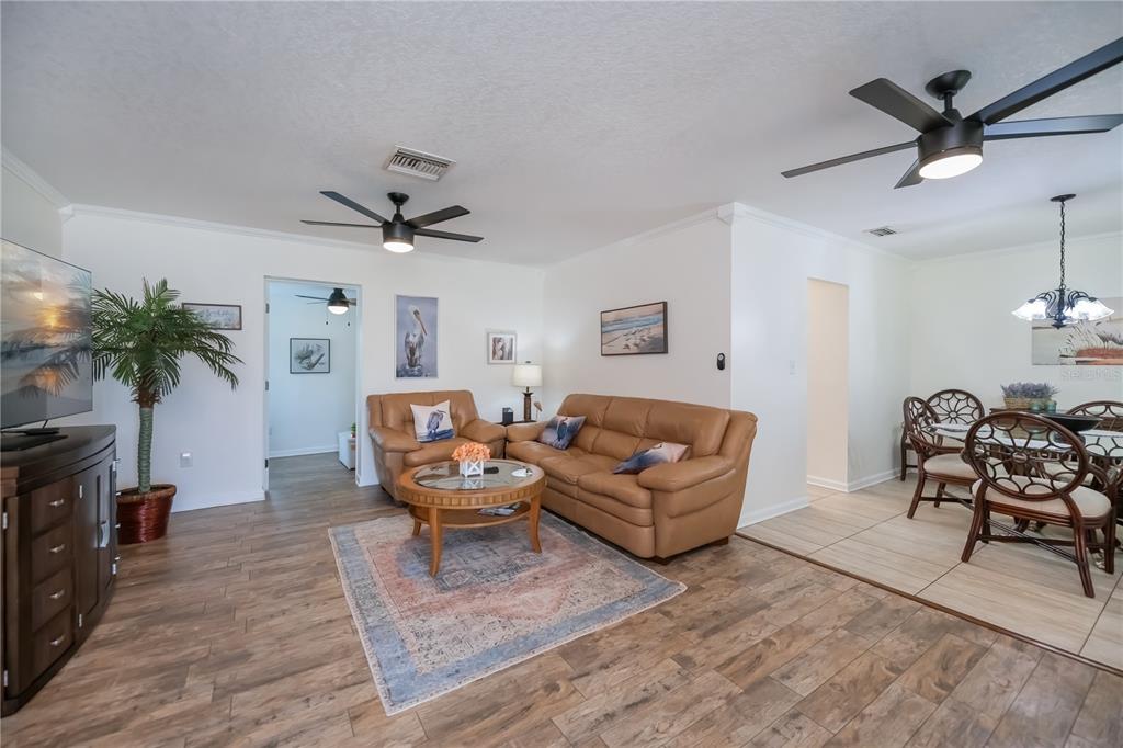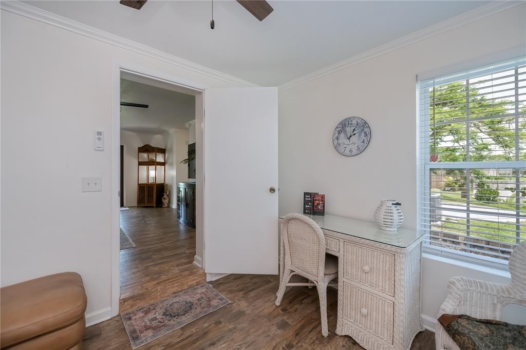 Walk-In Closet(s)Ceiling Fan(s) Living Room/Dining Room Combo Stone Counters Window Treatments Solid Wood CabinetsCrown Molding Primary Bedroom Main FloorExterior Features: