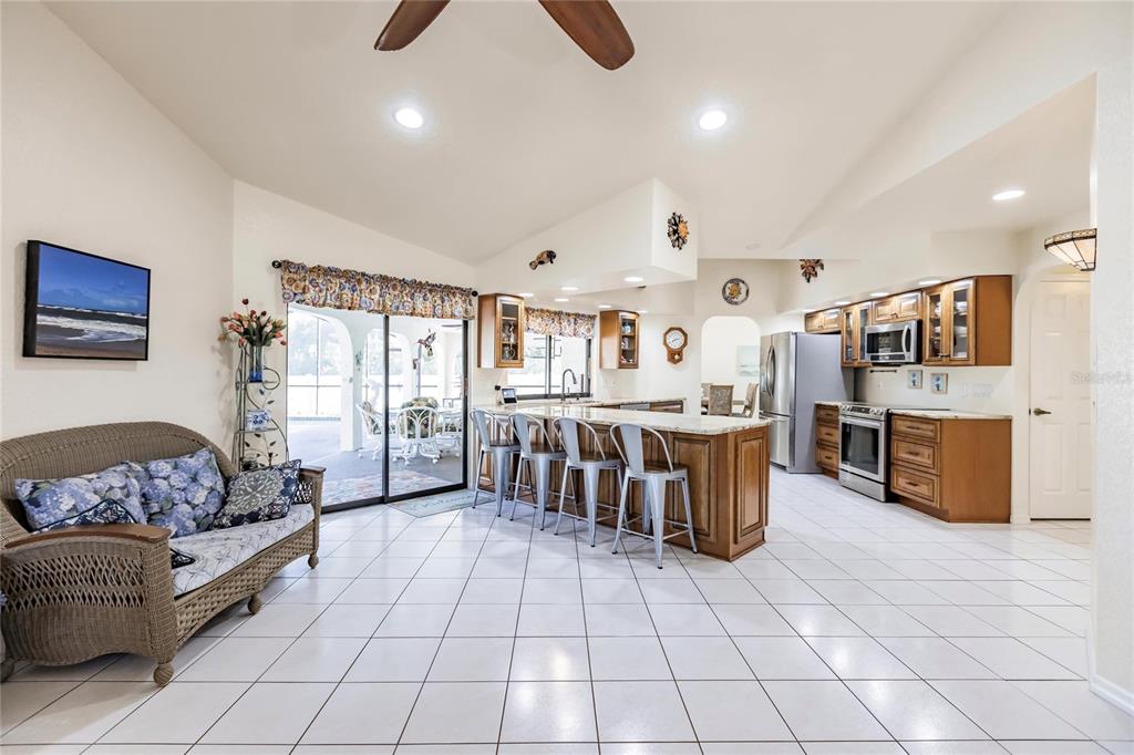 Split Bedroom Walk-In Closet(s) Vaulted Ceiling(s)Ceiling Fan(s) Living Room/Dining Room Combo Stone Counters Open Floorplan Solid Wood Cabinets Skylight(s) Kitchen/Family Room Combo Dry BarExterior Features: